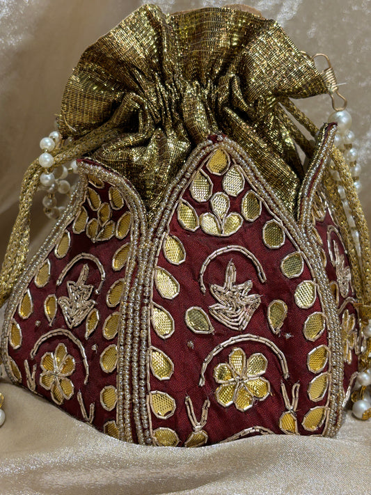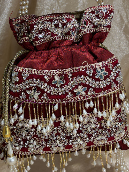 maroon potli purse