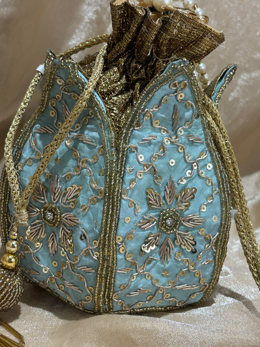 light blue potli purse