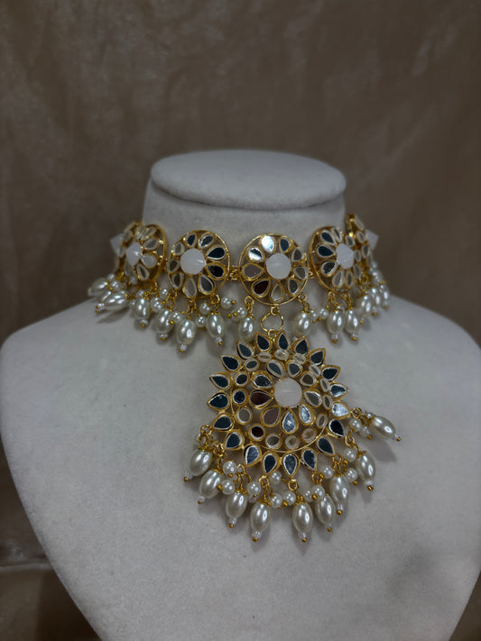 White mirror work choker set