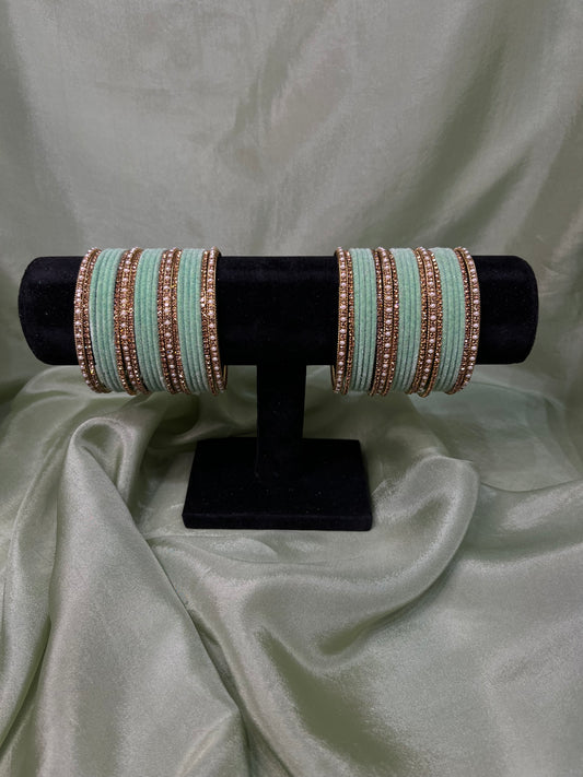 Mint green velvet bangle set with pearl kare