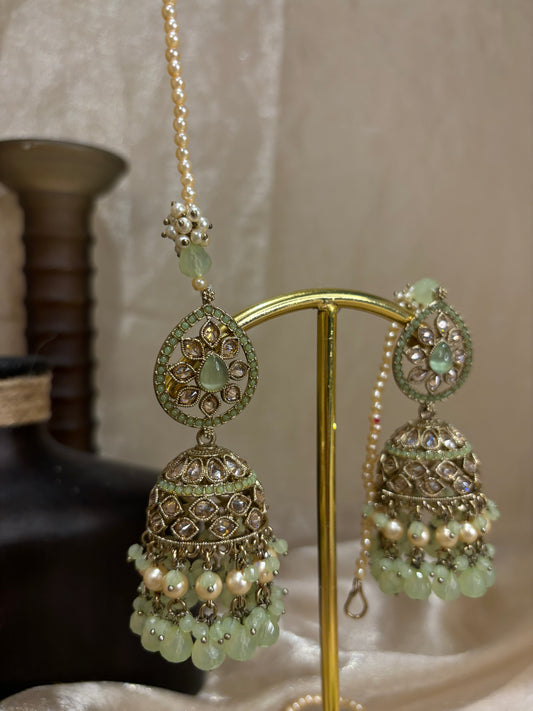Mint green earring/tikka set
