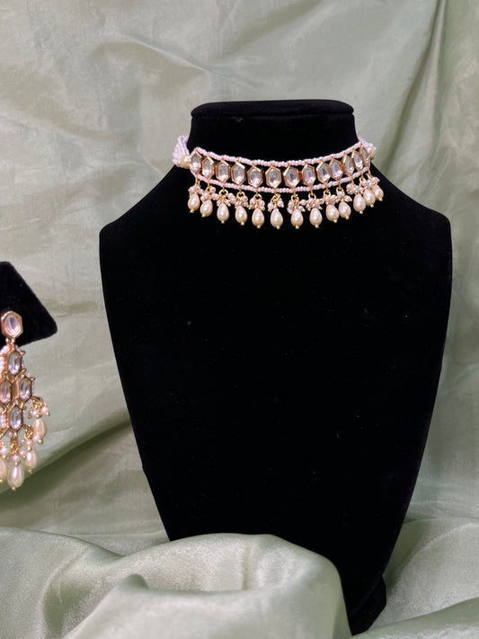 Pearl detail tiyani kundan choker set