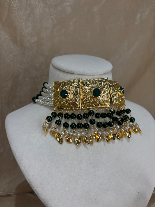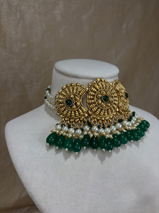 Emerald green antique gold choker set
