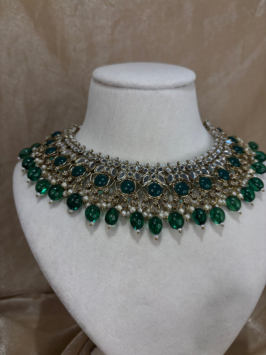 Emerald green jadau choker set