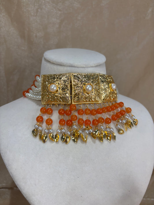 Orange jadau choker set