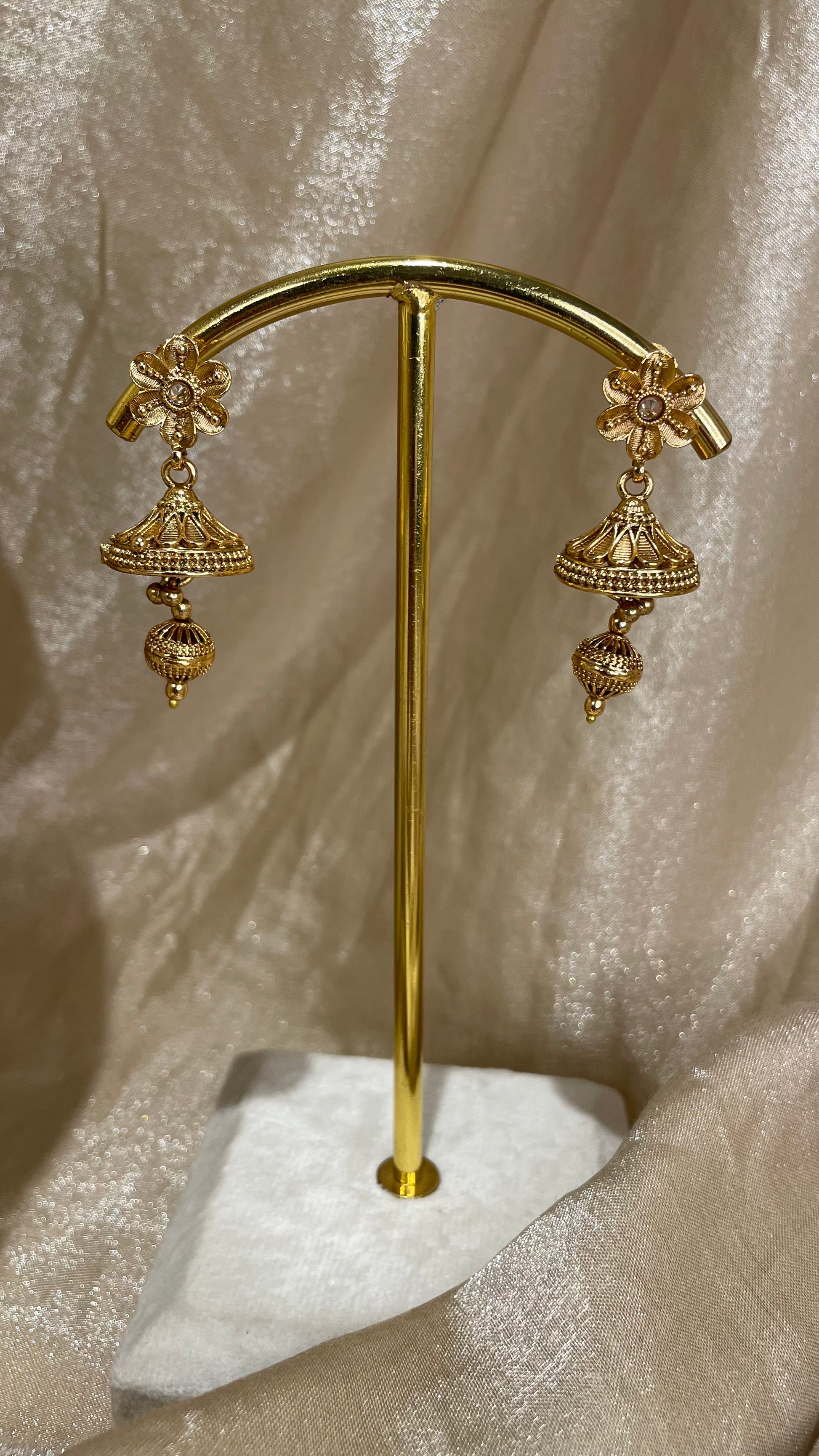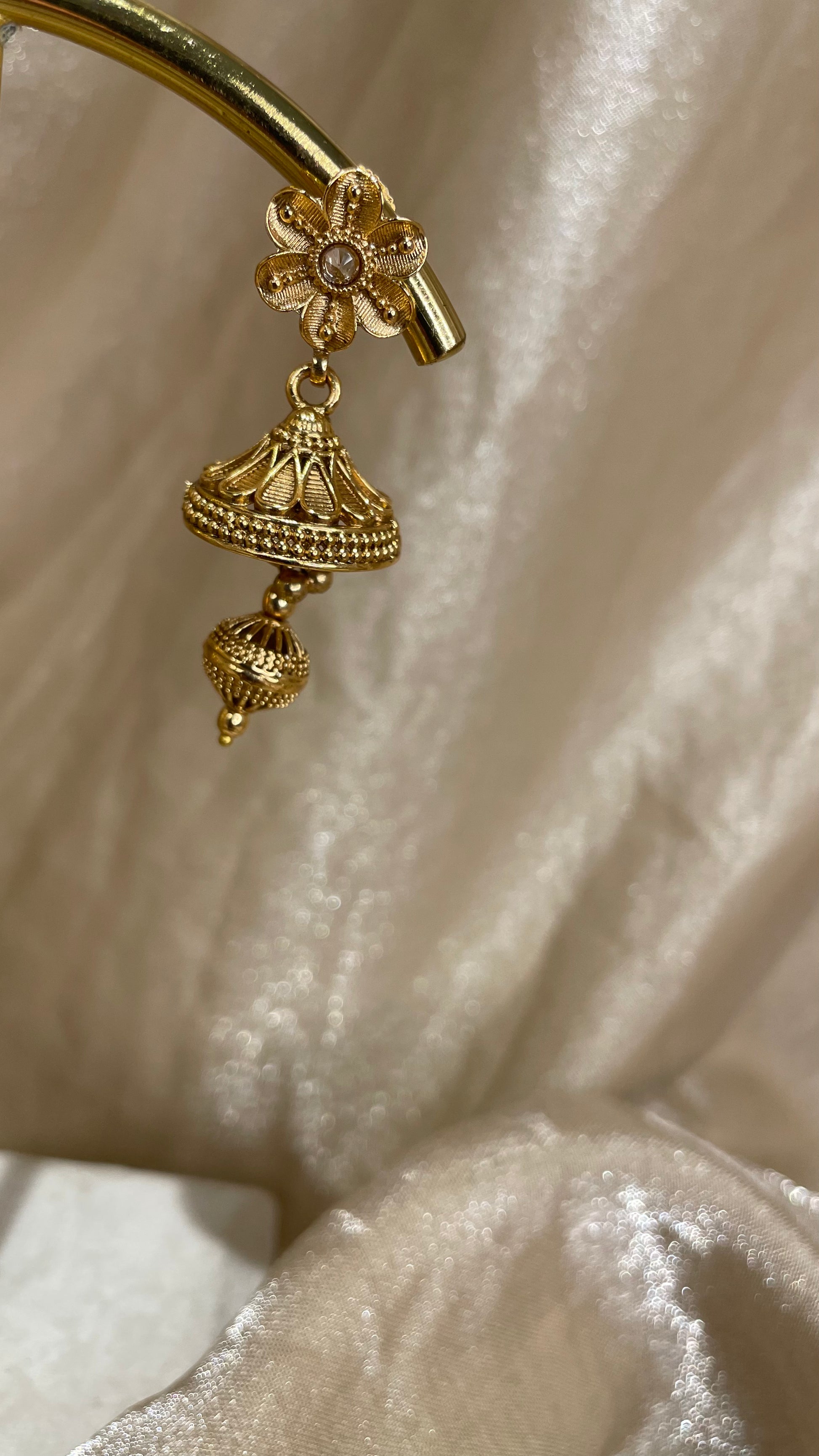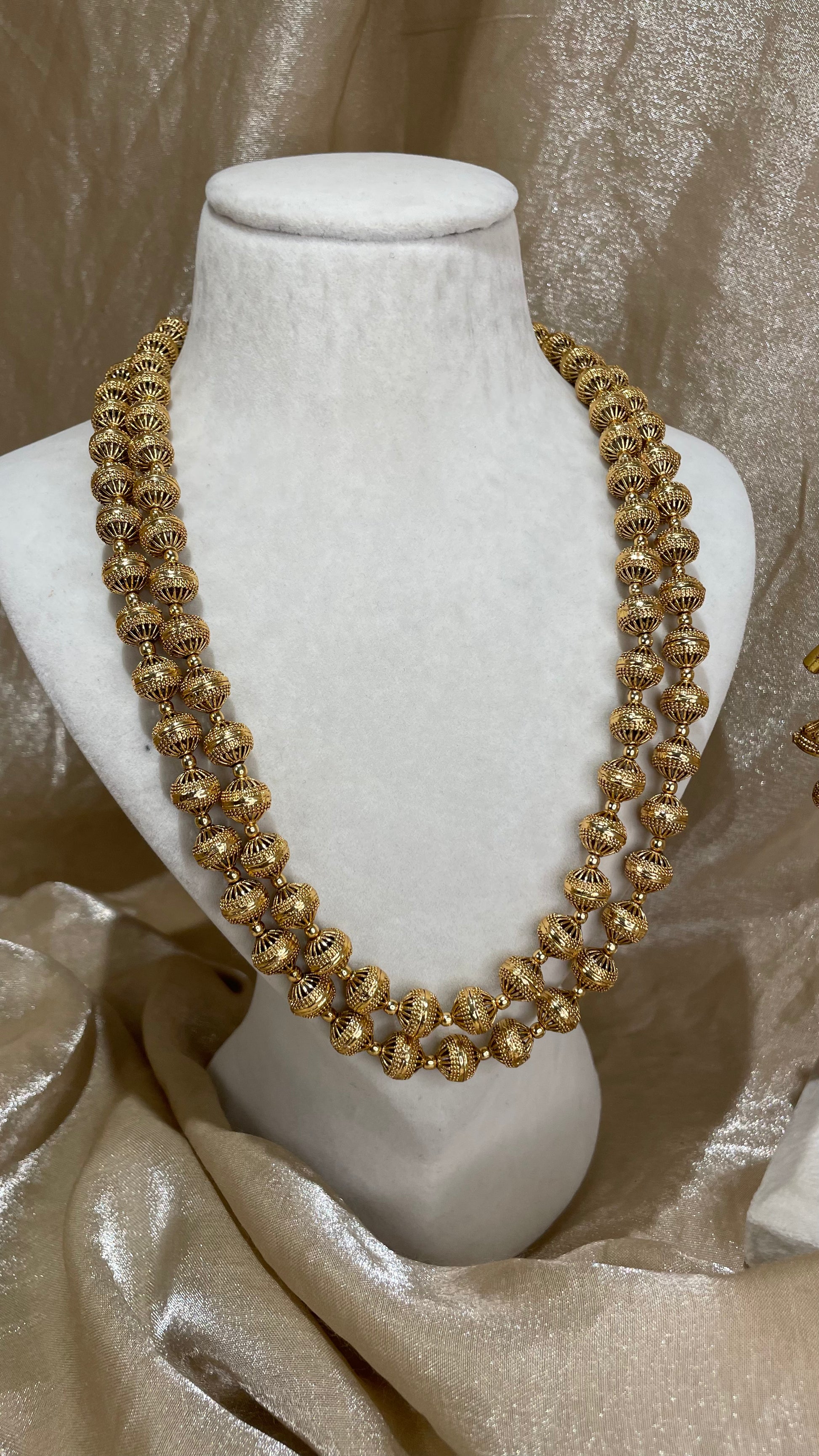 2 layer antique gold matar mala necklace set; comes with jhumki earrings