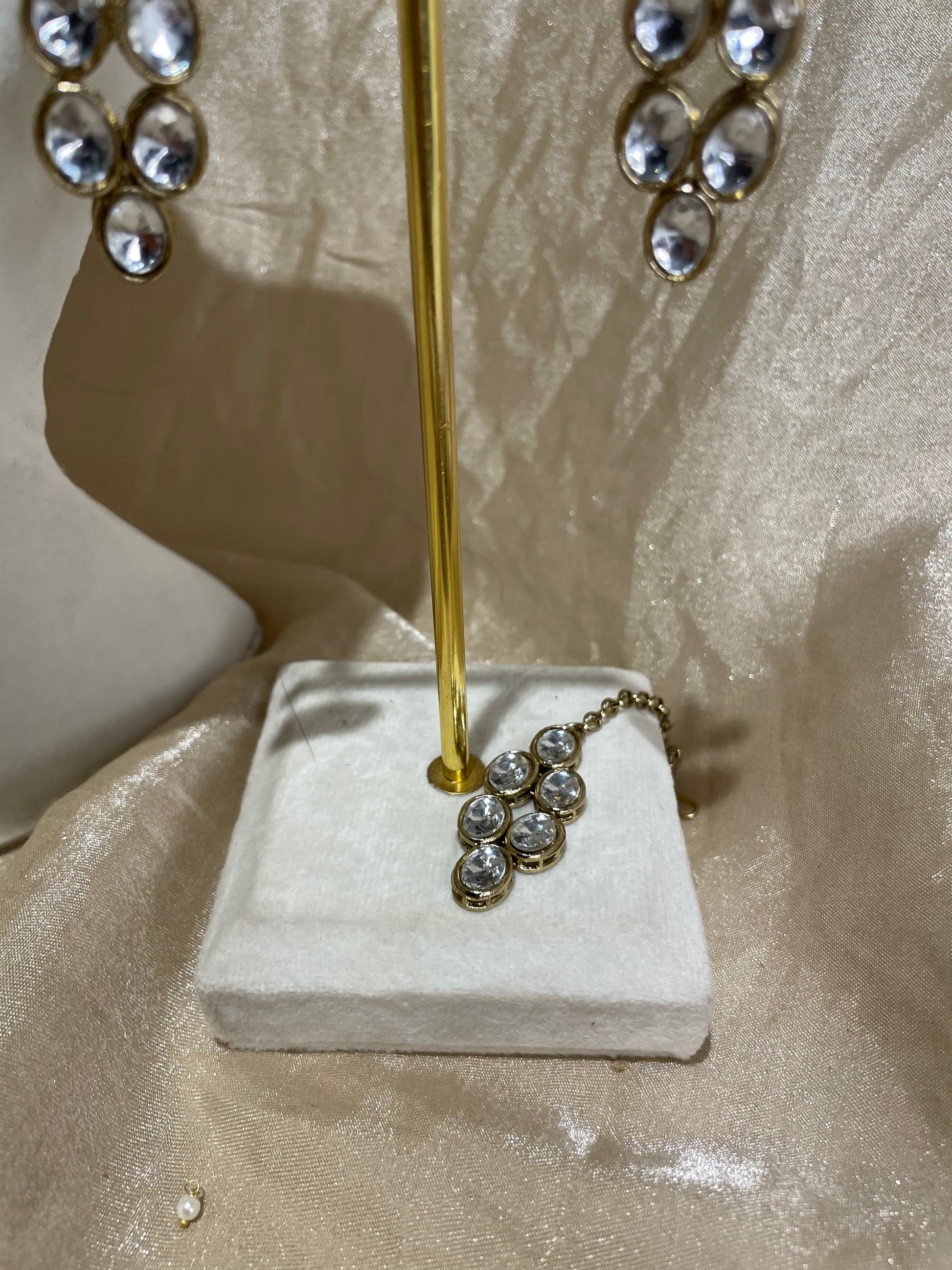 gold 2 layered kundan necklace set; comes with earrings and tikka