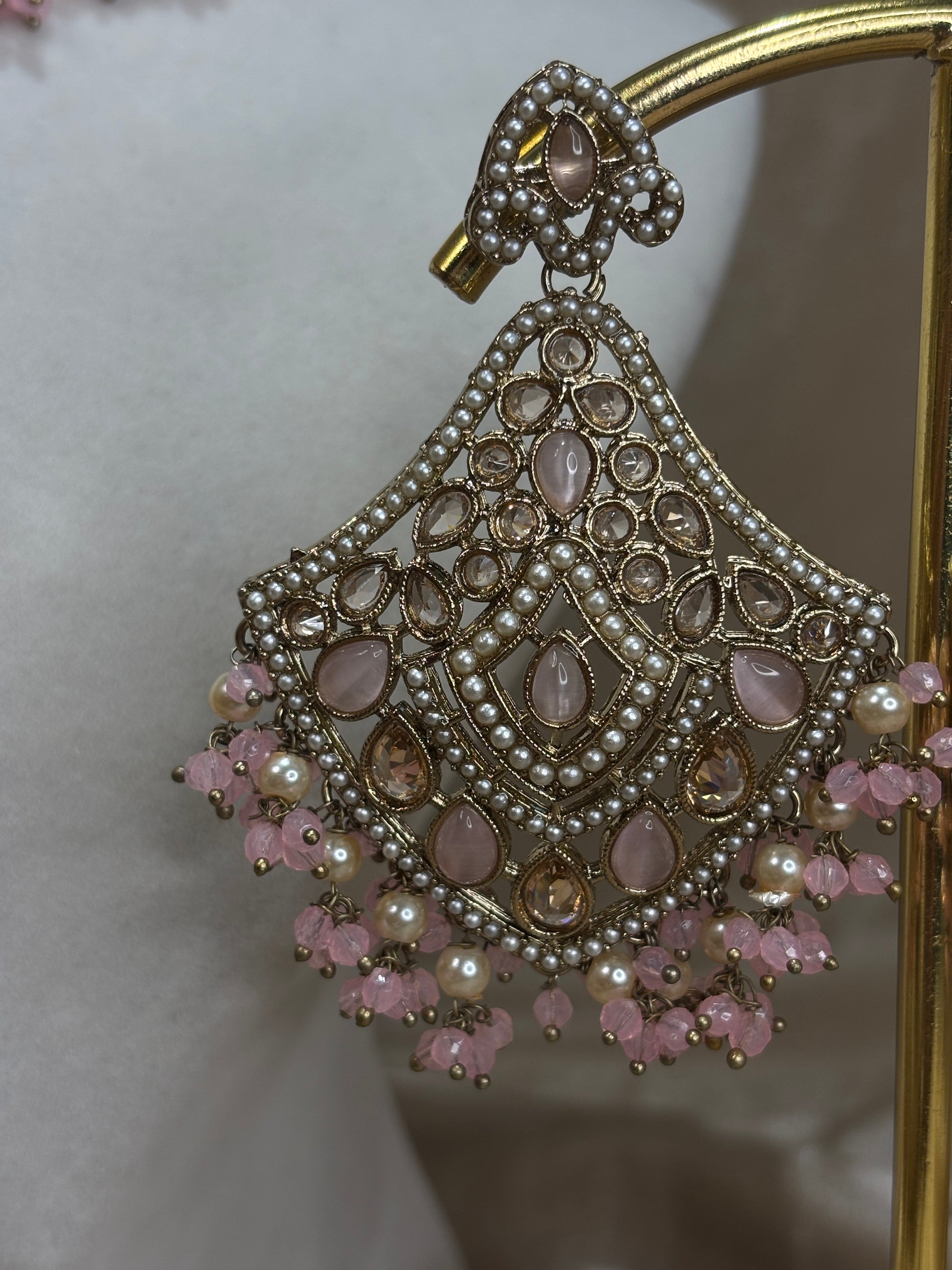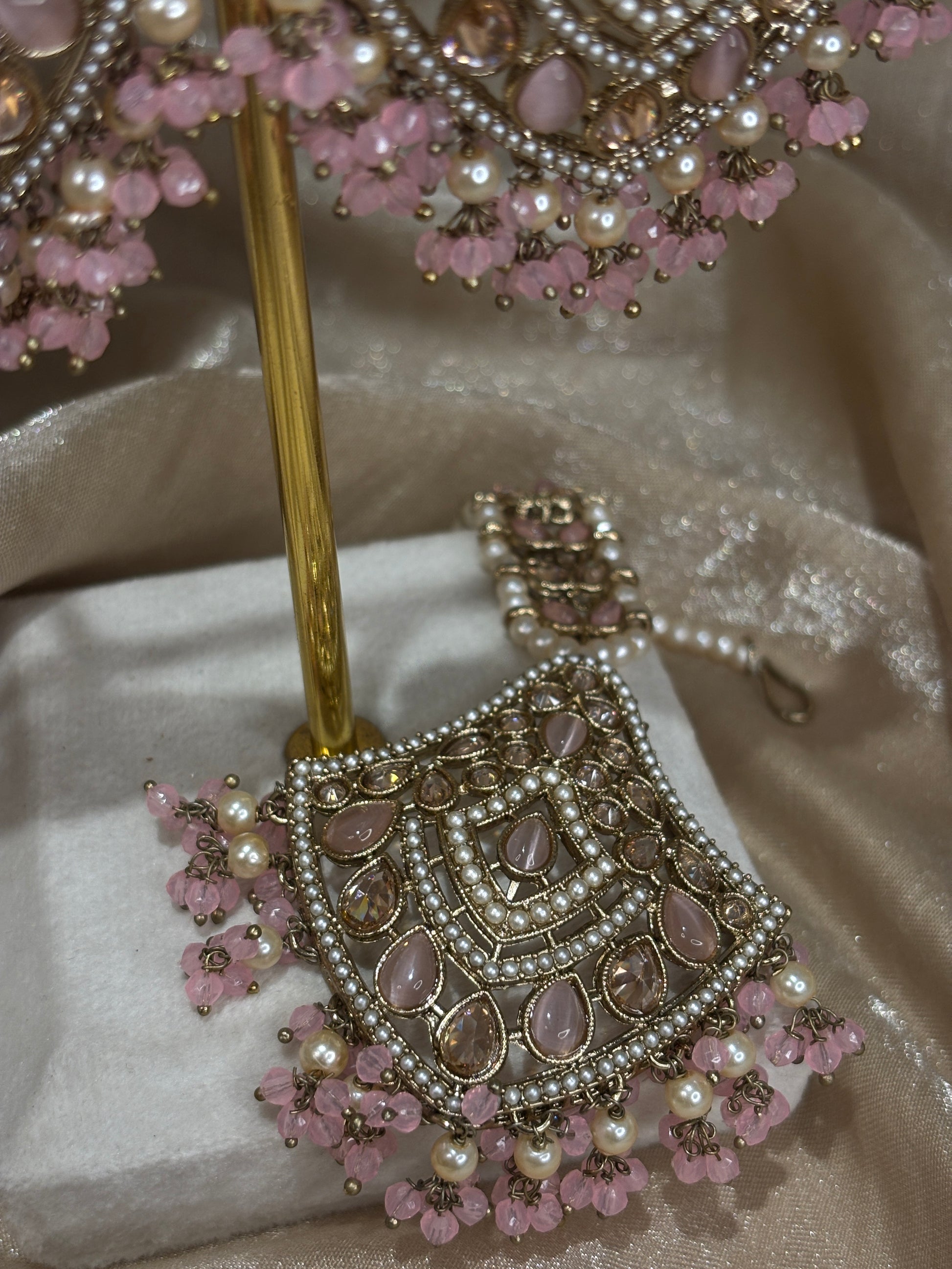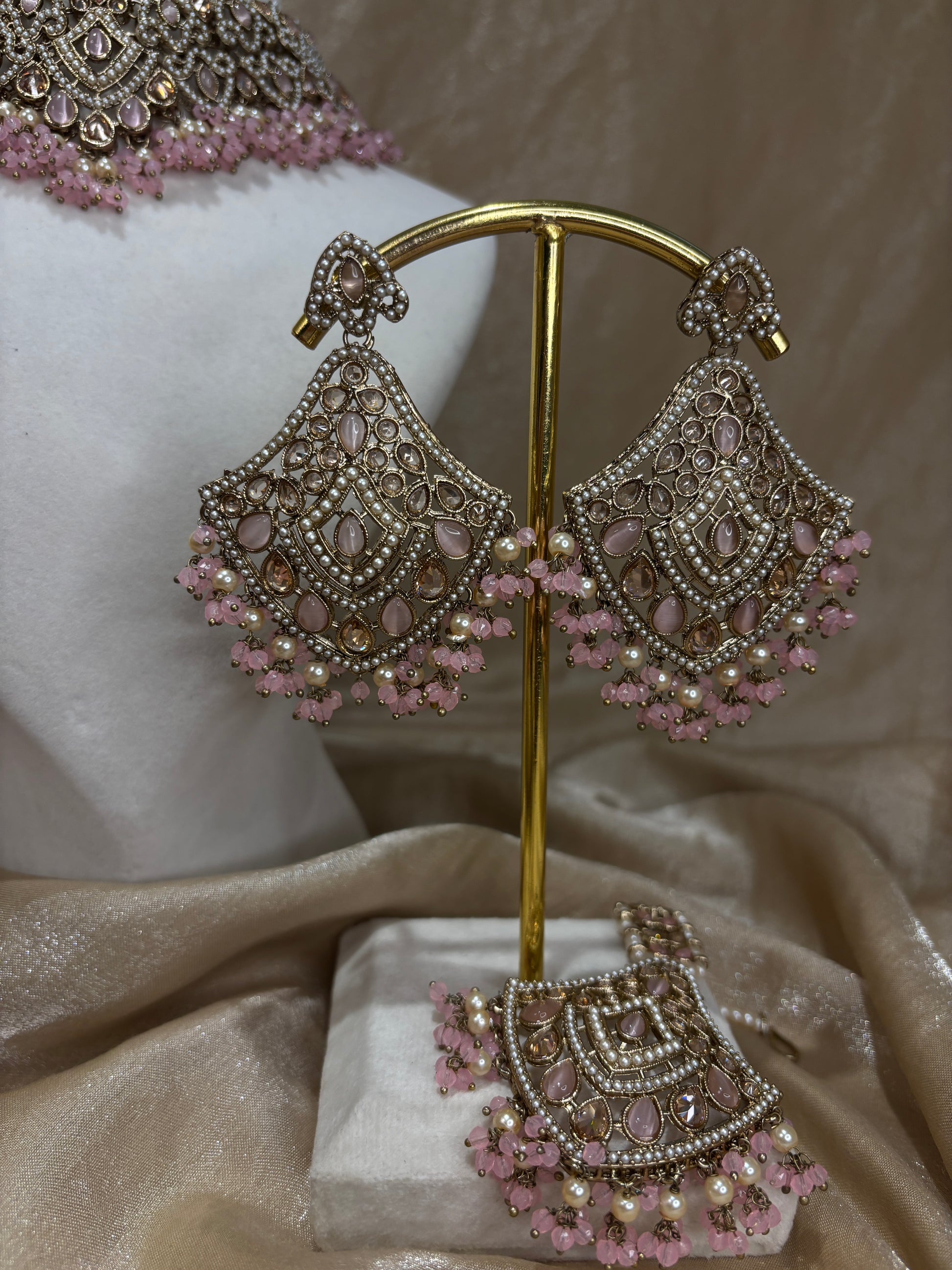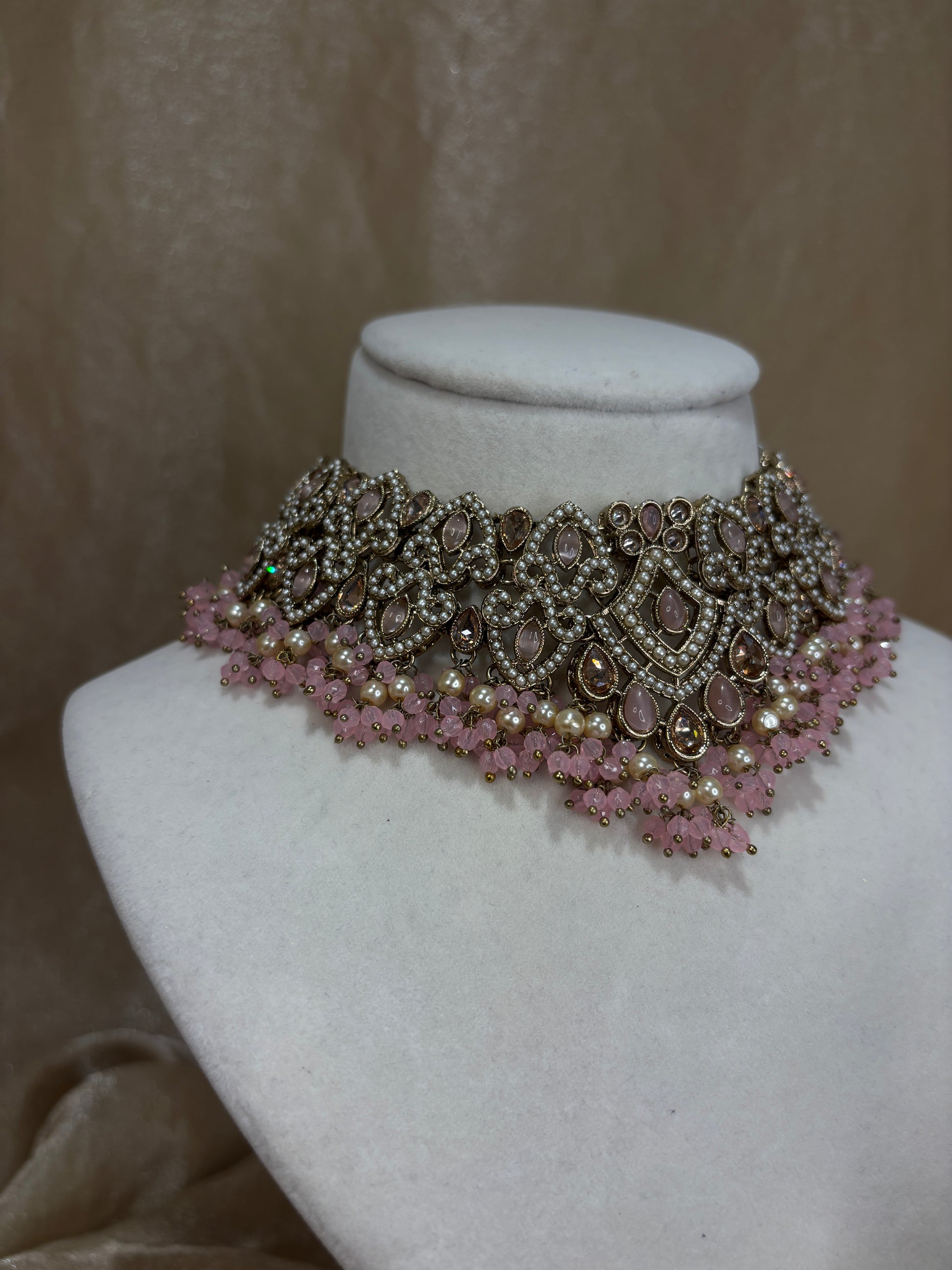 Heavy baby pink choker set with small pearl details; can also be worn as a necklace!