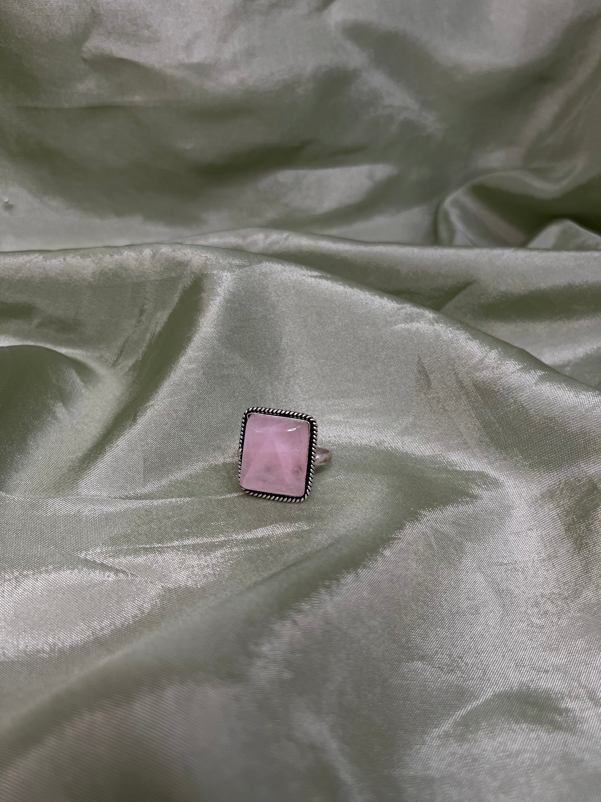 Baby pink stone adjustable oxidized ring.