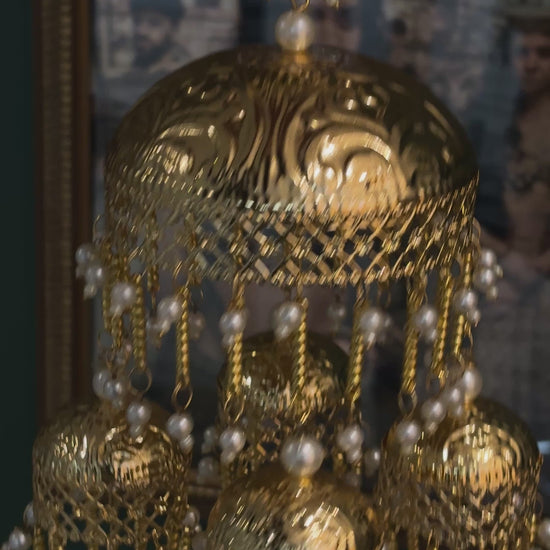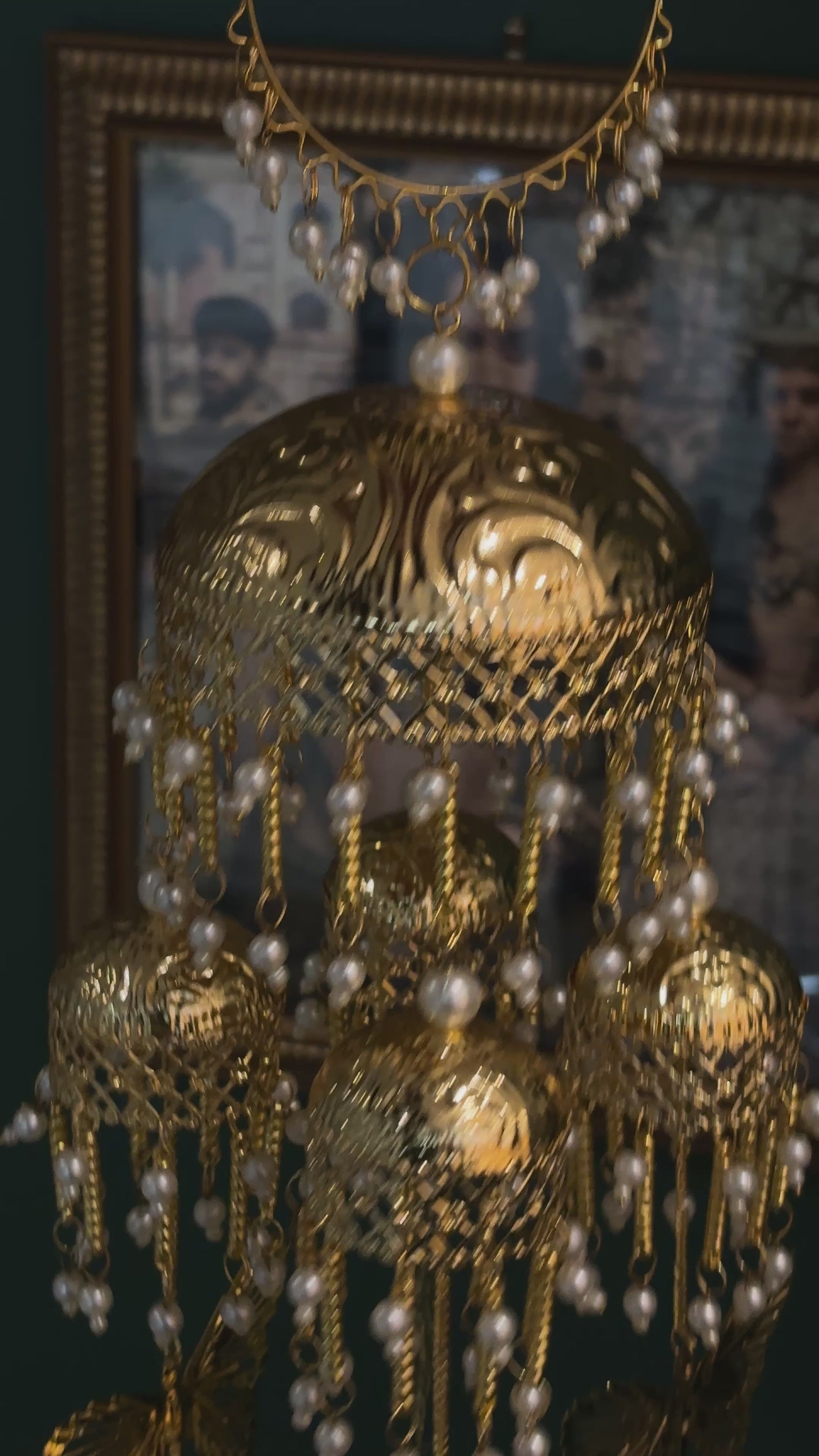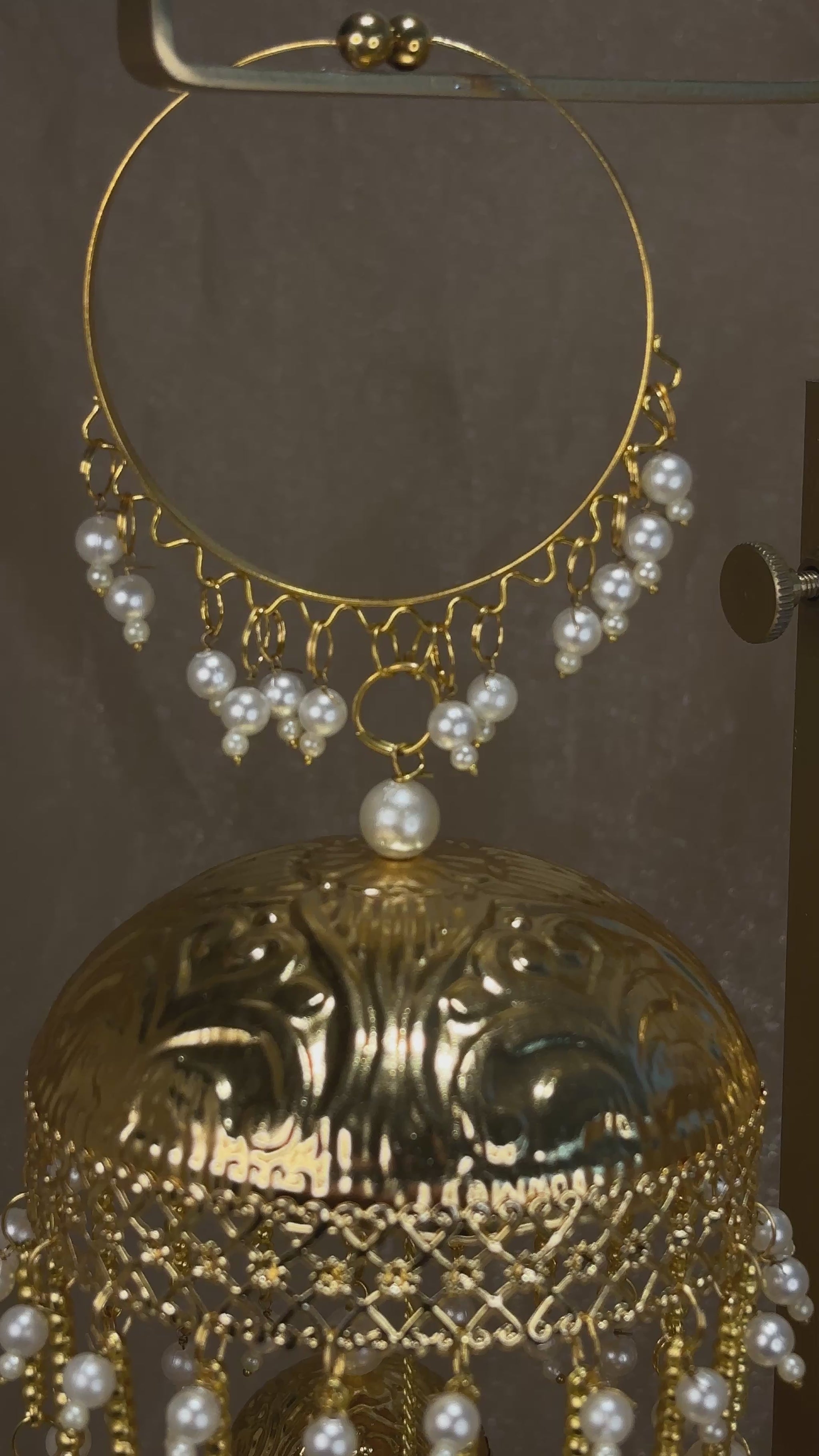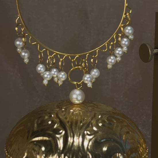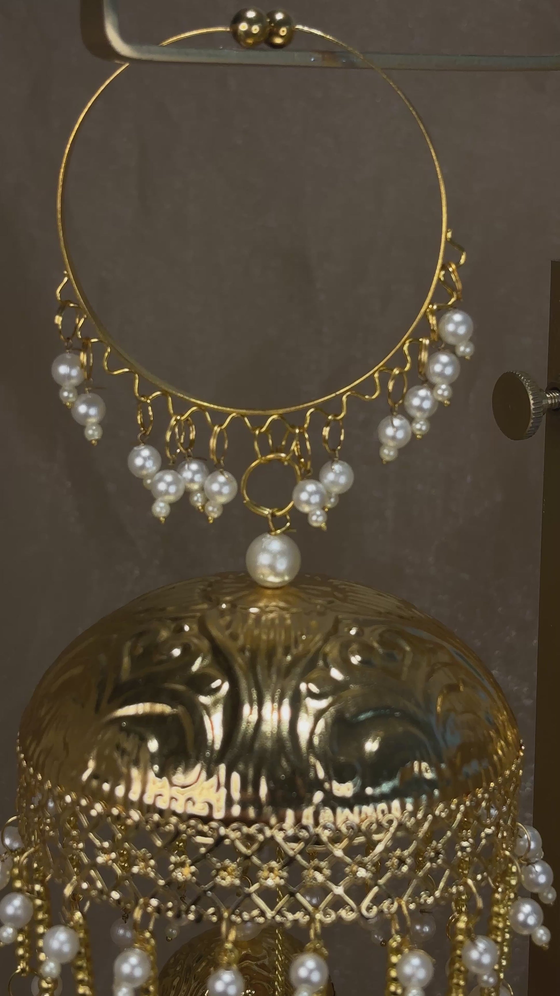 Large butterfly detail pipal Patti kalire with pearl details; comes with adjustable bangle to attach to wrist. About 14 inches long