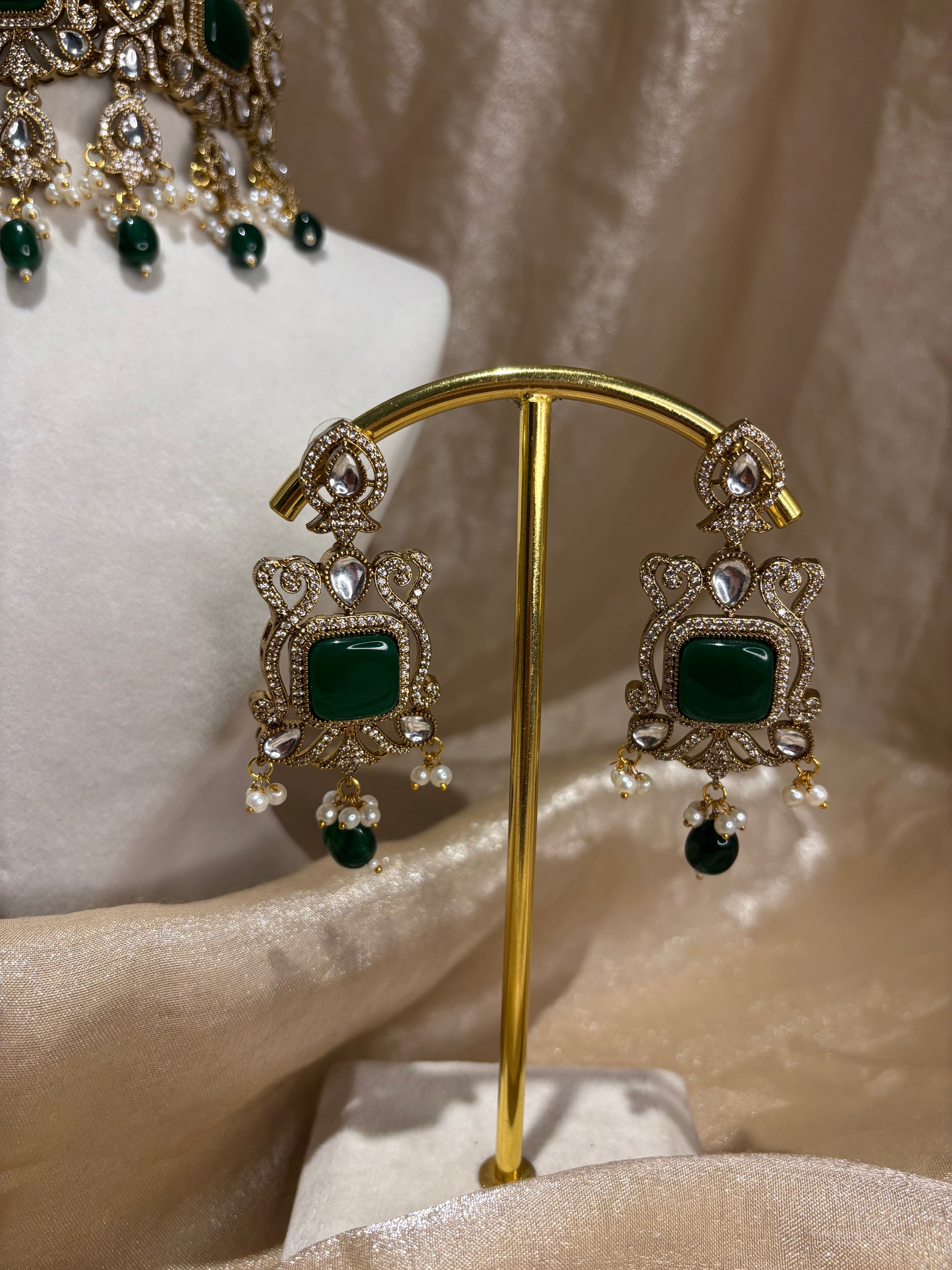 Tiyani kundan and moissanite choker with emerald green Mona Lisa stones
