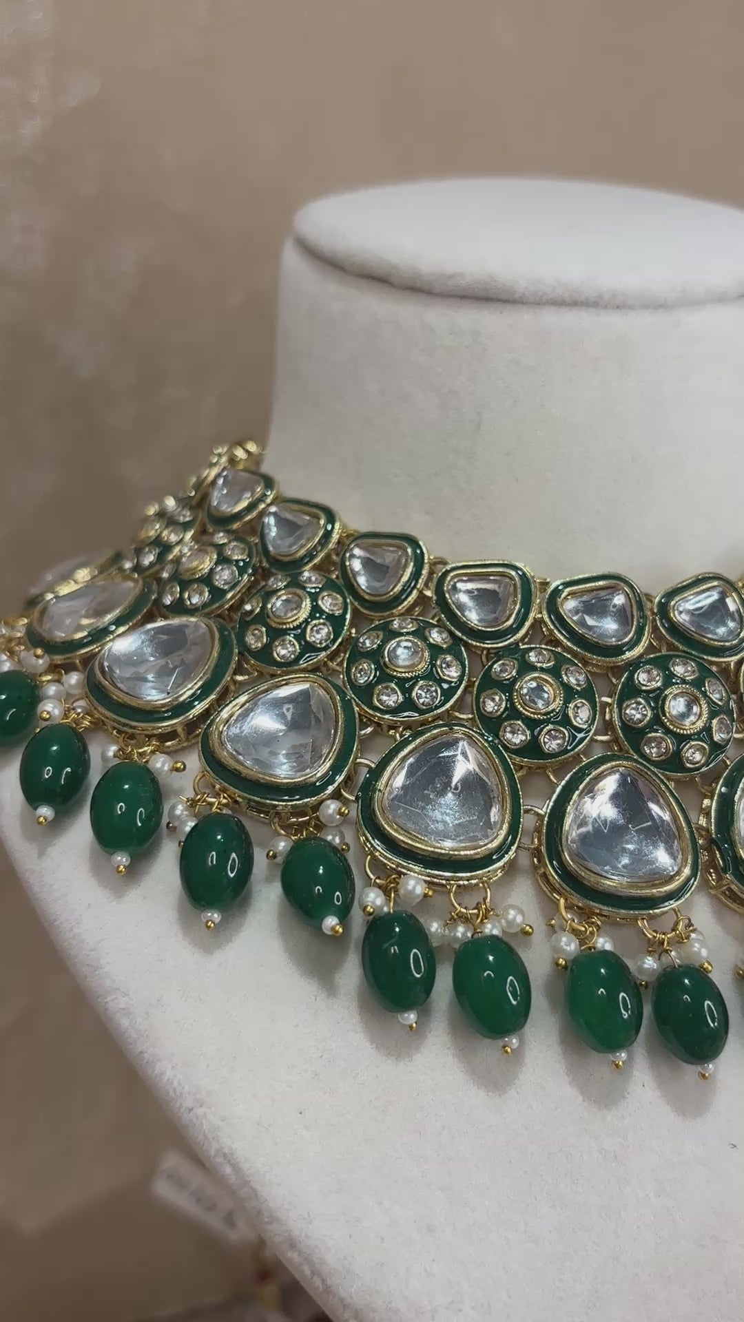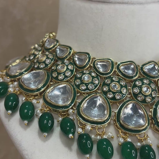 Emerald green kundan necklace set