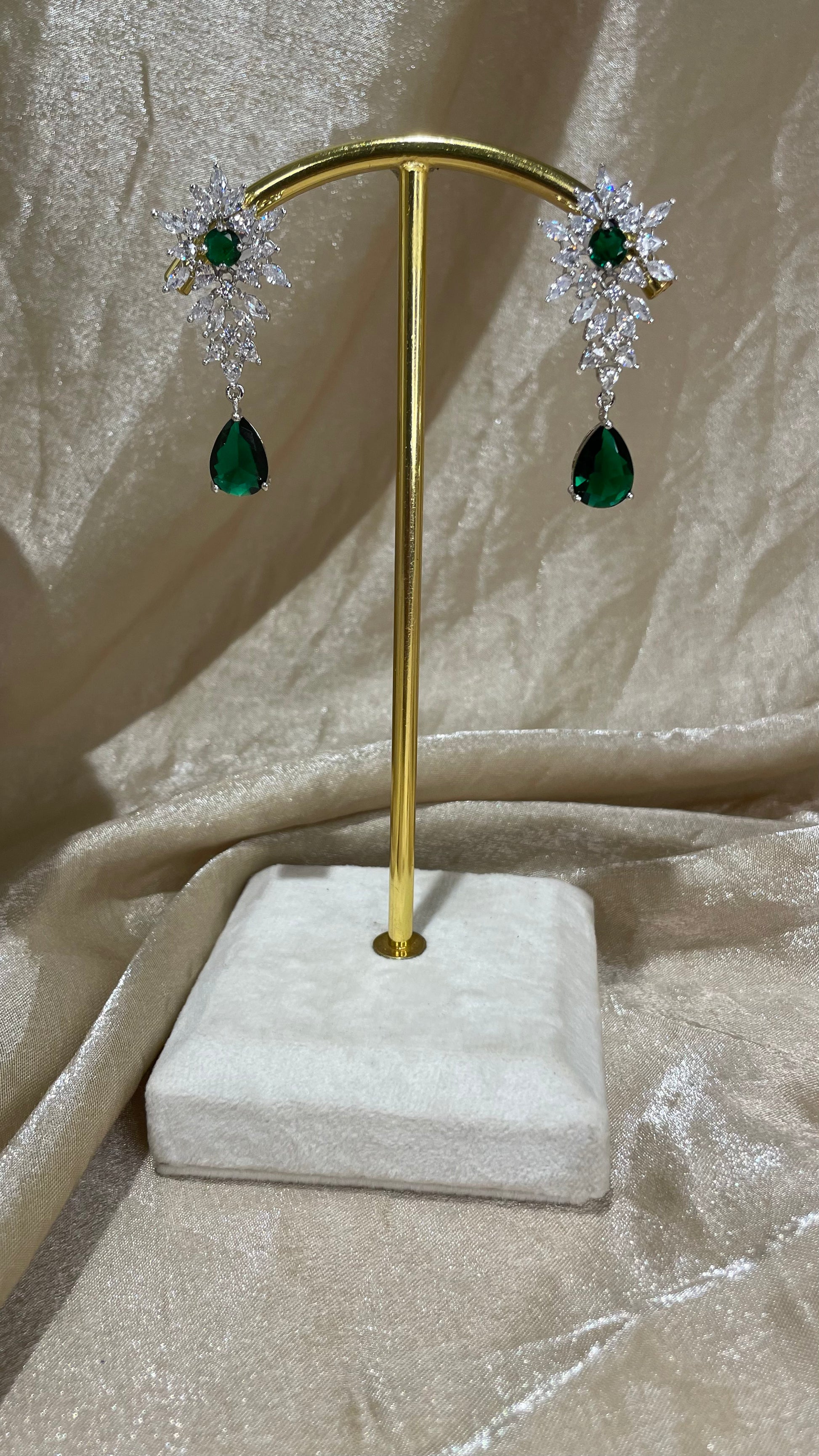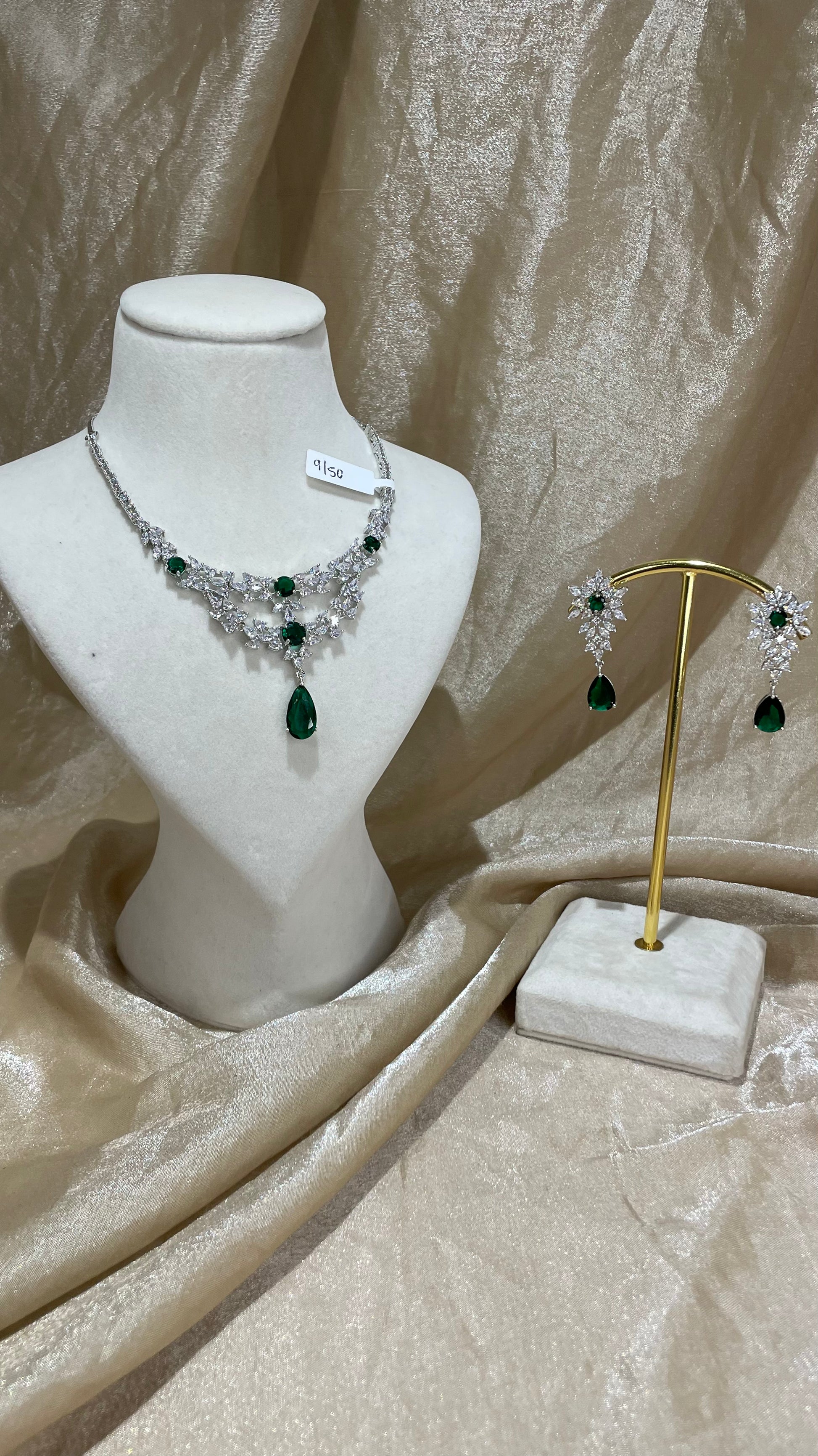 emerald green american diamond necklace set; comes with earrings