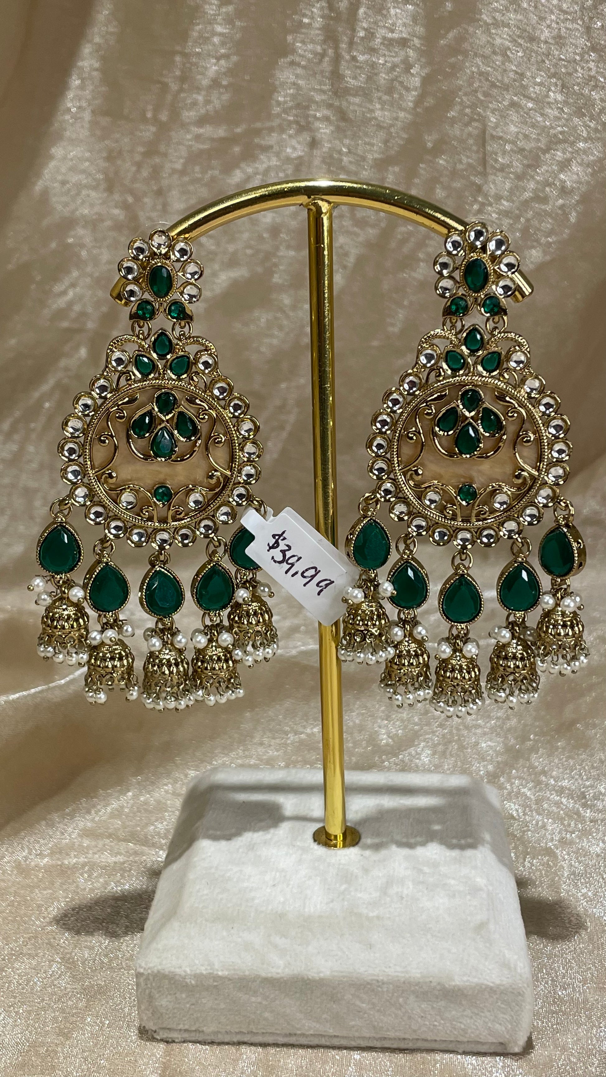 emerald green statement earrings with small jhumki details