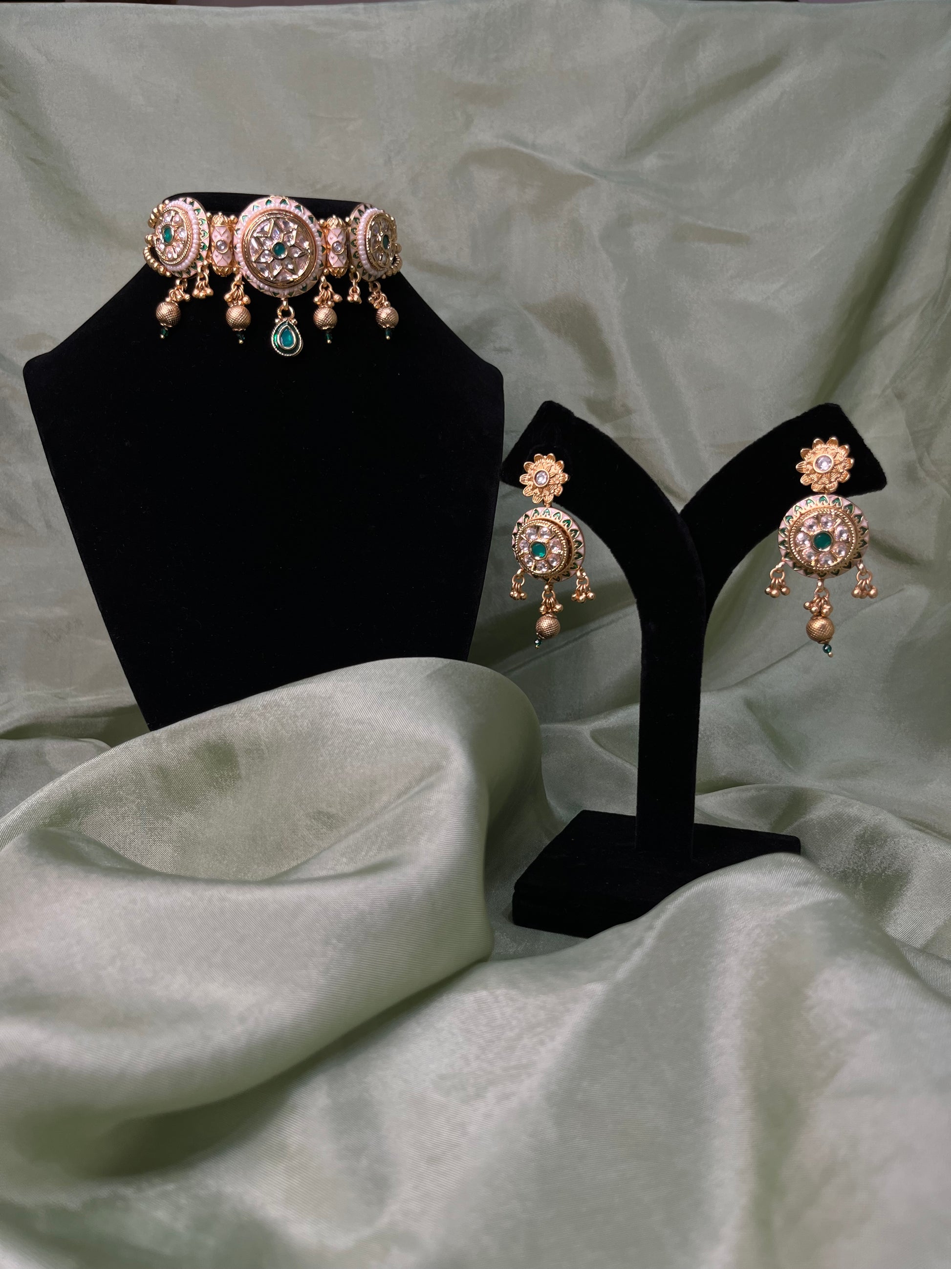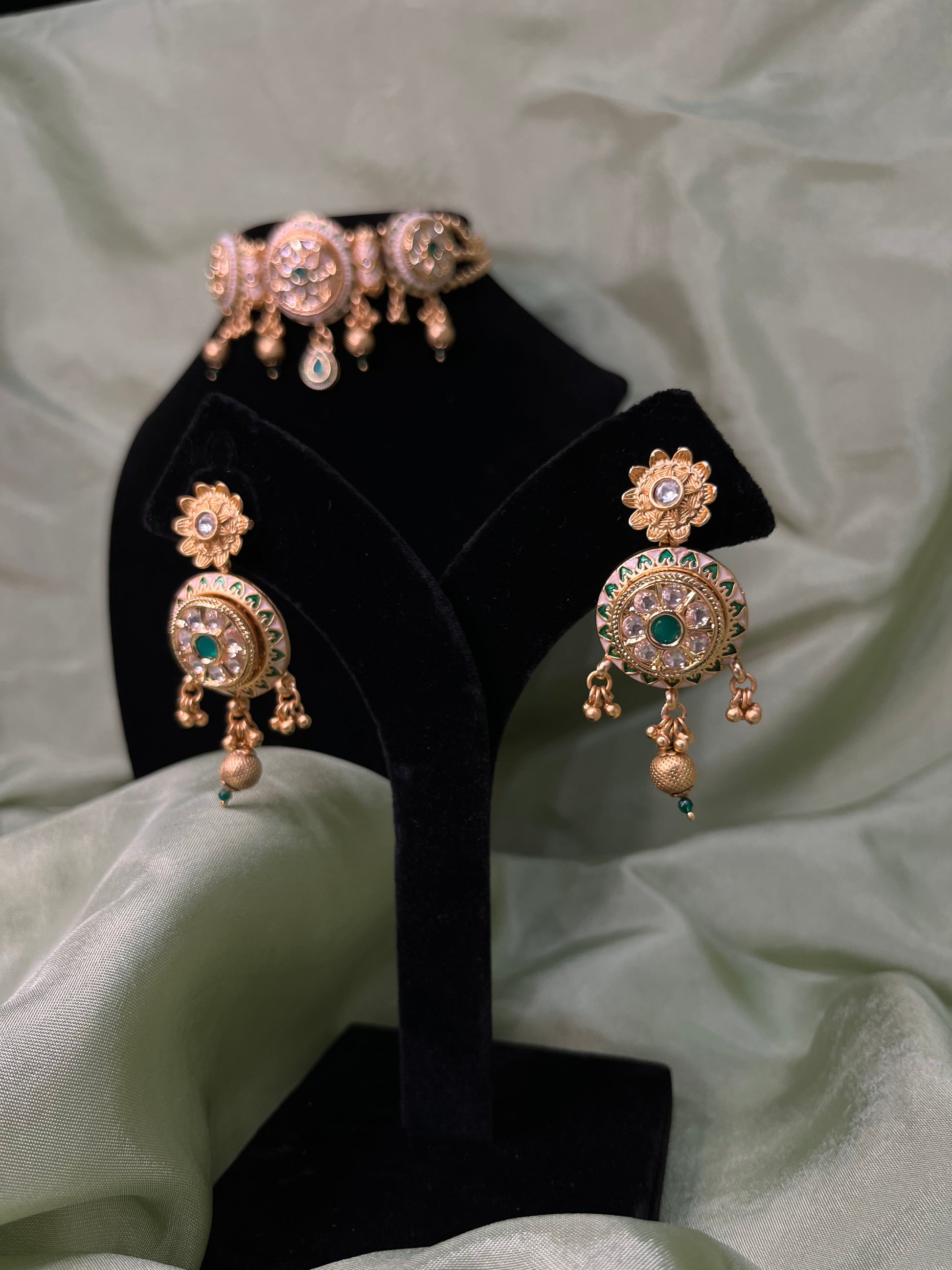 Emerald green Tiyani kundan set