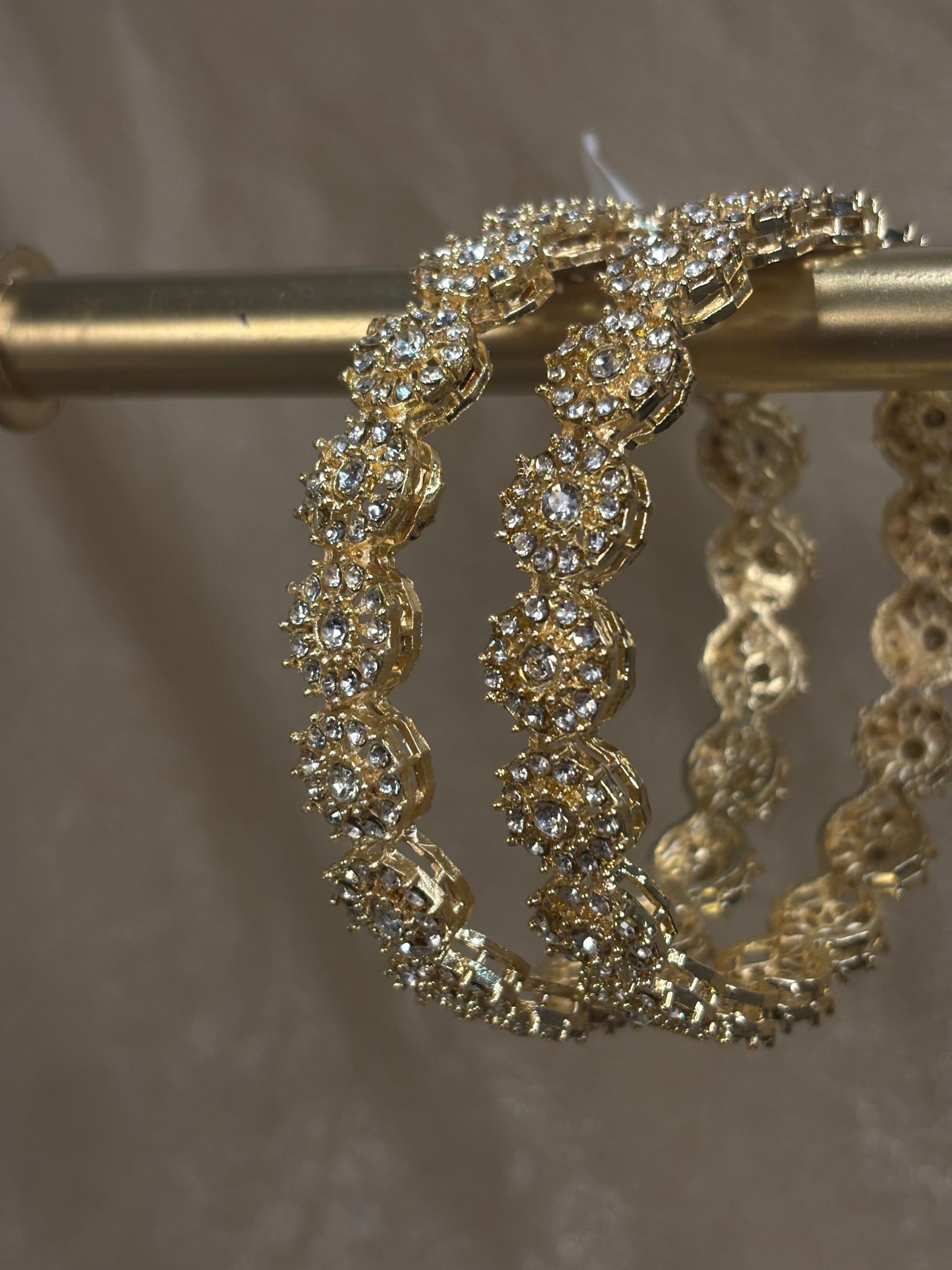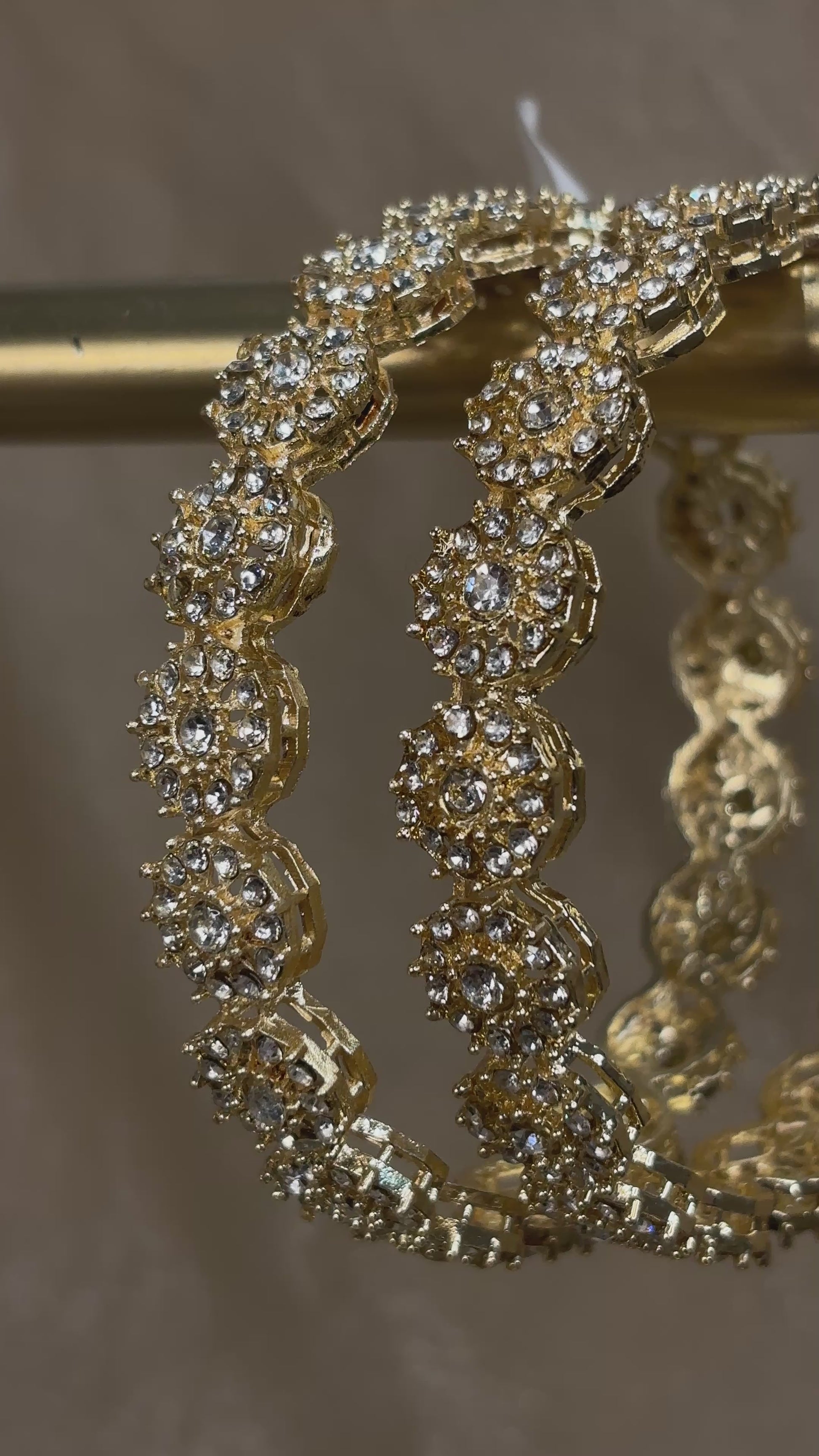 Stunning gold American diamond kare with jewel details; comes in a set of 2