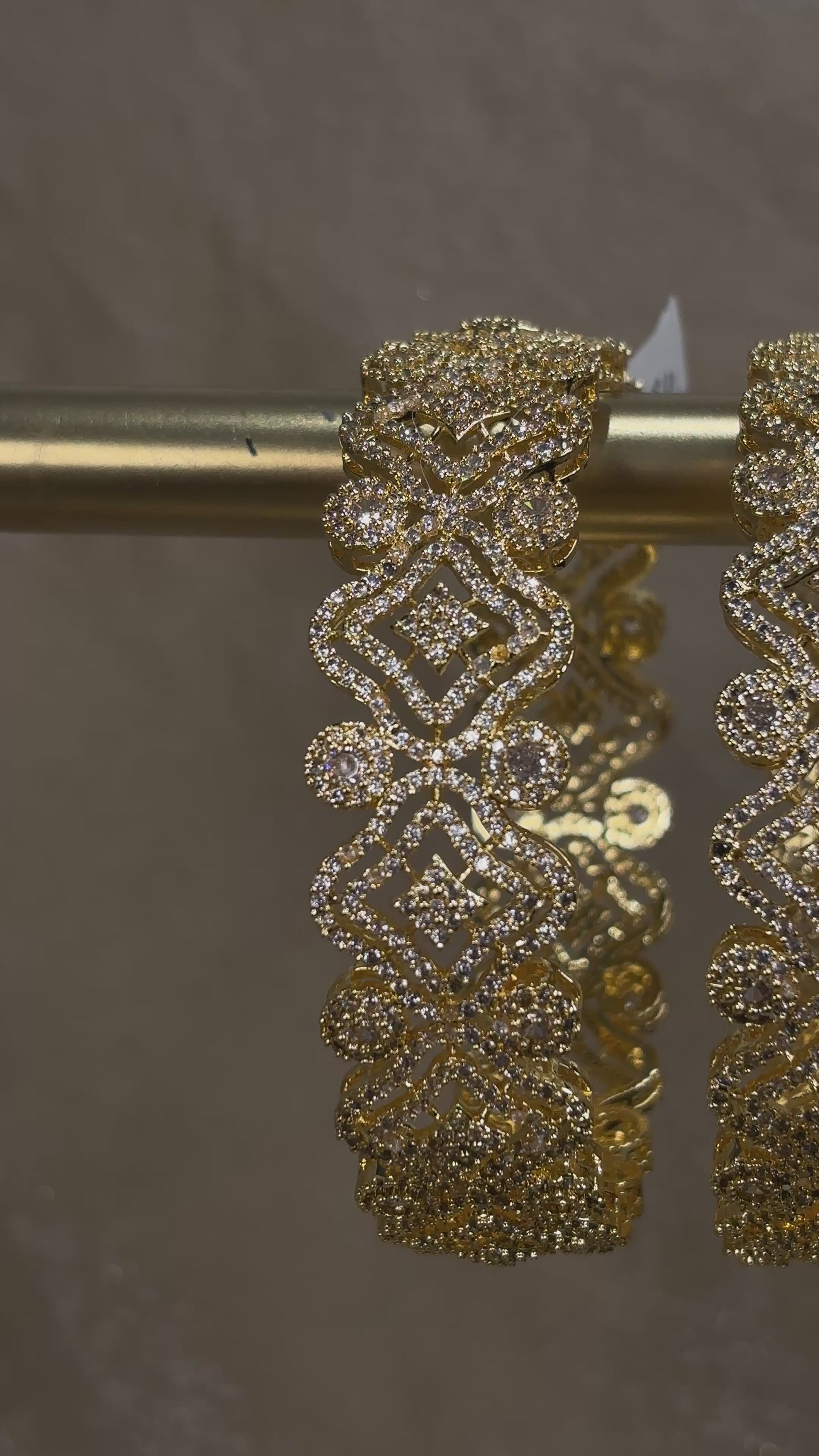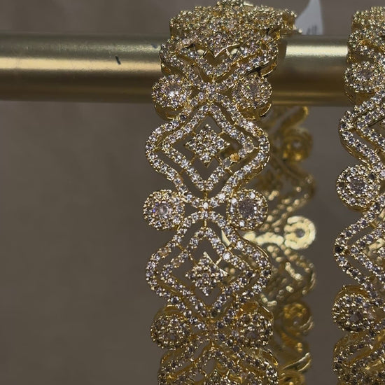 Gold American diamond kare with intricate details; comes in a set of 2