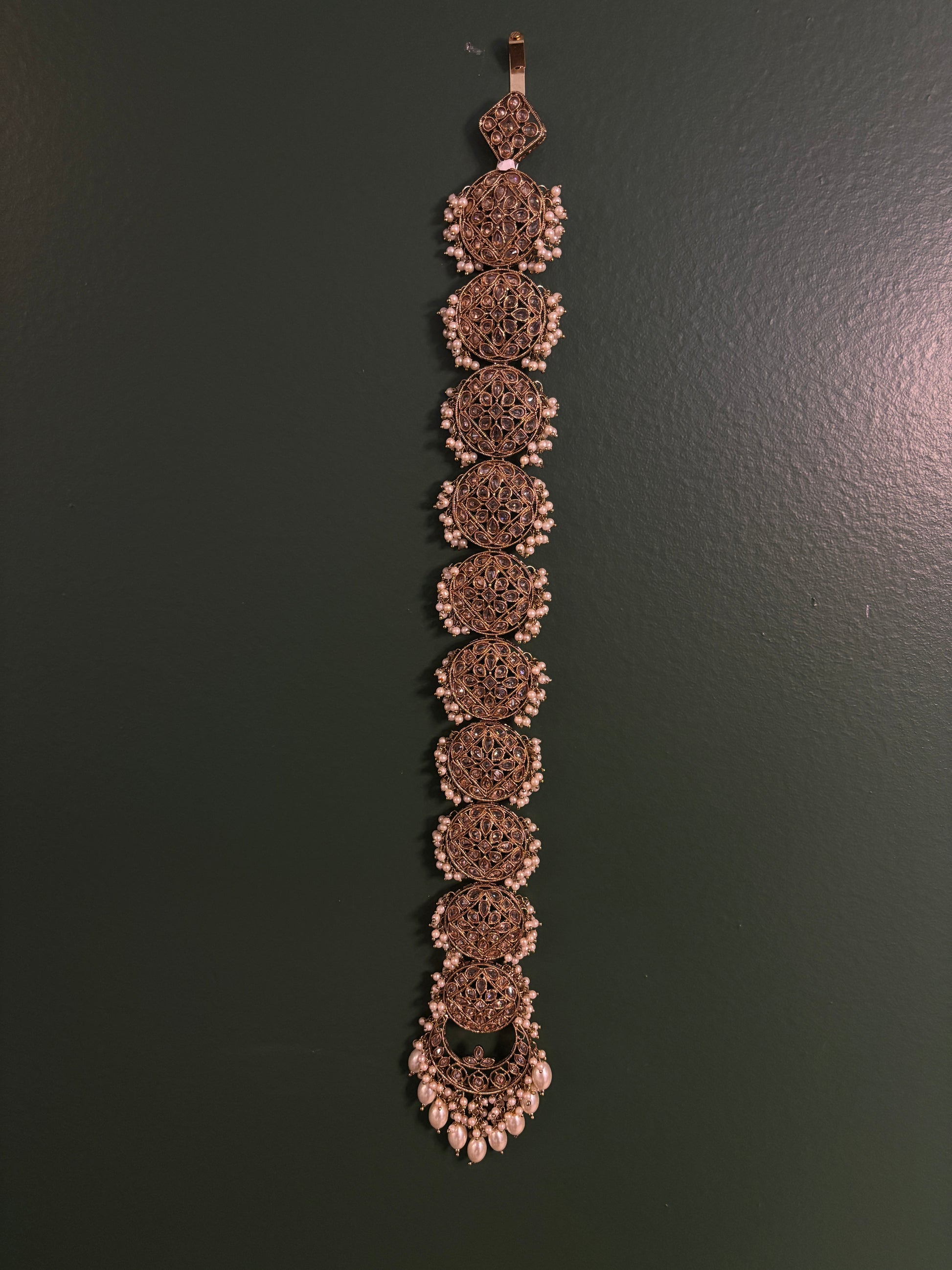 Gold braid accessory with pearl details; comes with hooks to attach to braids