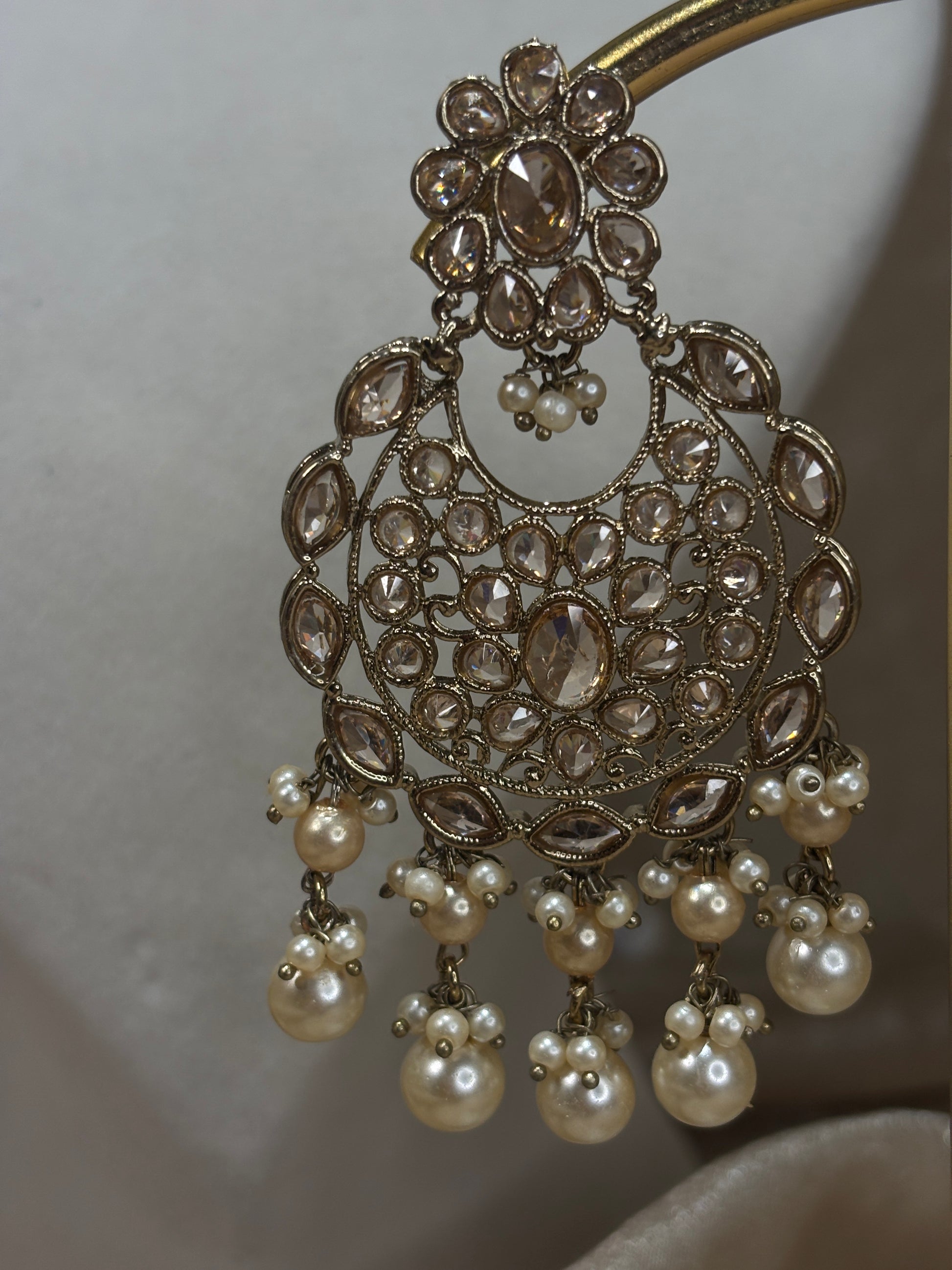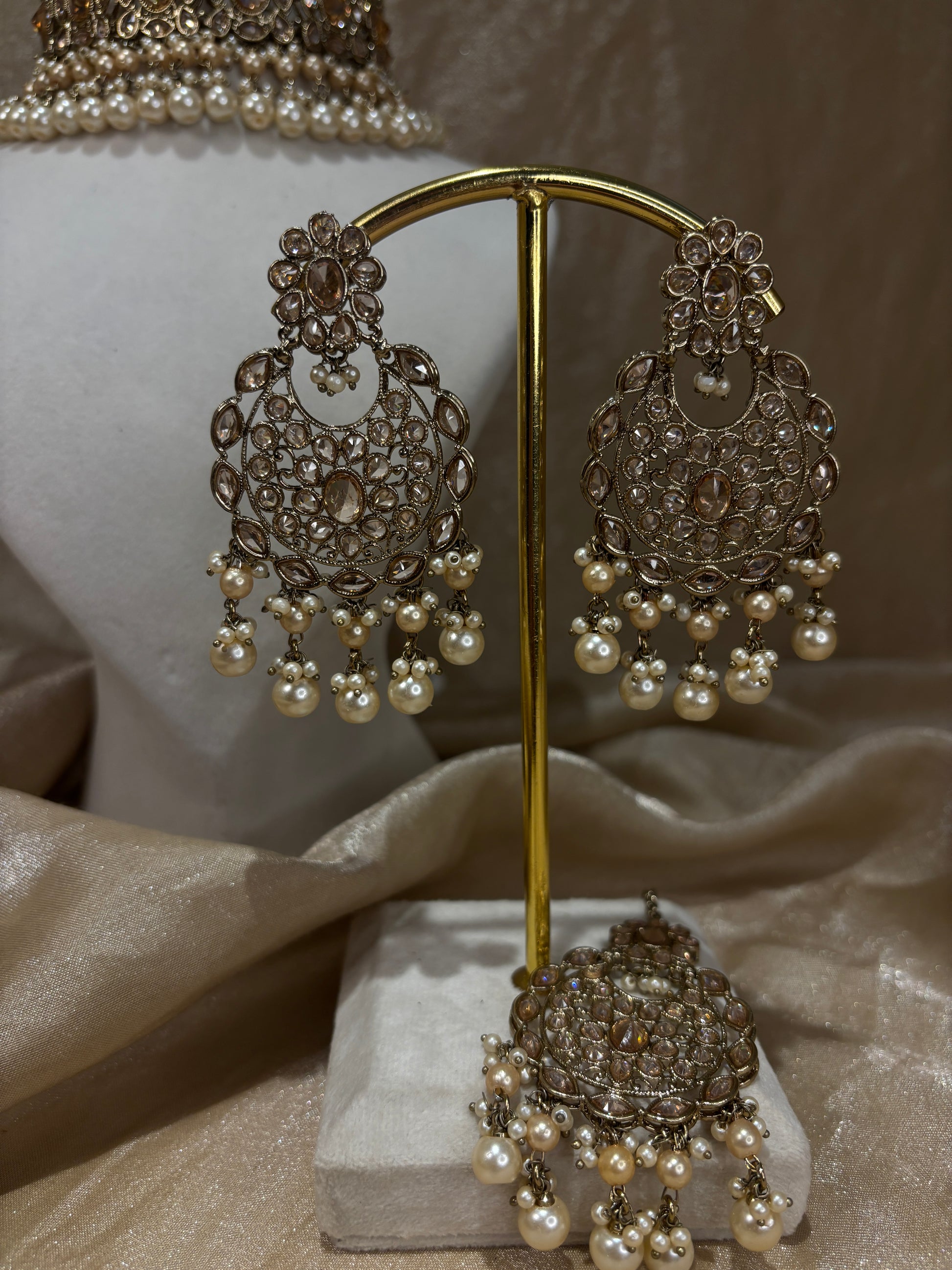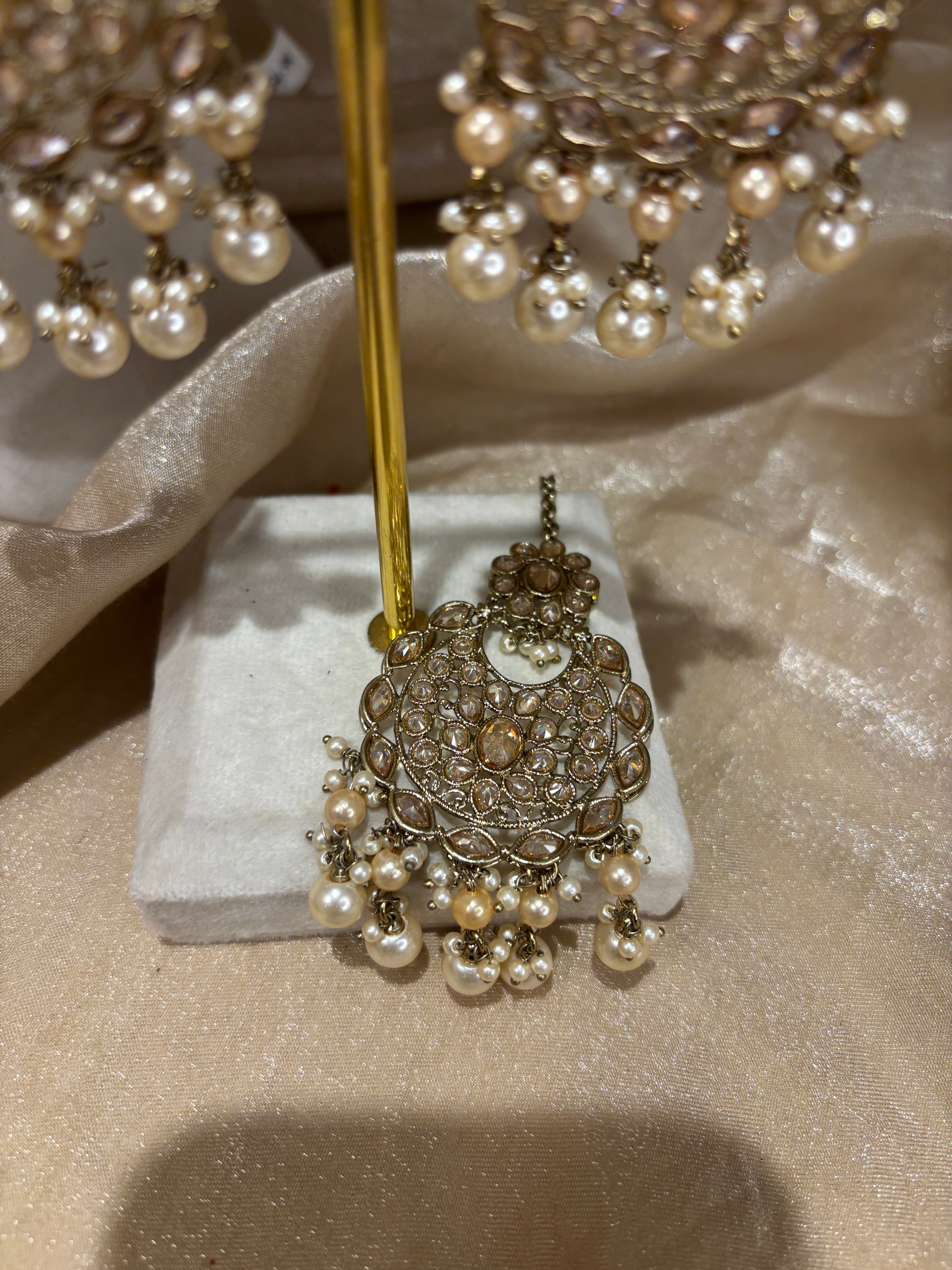 Gold choker with champagne coloured pearls; comes with earrings and tikka