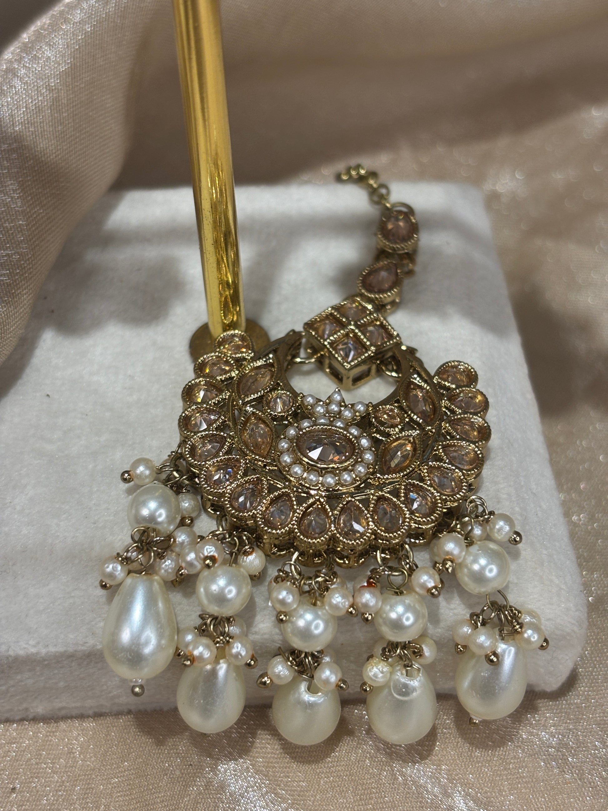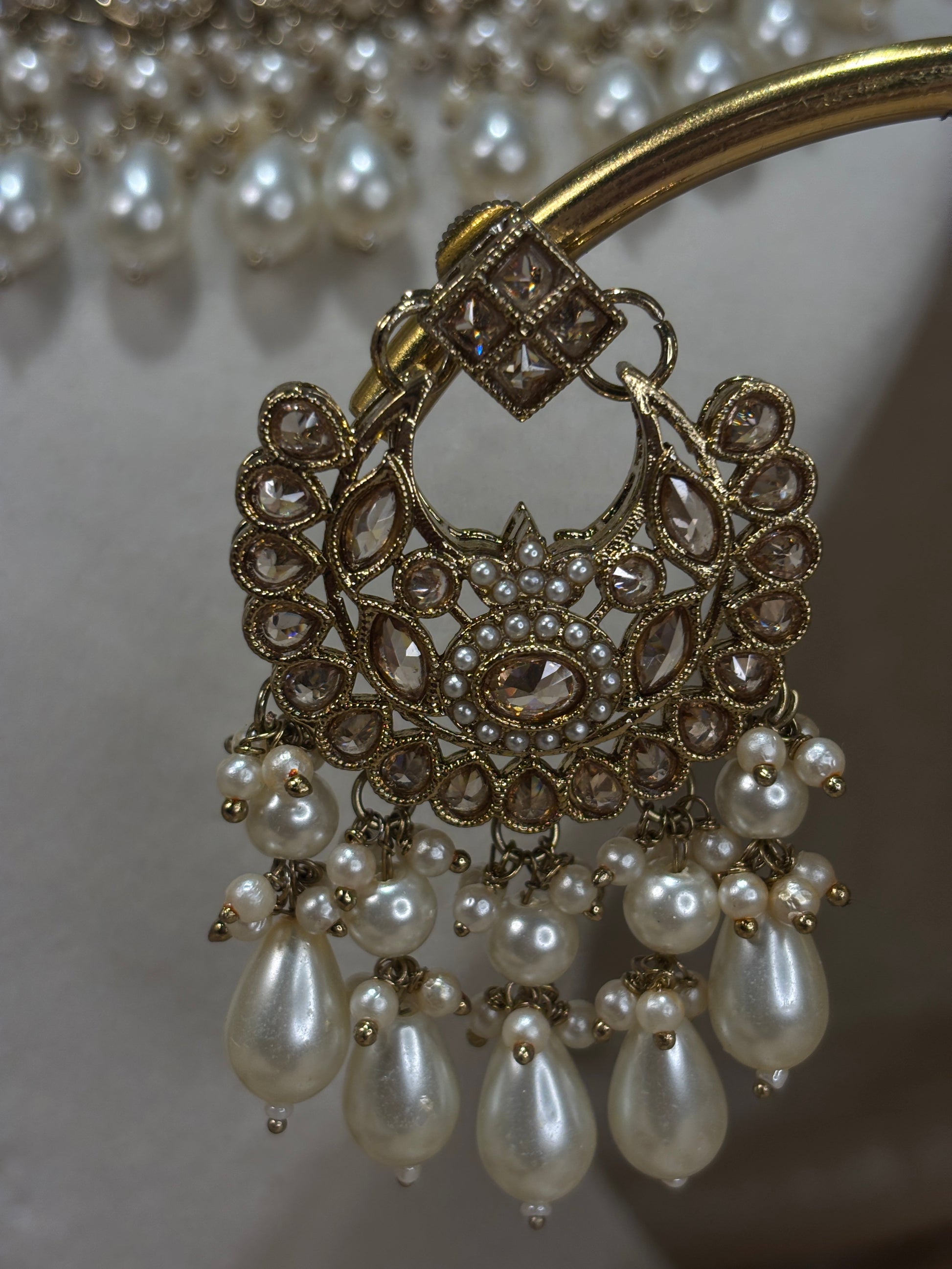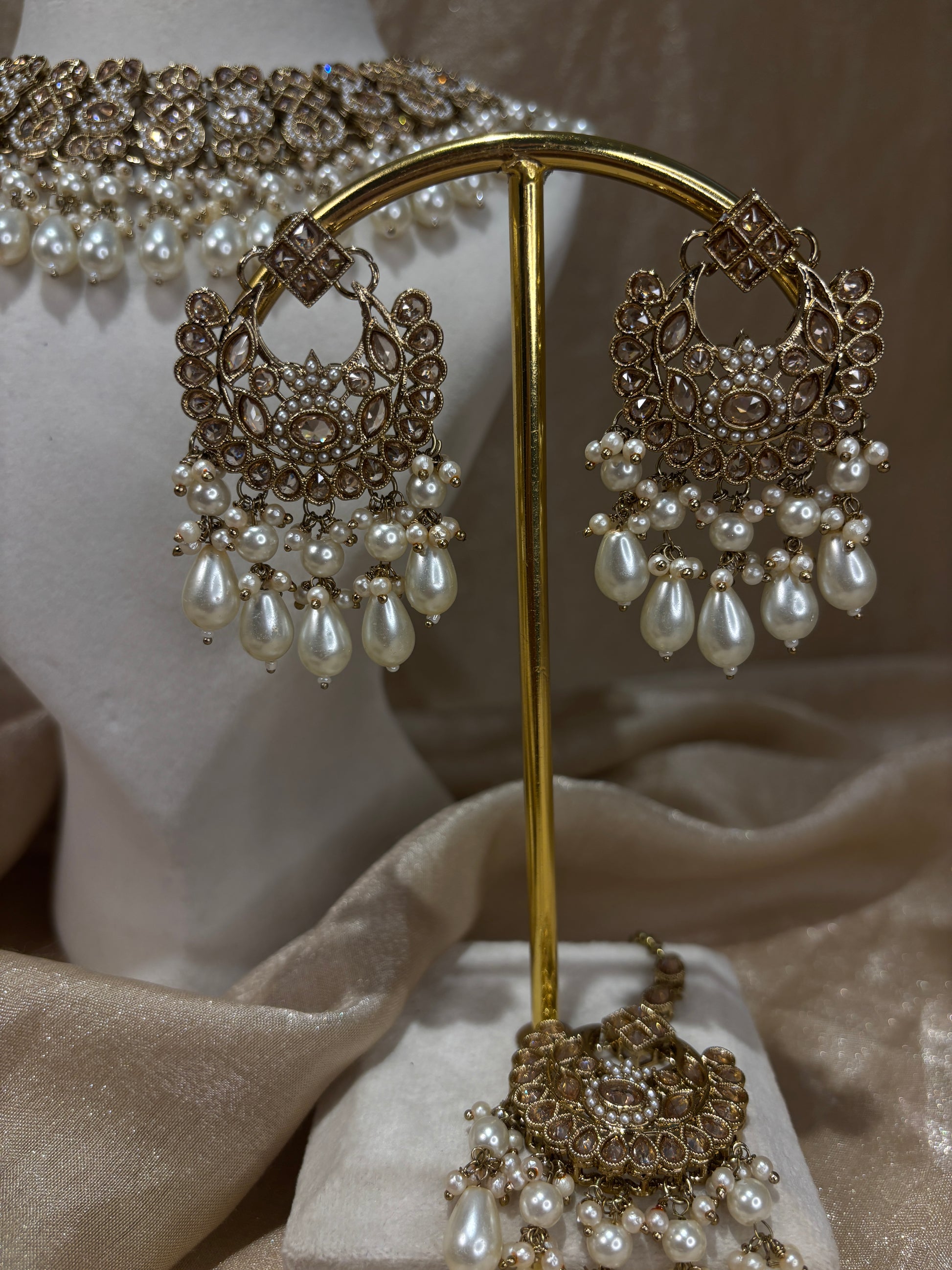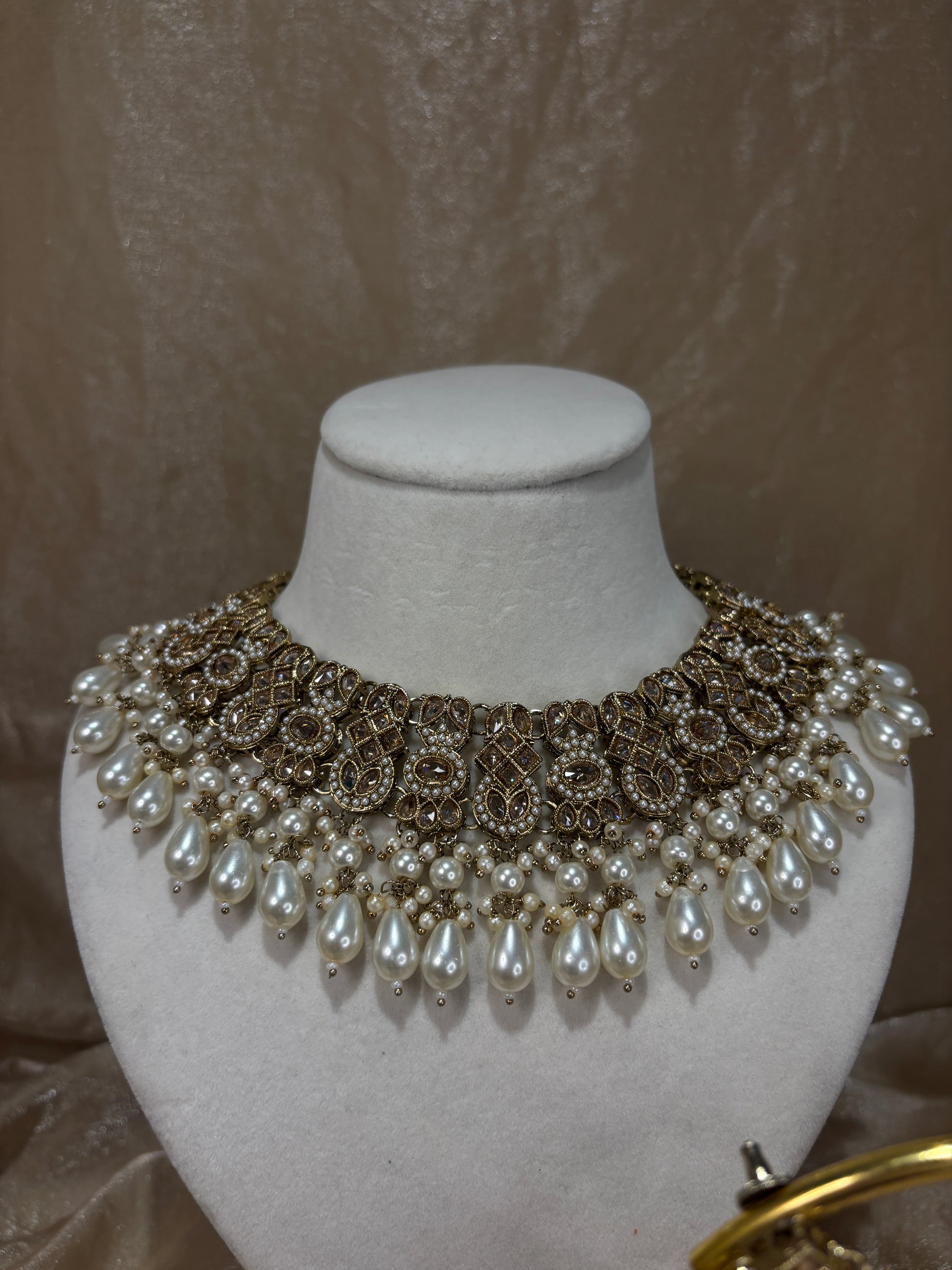 Gold necklace with pearl details; can be worn as a choker or necklace