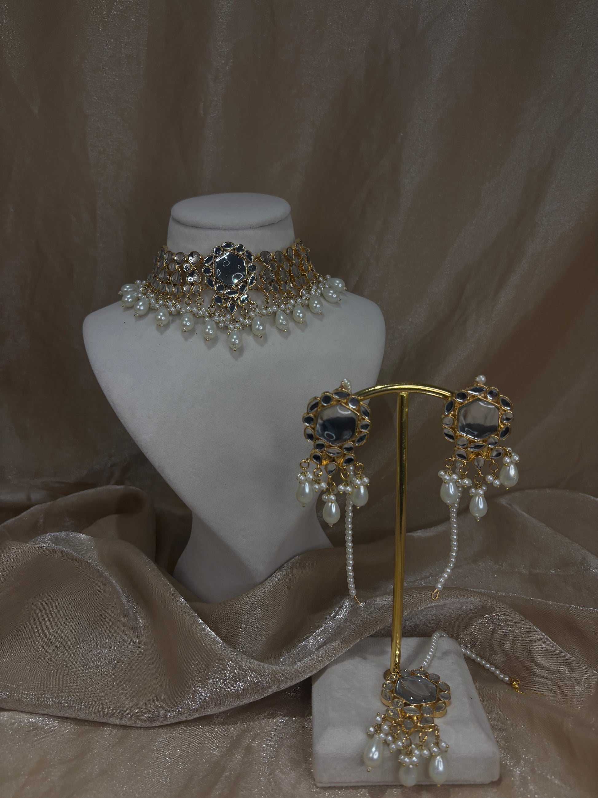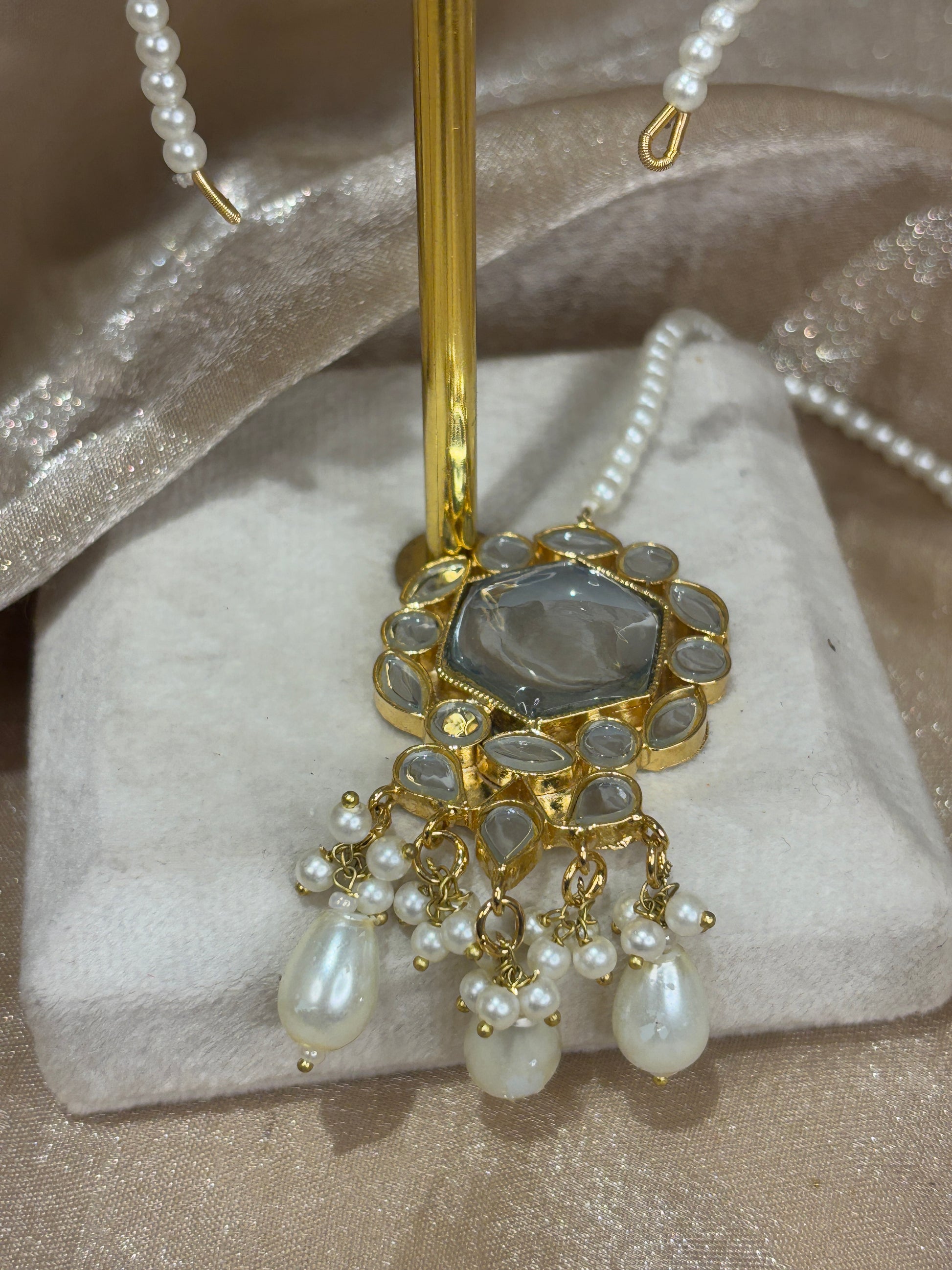 Gold 22k gold plated Pakistani farshi kundan with earrings (with over the ear pearl sahare)