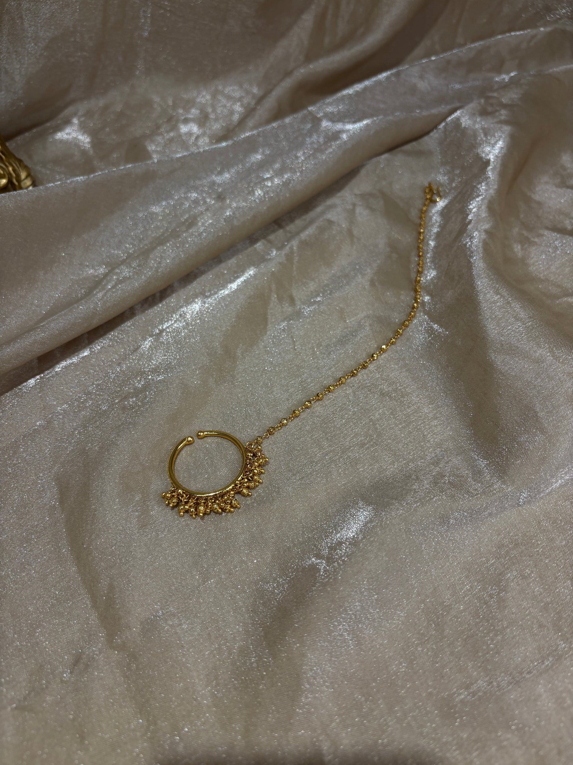 gold-look clip on nose hoop with chain