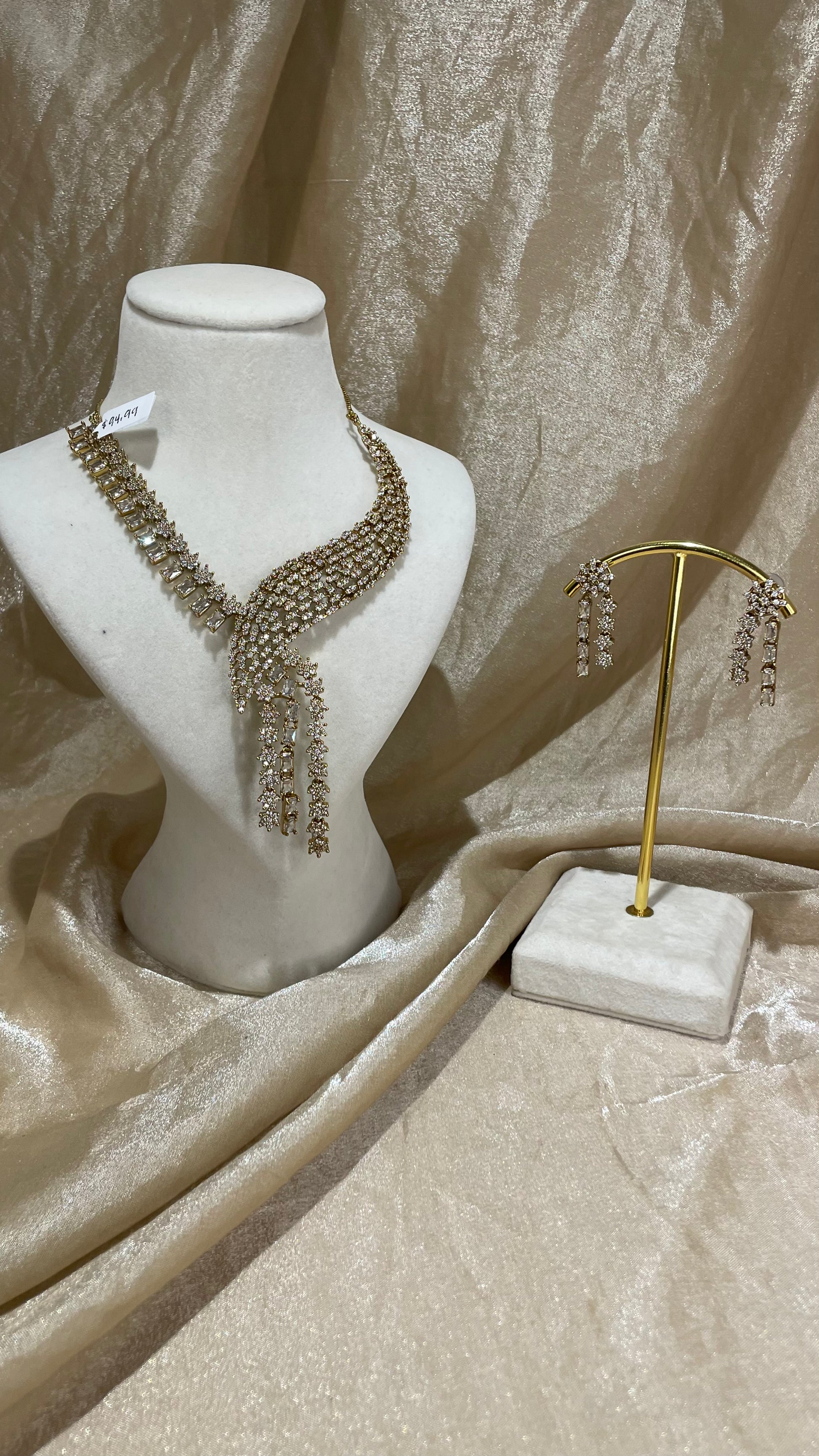 gold american diamond necklace set; comes with earrings
