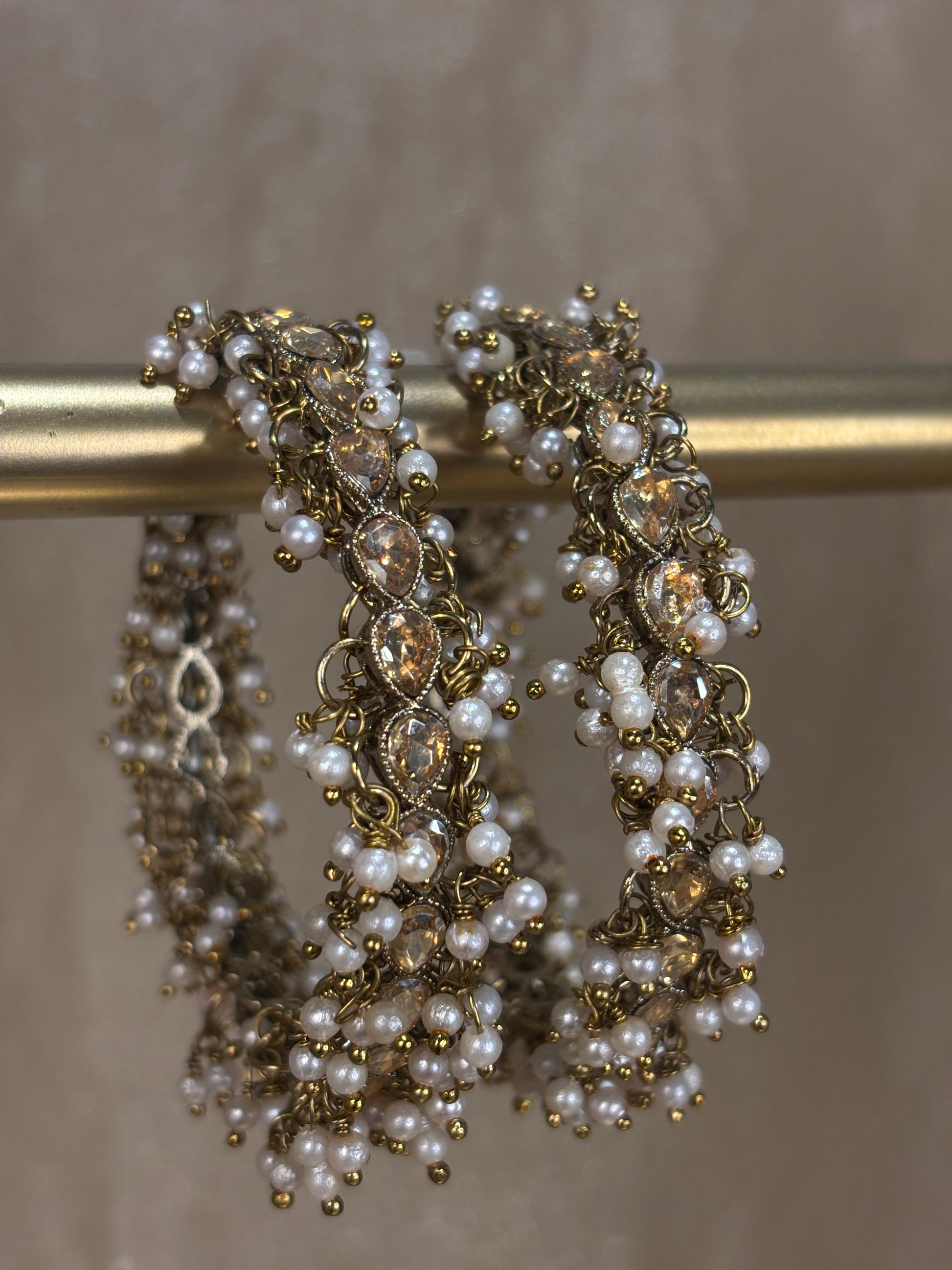 Polki kare in gold with pearl details; comes in a set of 2