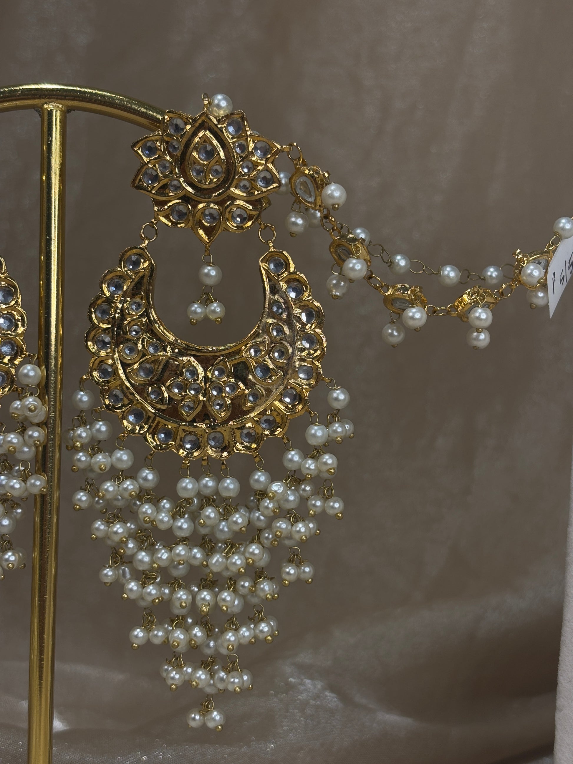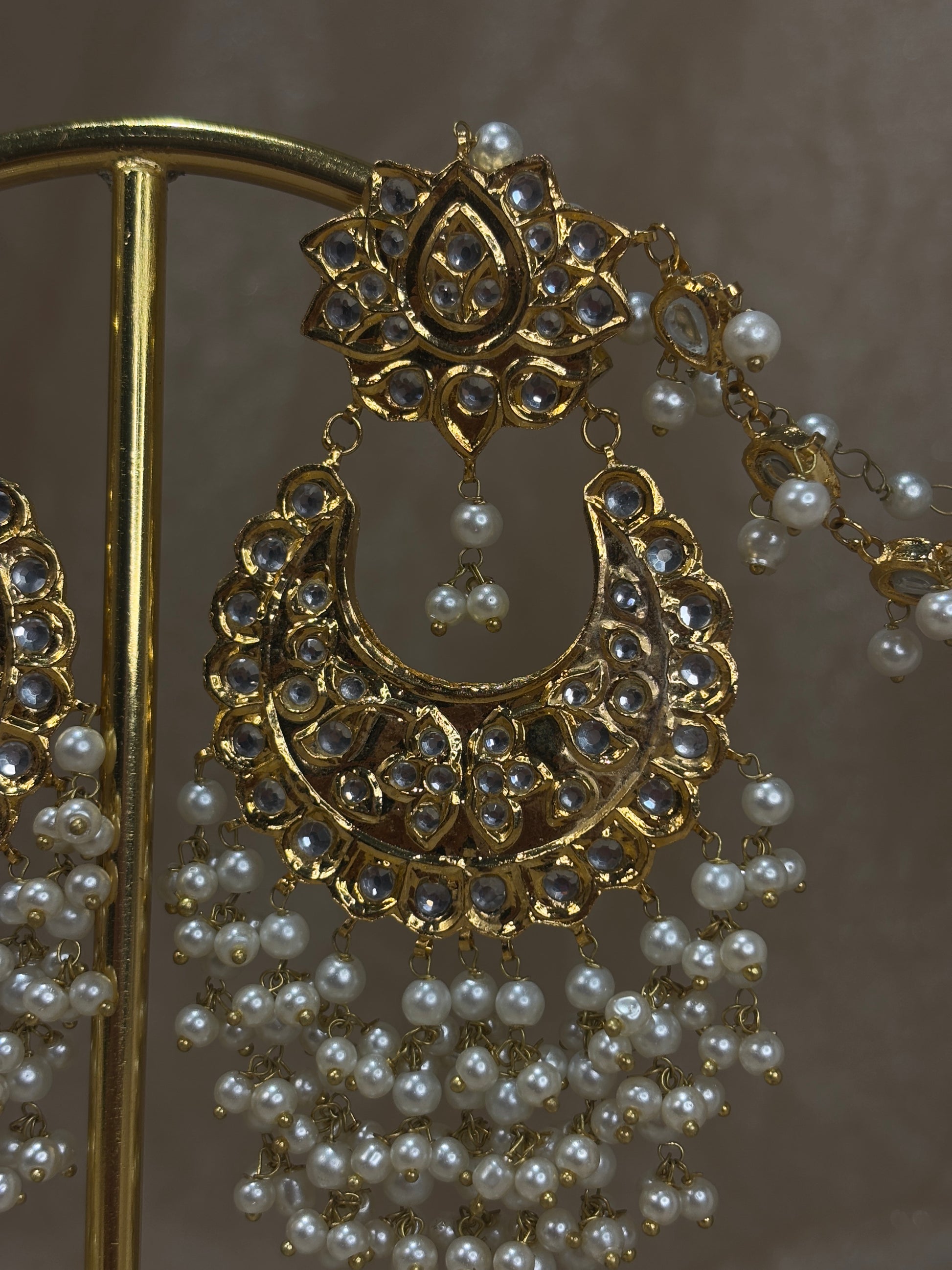Gold 22k gold plated Pakistani thappa kundan earrings (with sahare) and tikka