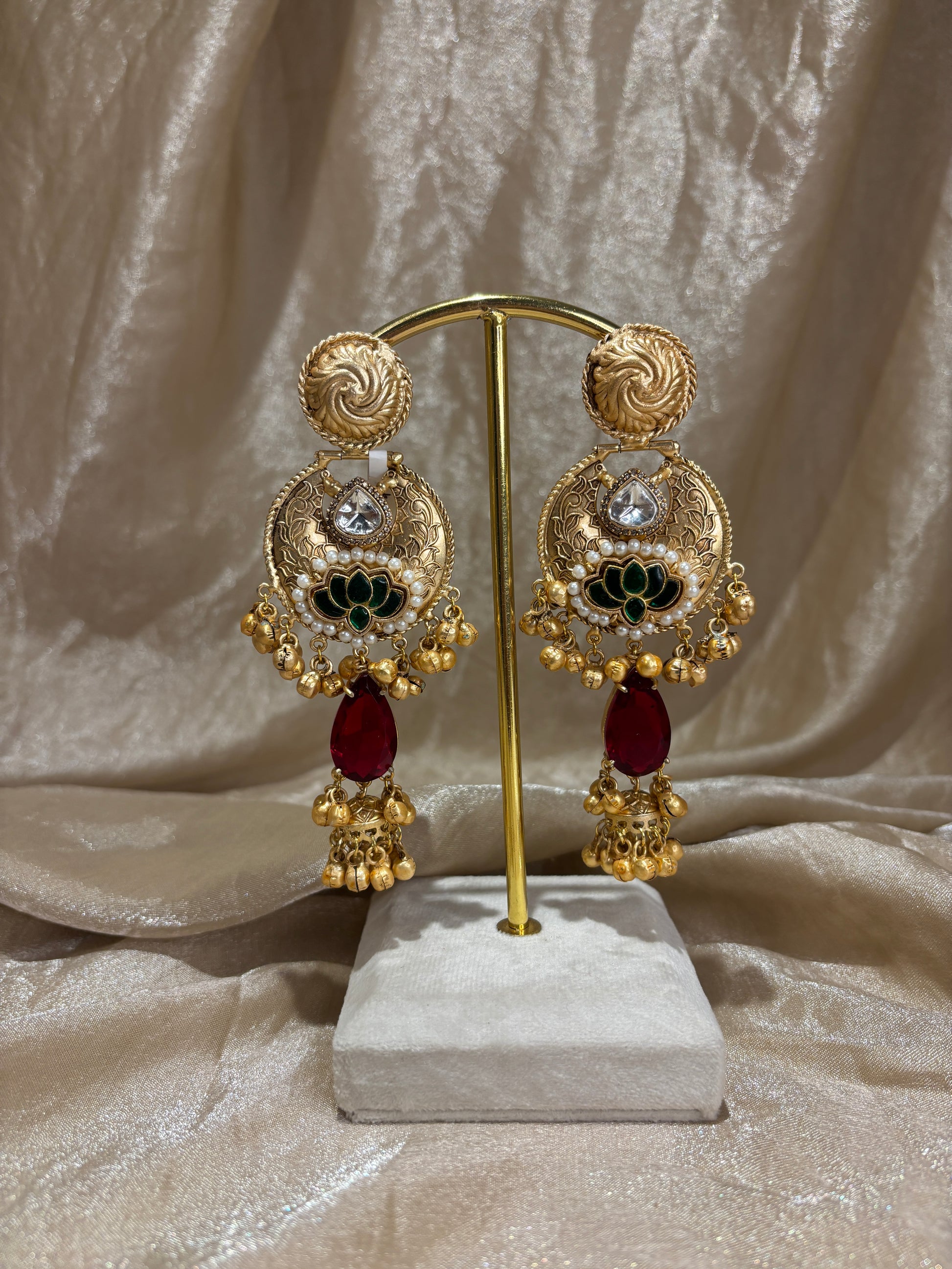 emerald green and hot pink statement earrings; made with 92.5 sterling silver base. comes with bells/ghungroos