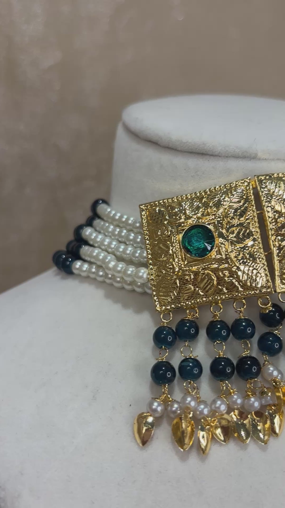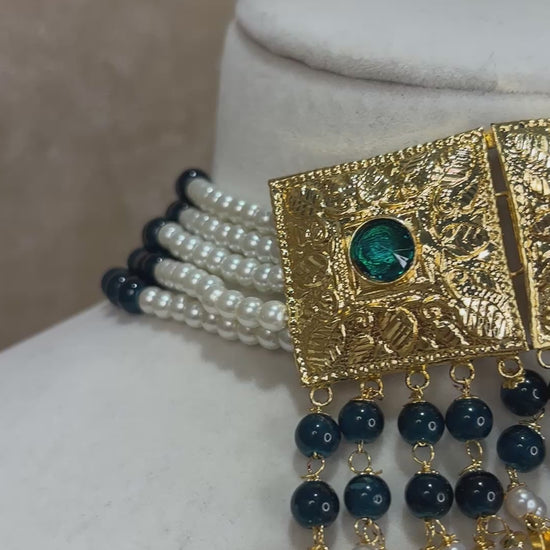 Green/dark teal jadau choker set