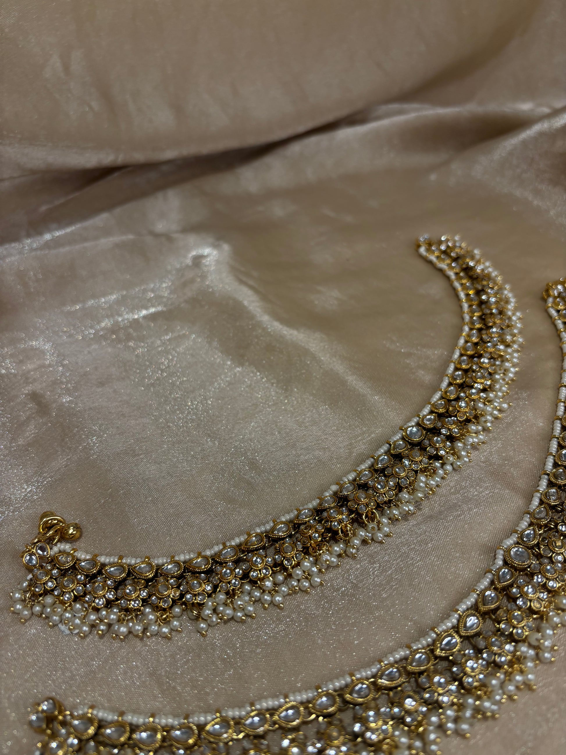 Heavy bridal kundan jhanjaran with flower and pearl details