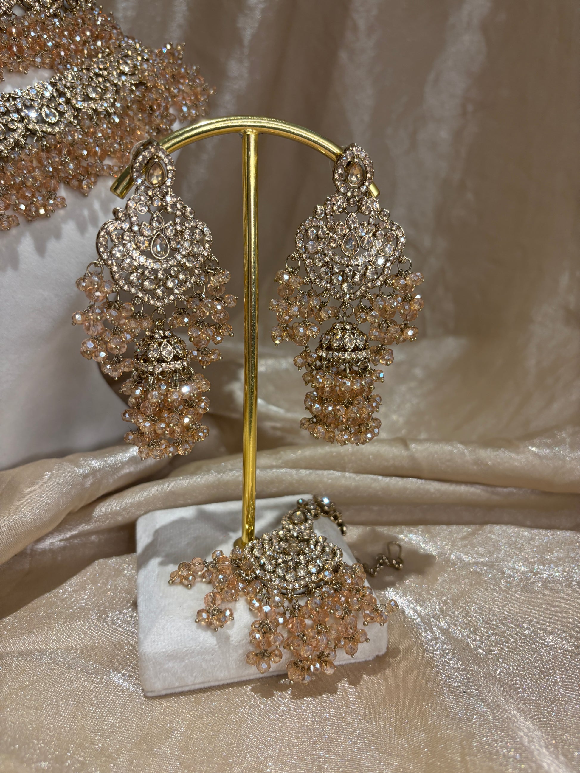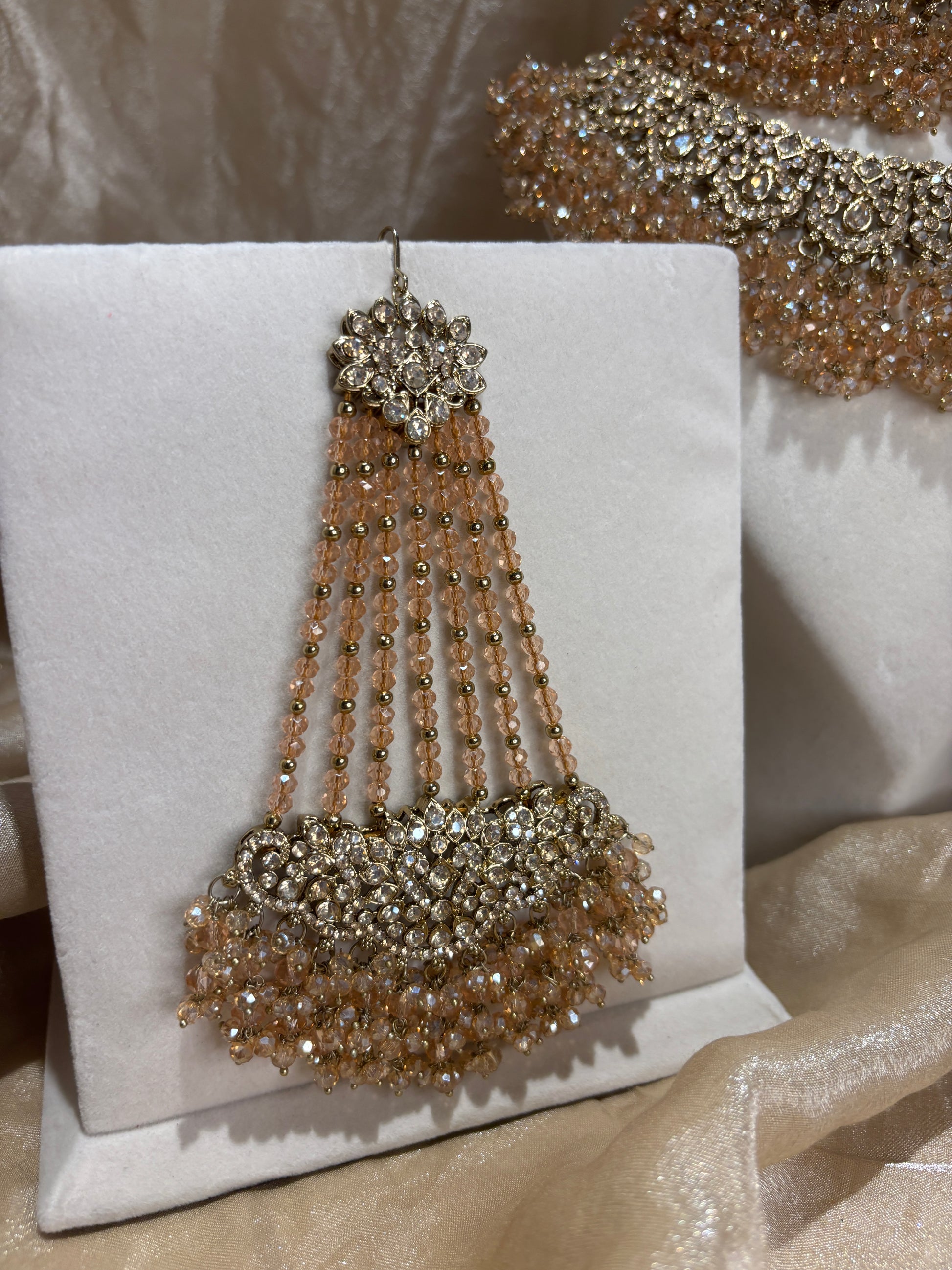 Heavy gold double layer set; comes with choker, necklace, passa, earrings and tikka