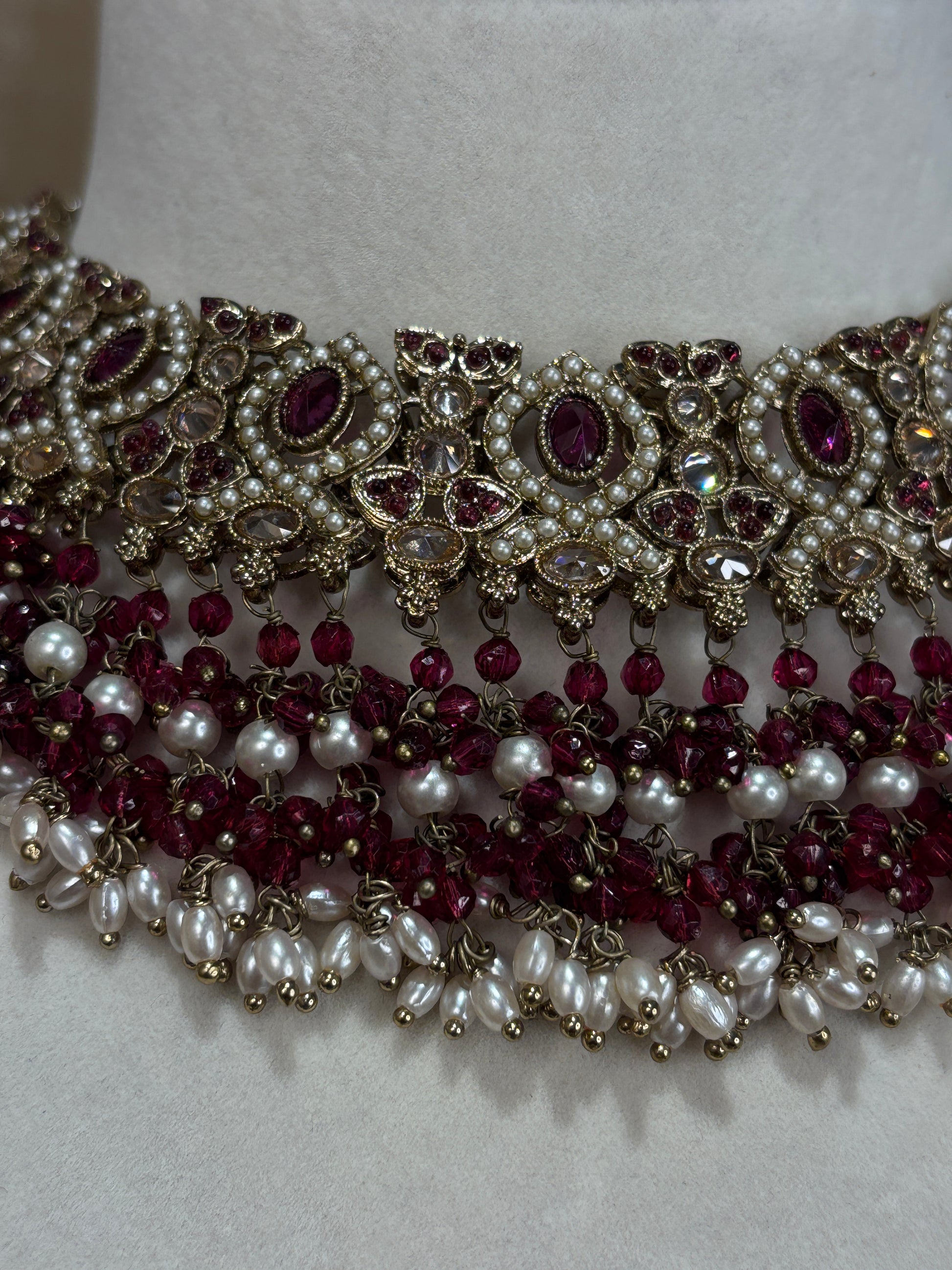 Heavy maroon necklace set