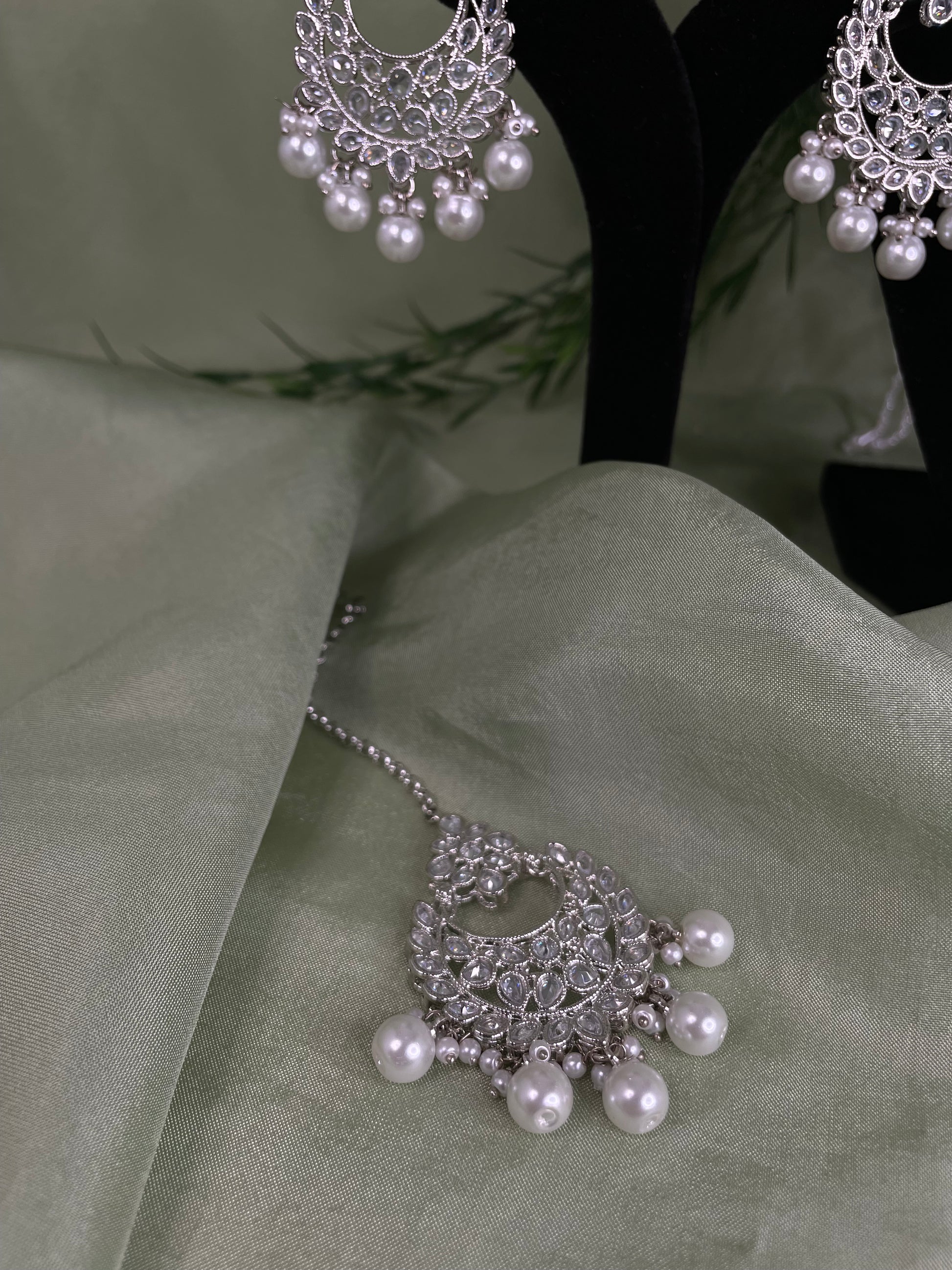 Heavy silver choker with pearl details;comes with earrings and tikka
