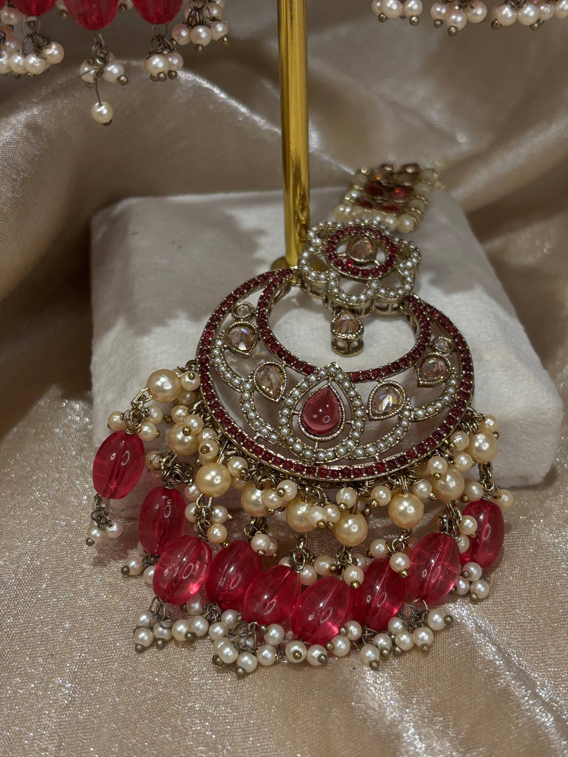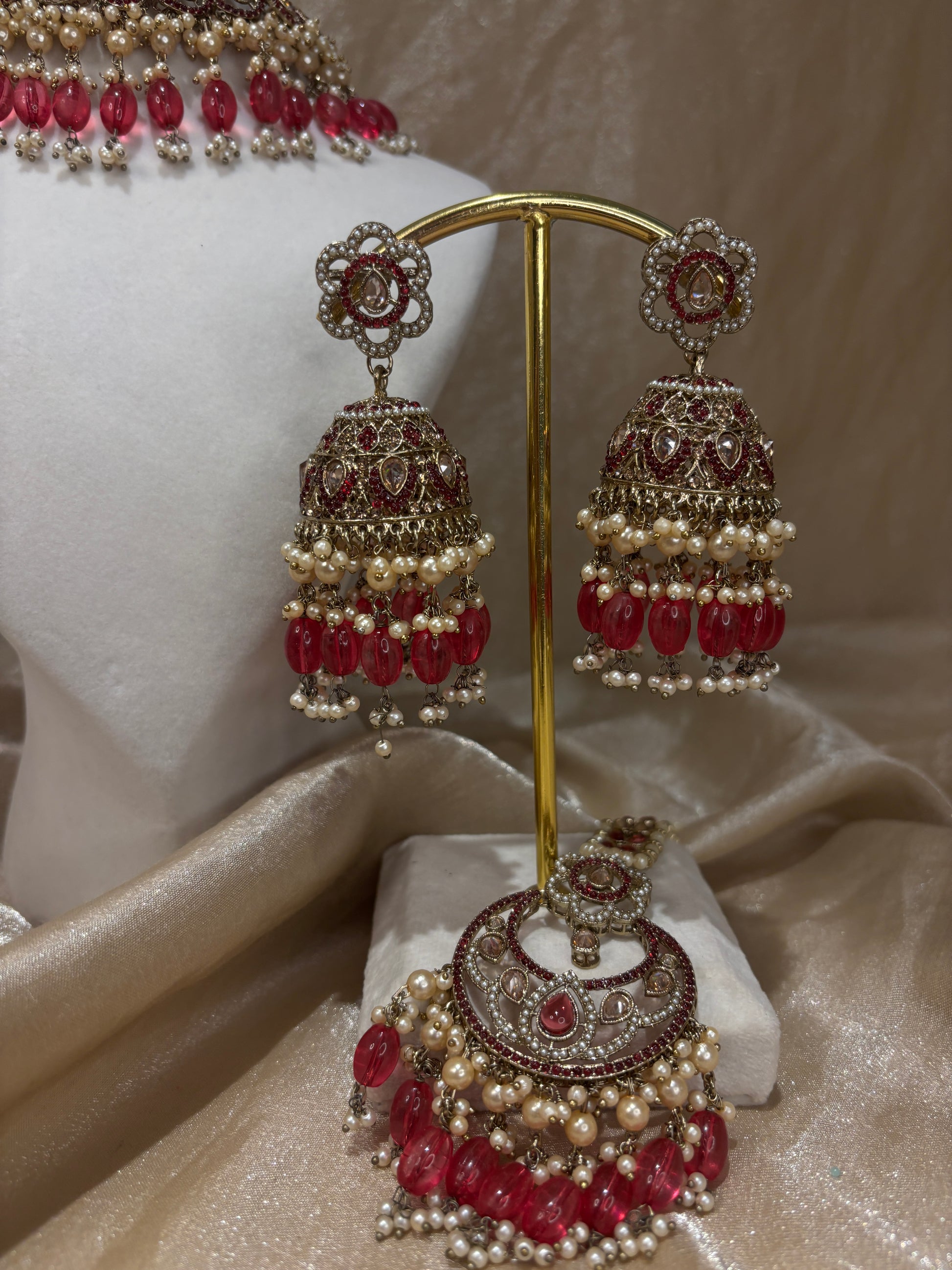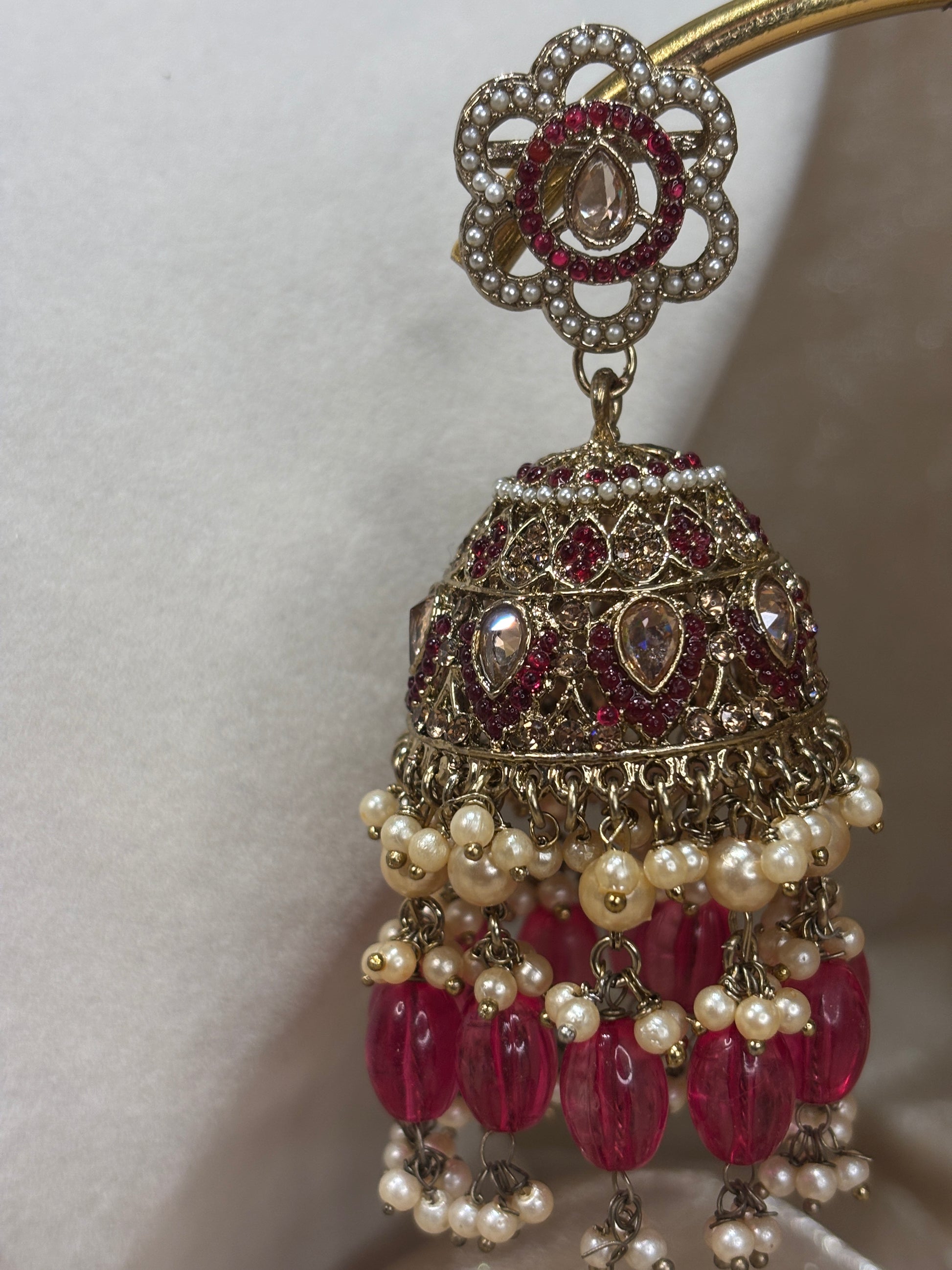 hot pink choker with pearl details; can be worn as a choker or necklace