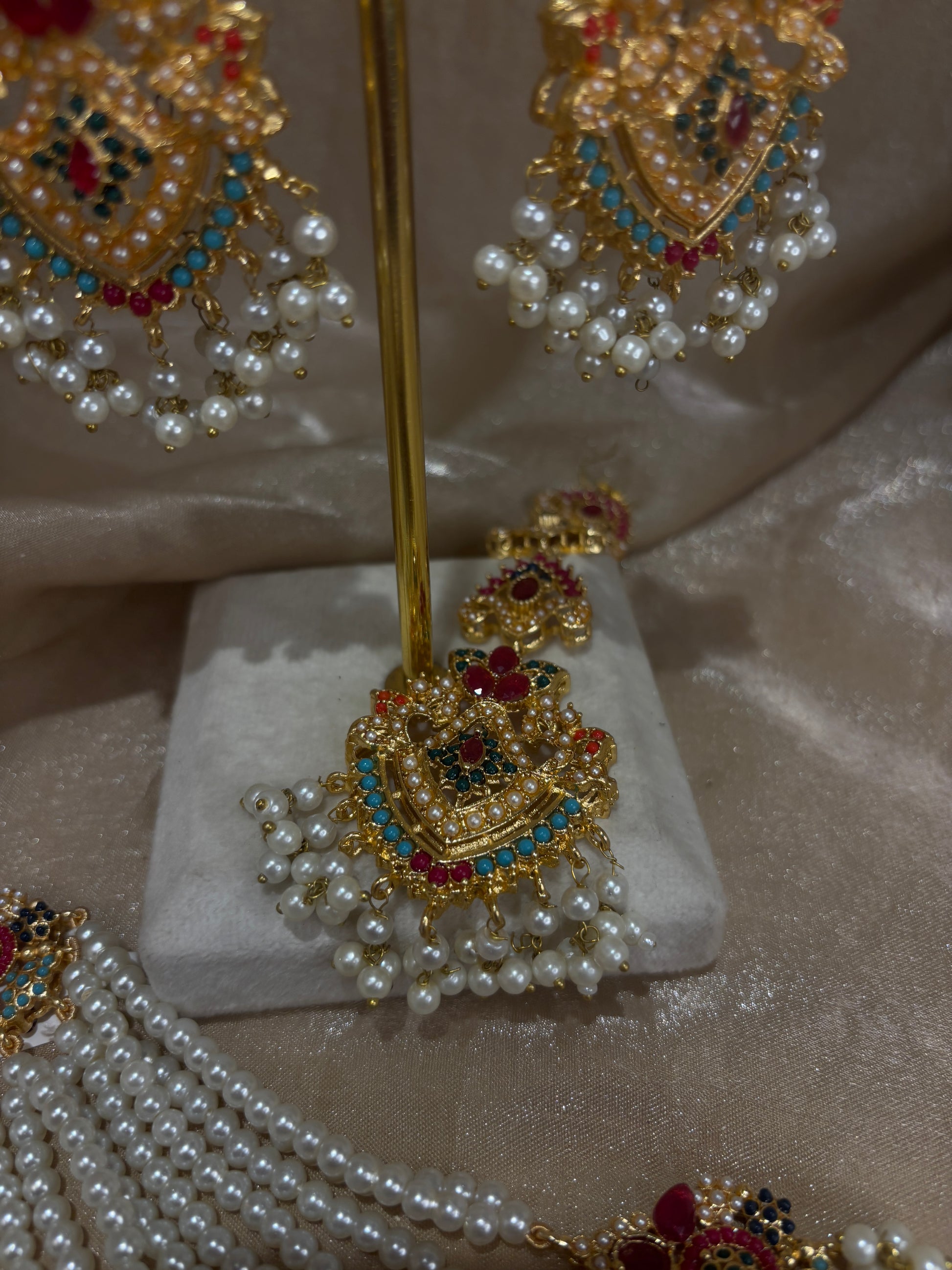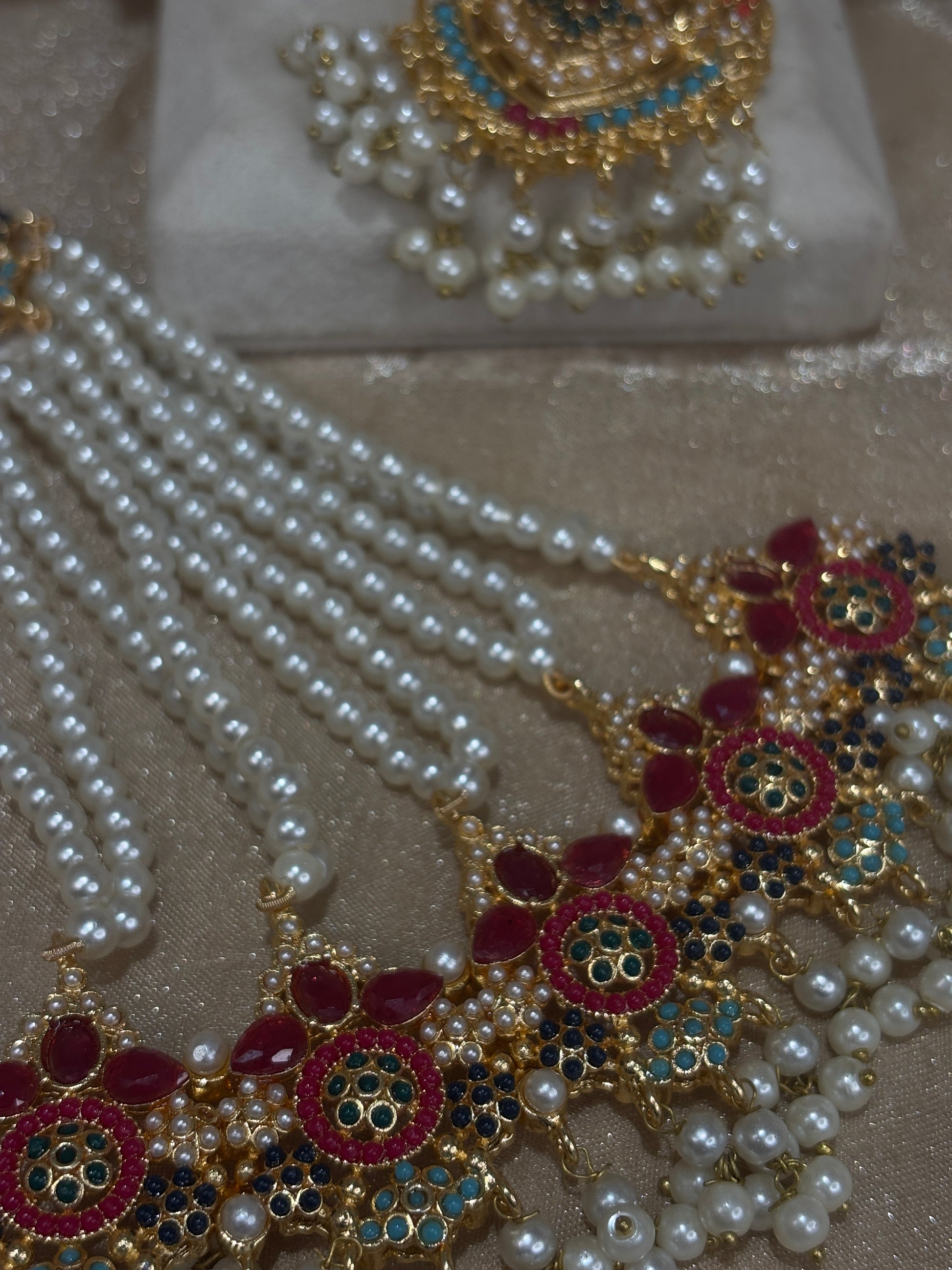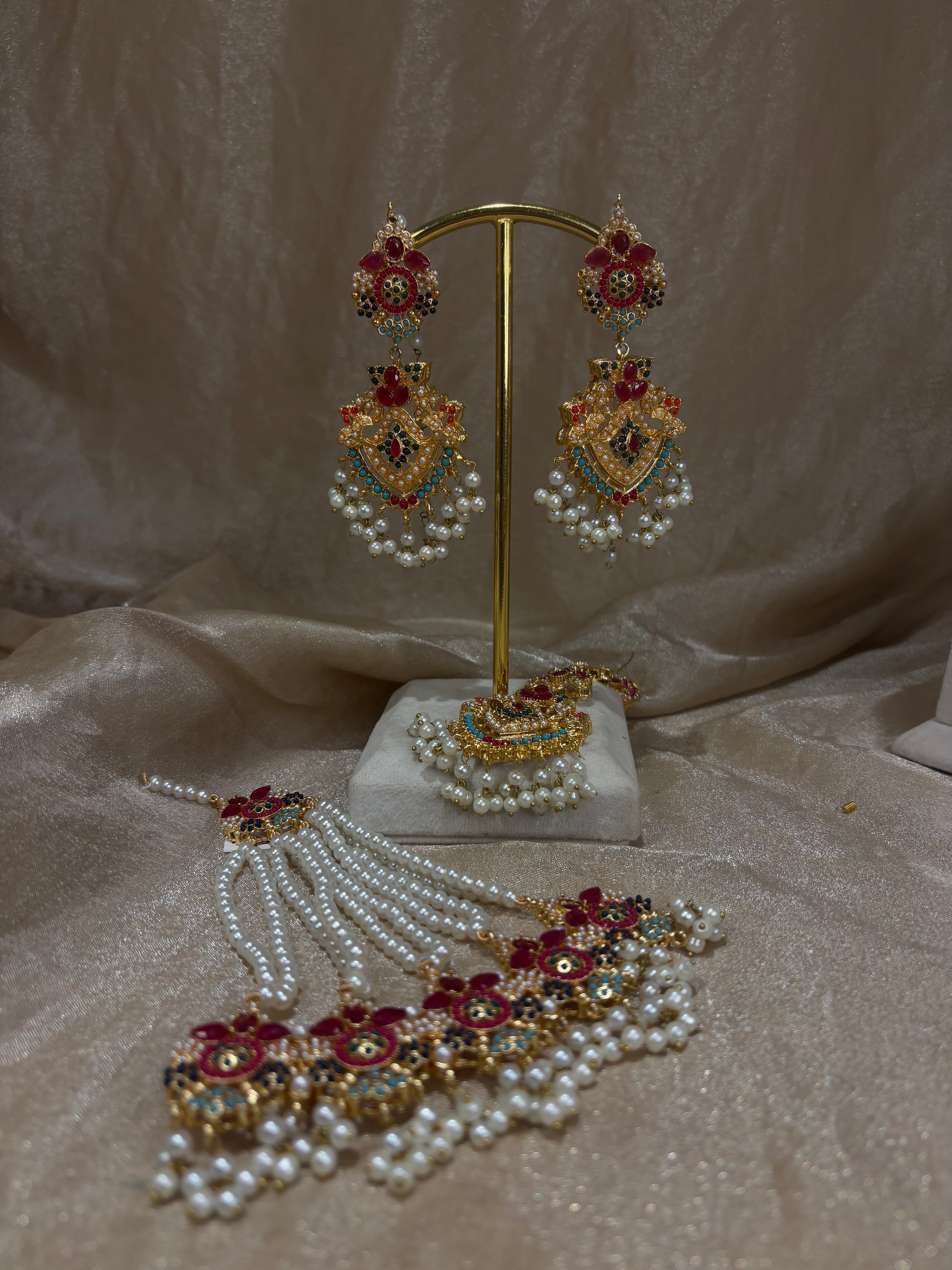 Hot pink Pakistani nav rattan set; comes with earrings, tikka and passa