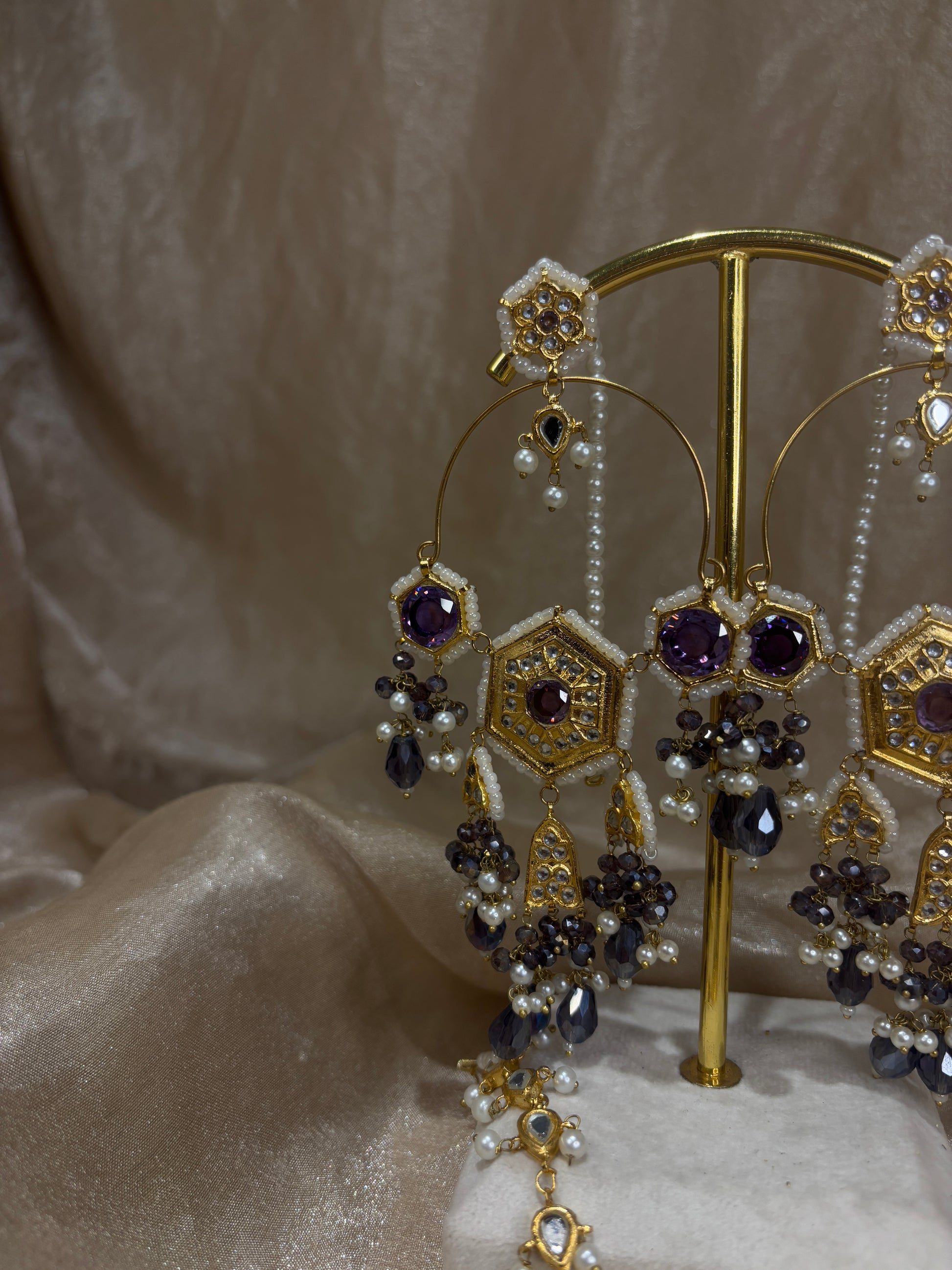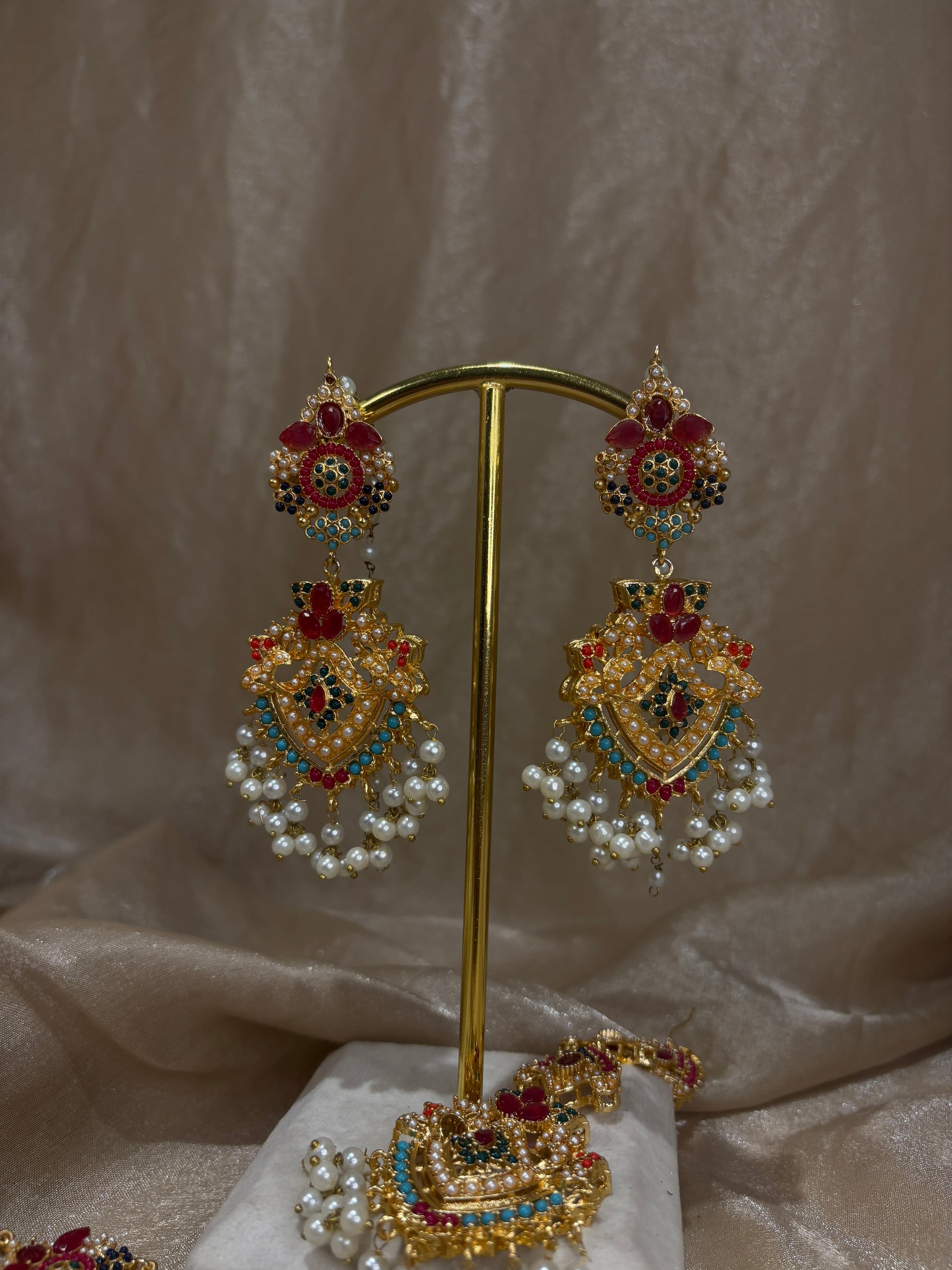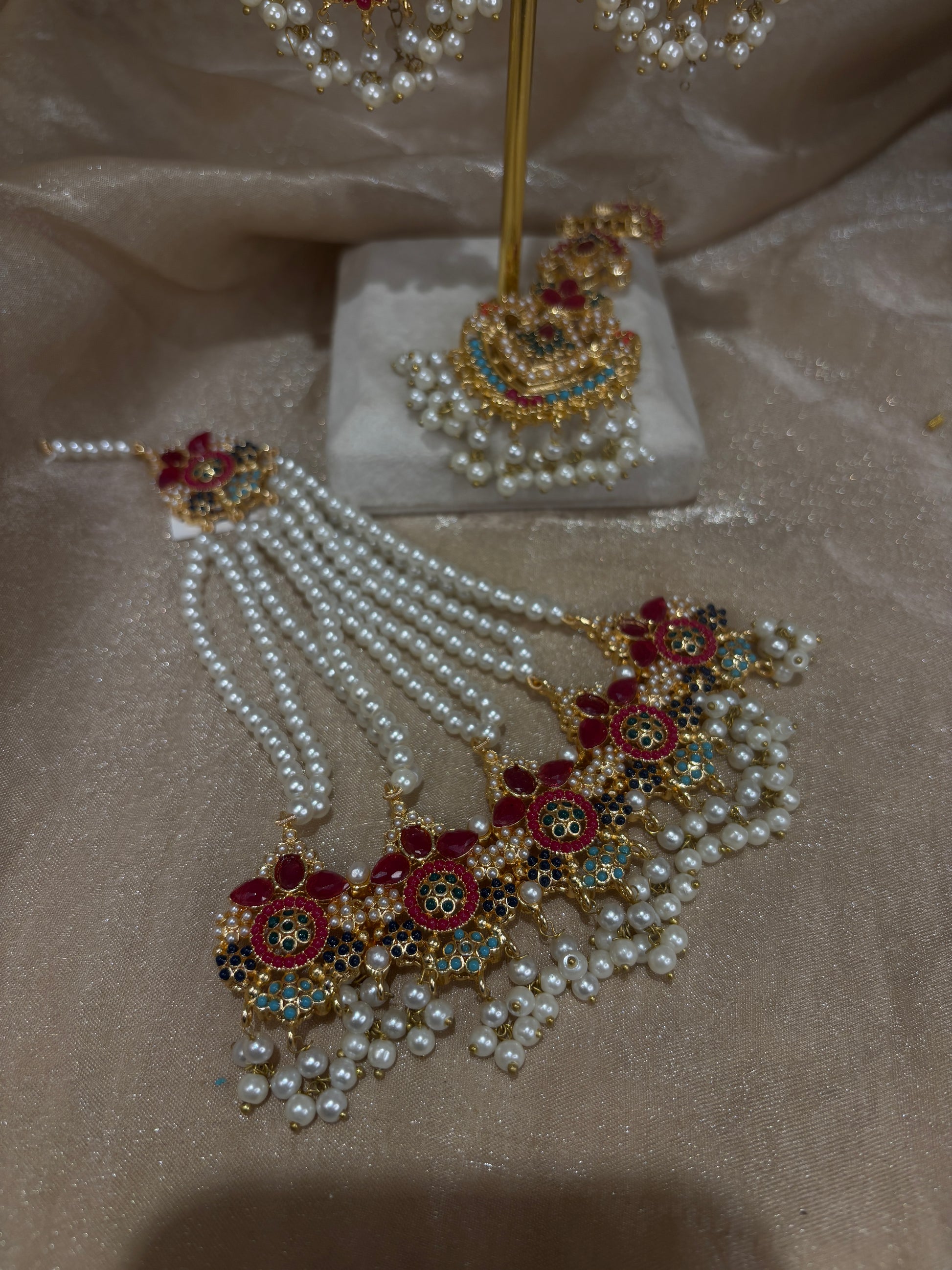 Hot pink Pakistani nav rattan set; comes with earrings, tikka and passa