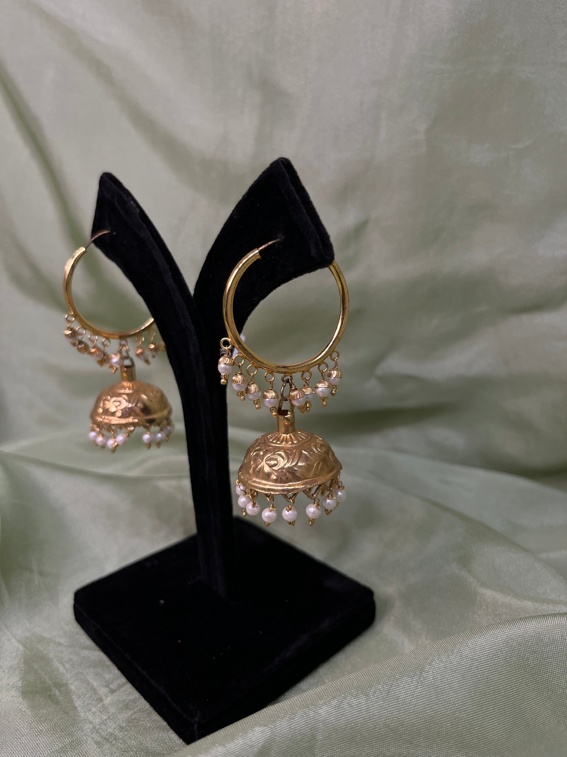 Jadau valiyan with jhumki and pearl details.