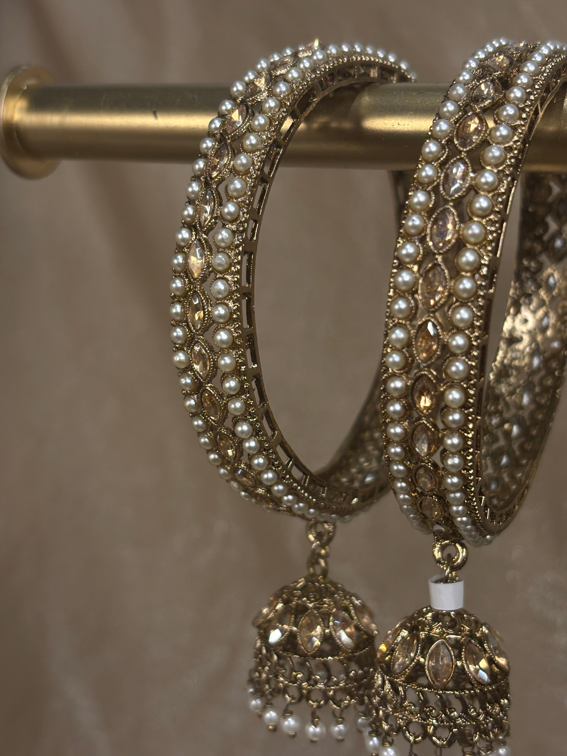 Stunning pearl detail jhumki kare, comes in a set of 2