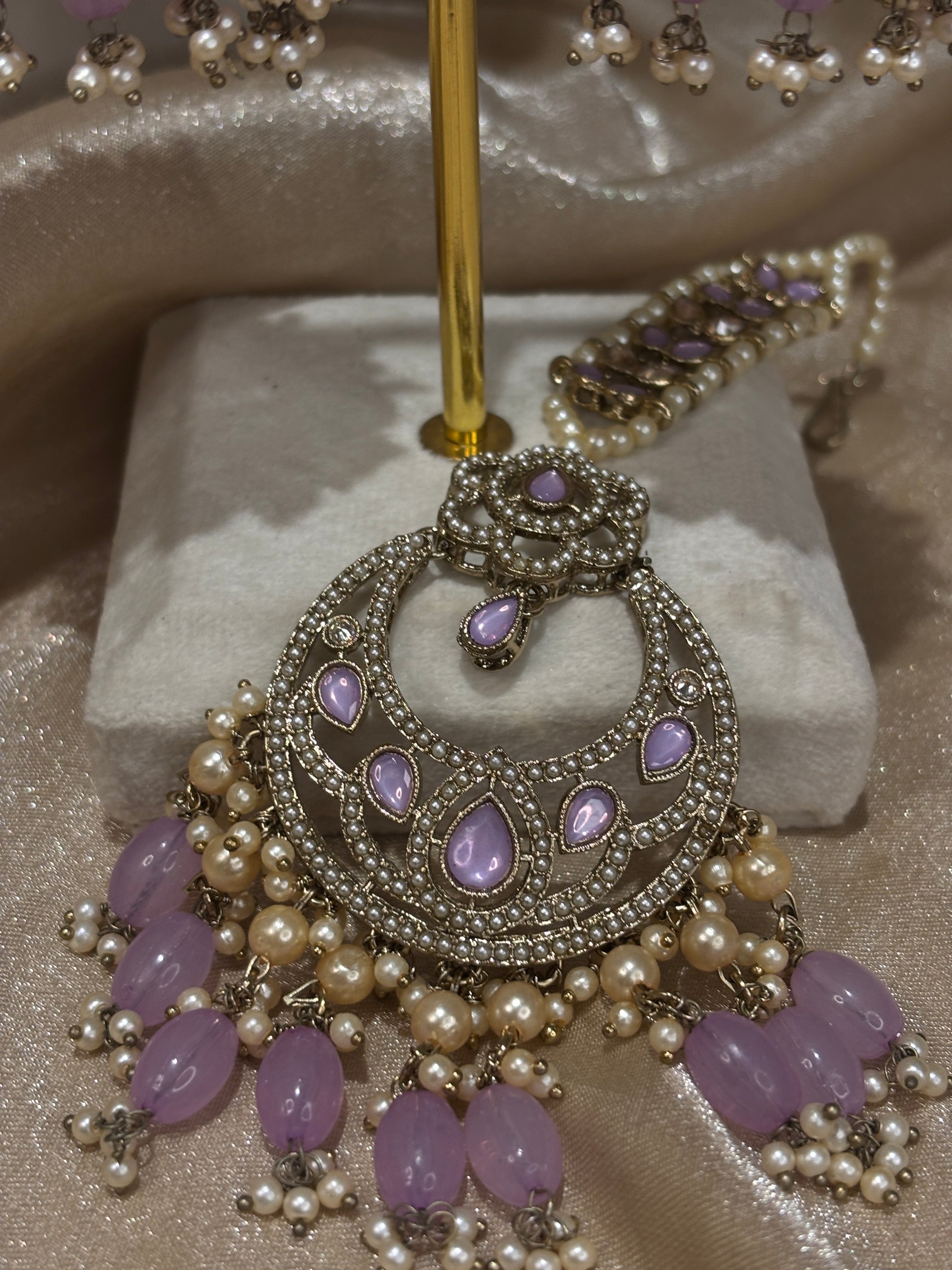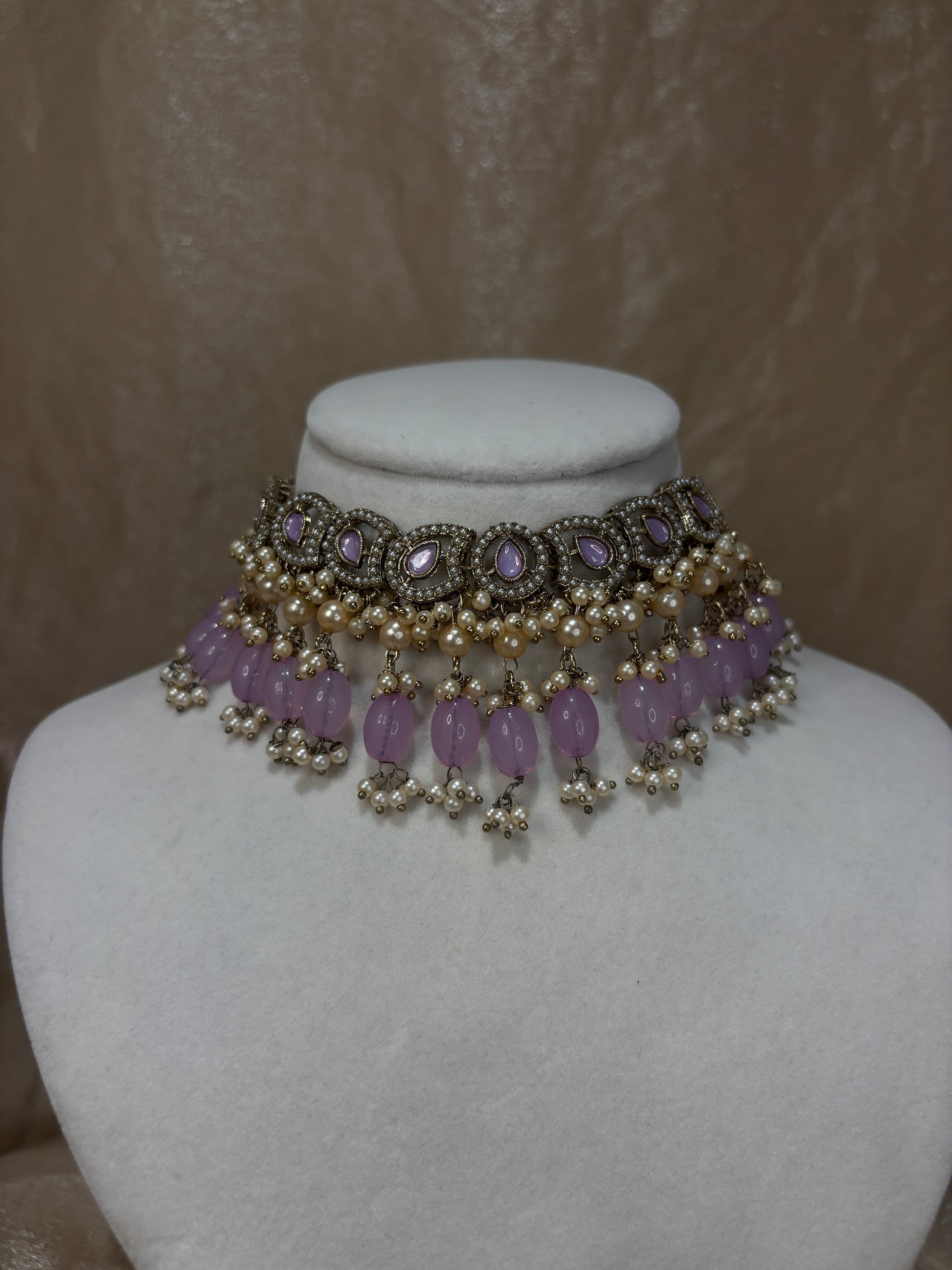 Lavender choker with pearl details; can be worn as a choker or necklace