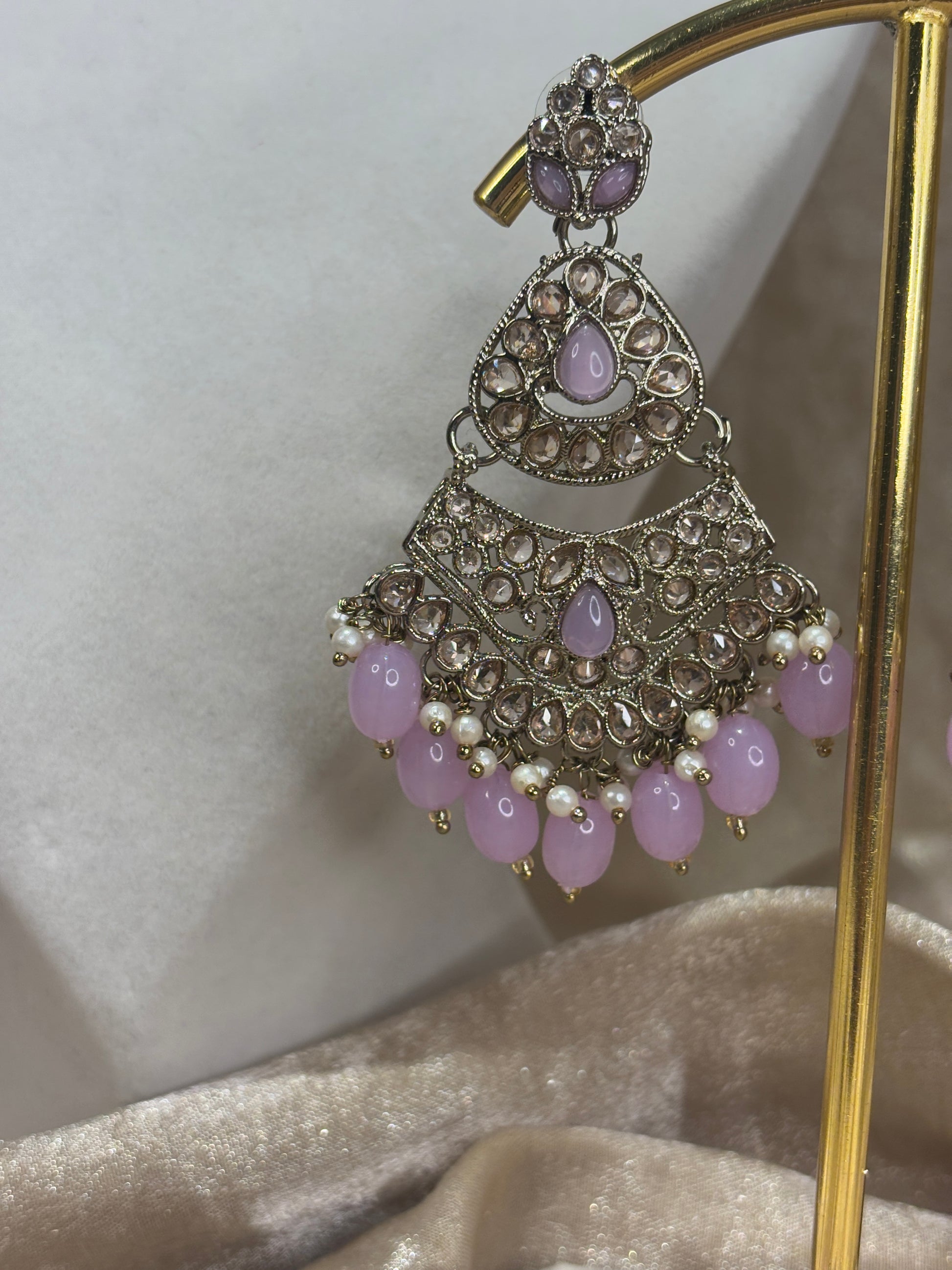 Lavender choker set with pearl details; comes ith earrings and tikka