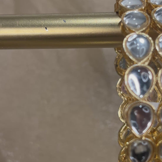 Medium sized teardrop shaped kundan kare in yellow gold; comes in a set of 4