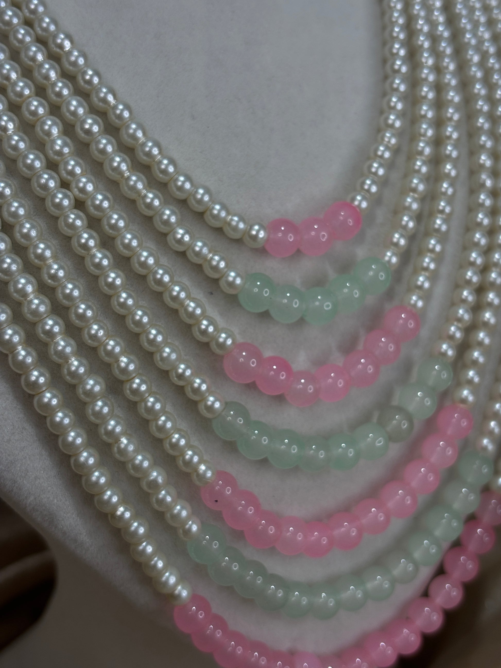 Mint green/baby pink jadau necklace set