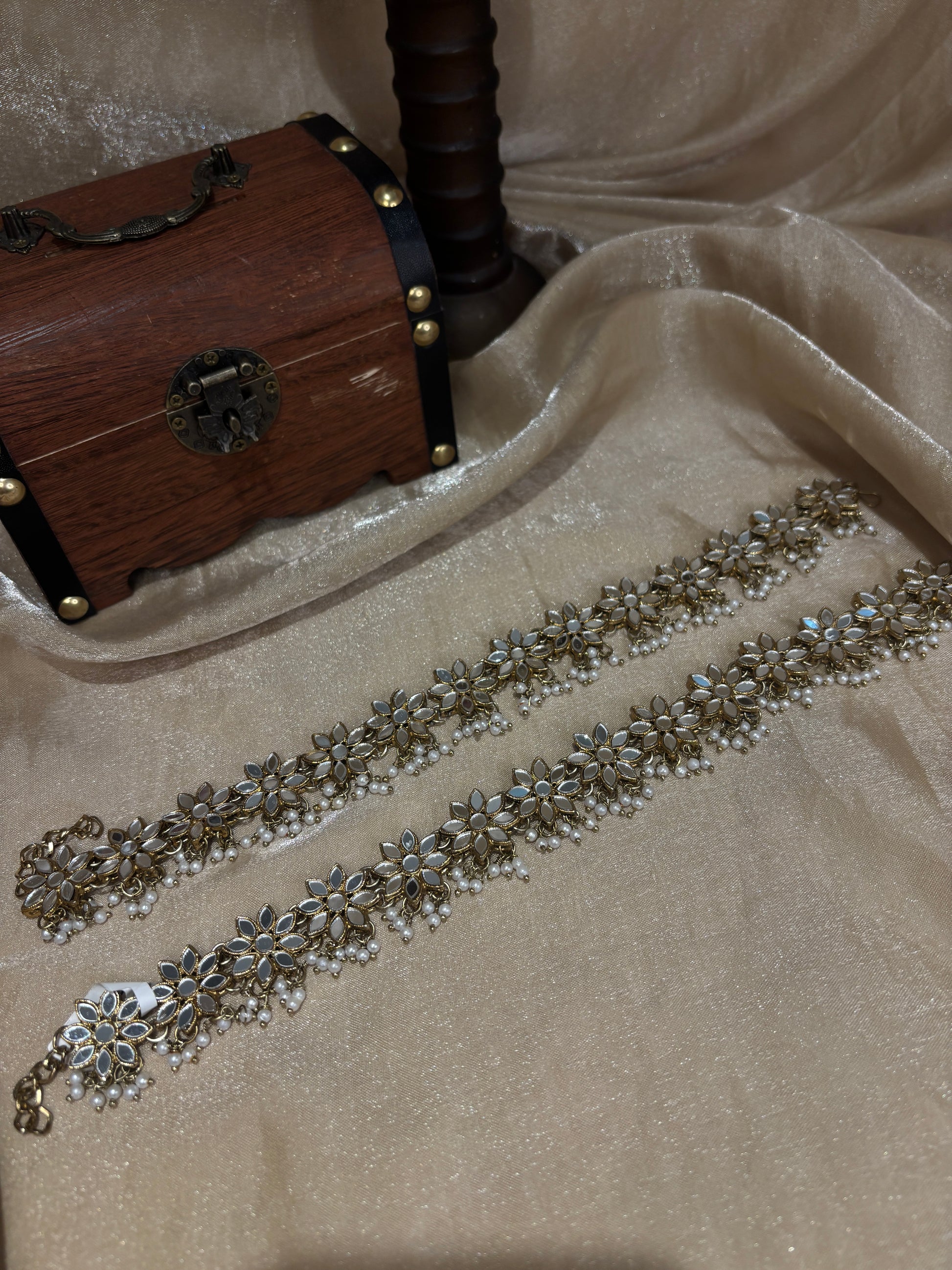 Mirror work flower anklets