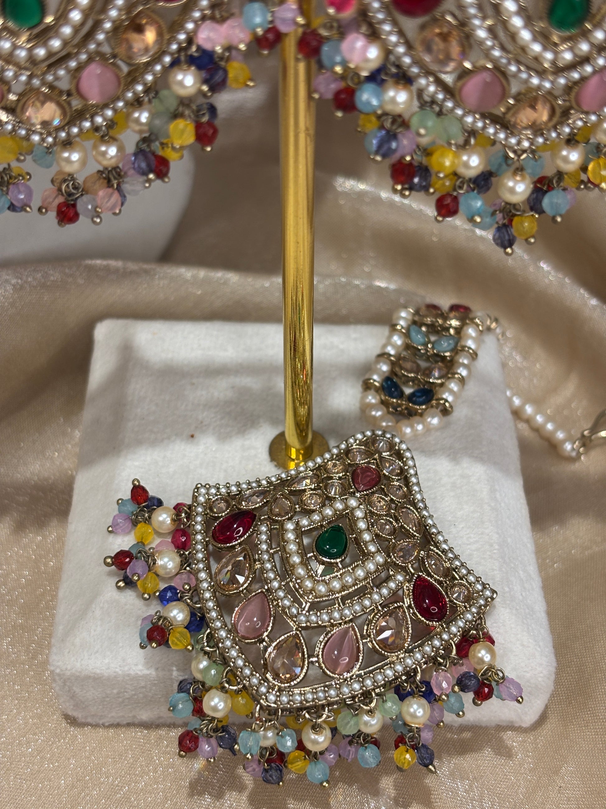 Heavy multi-colour choker set with small pearl details; can also be worn as a necklace!