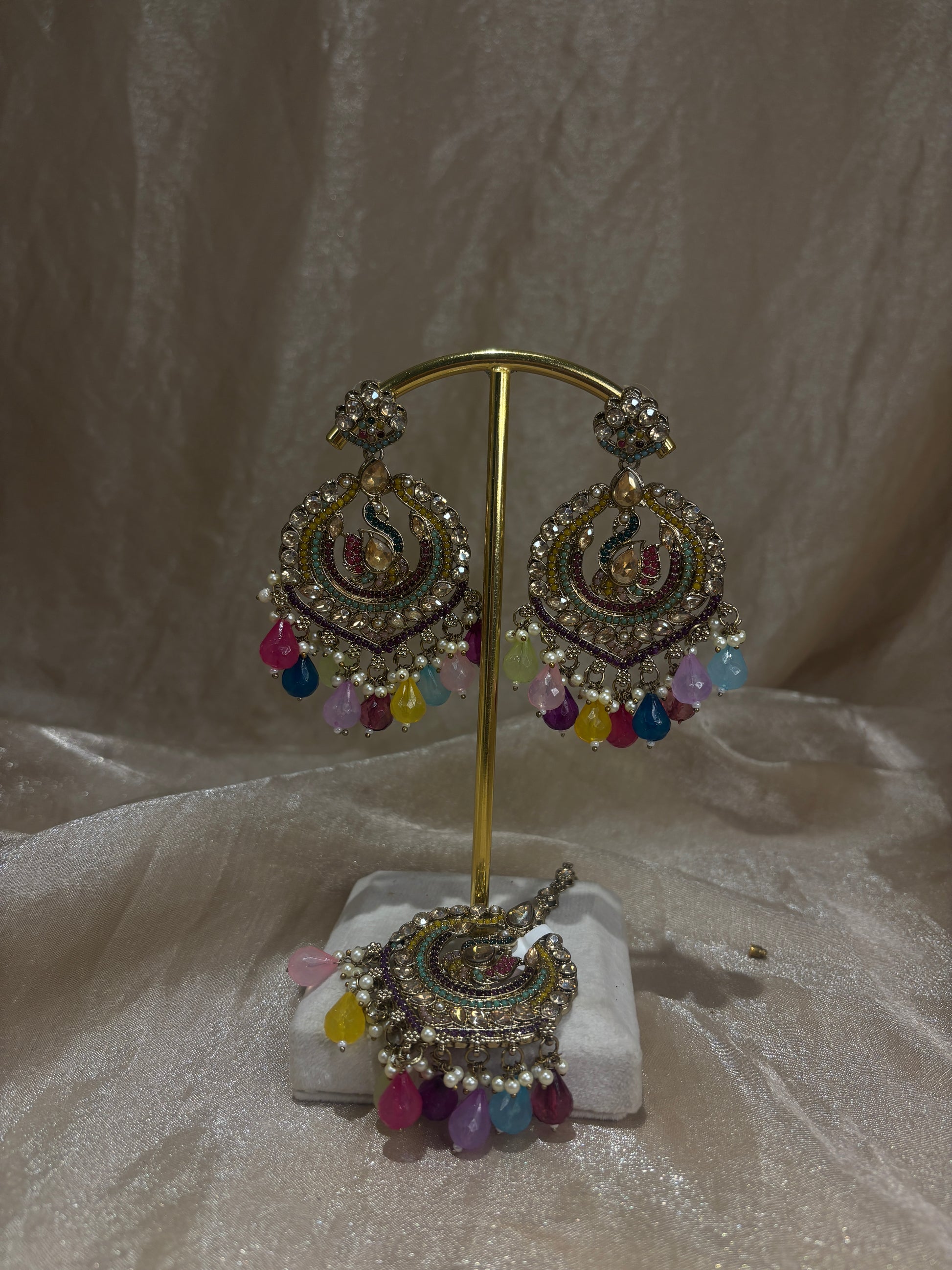 Multi-coloured earring/tikka set