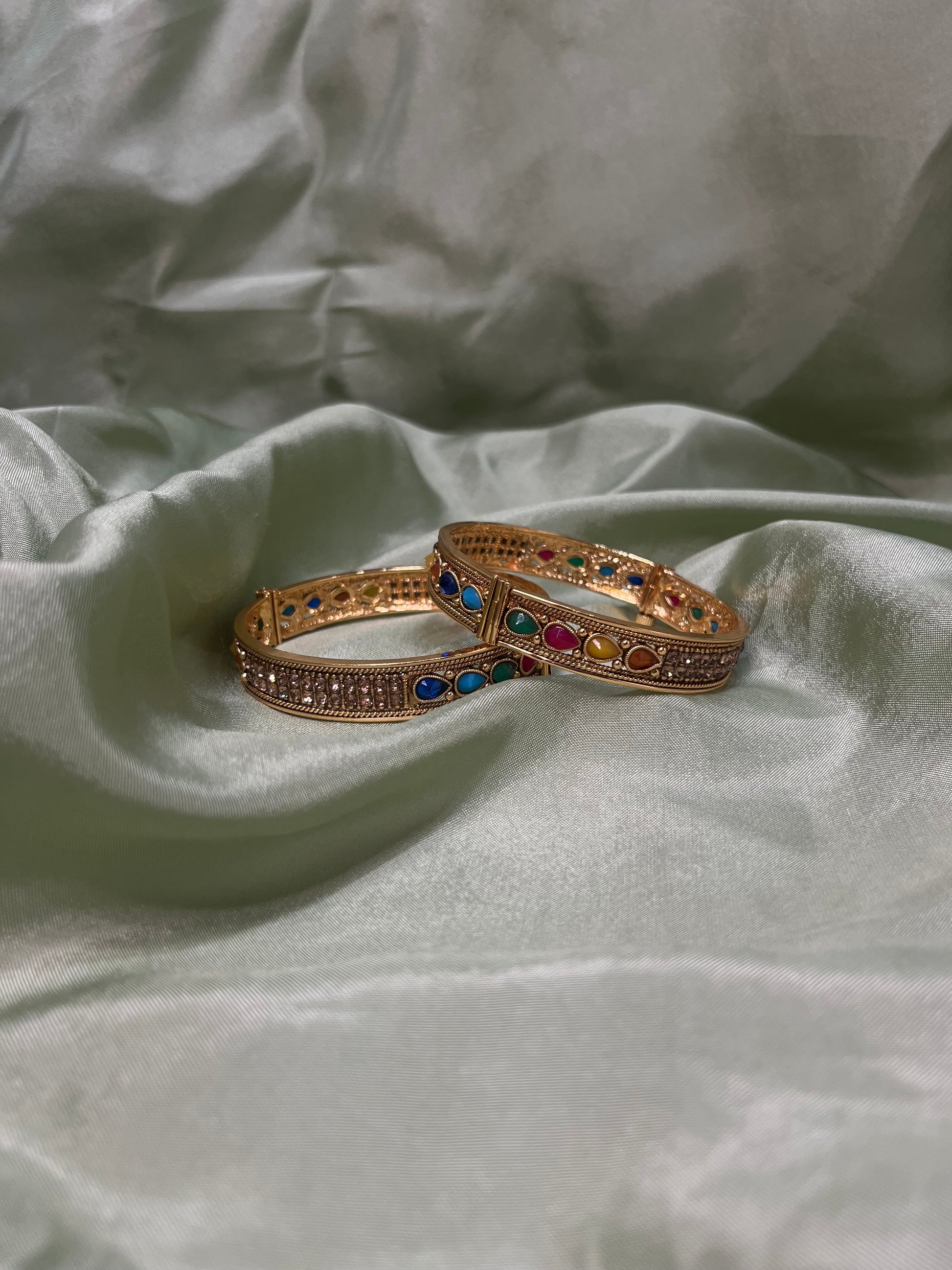 These gold kare have hints of multi-coloured stones around it to match with every outfit!