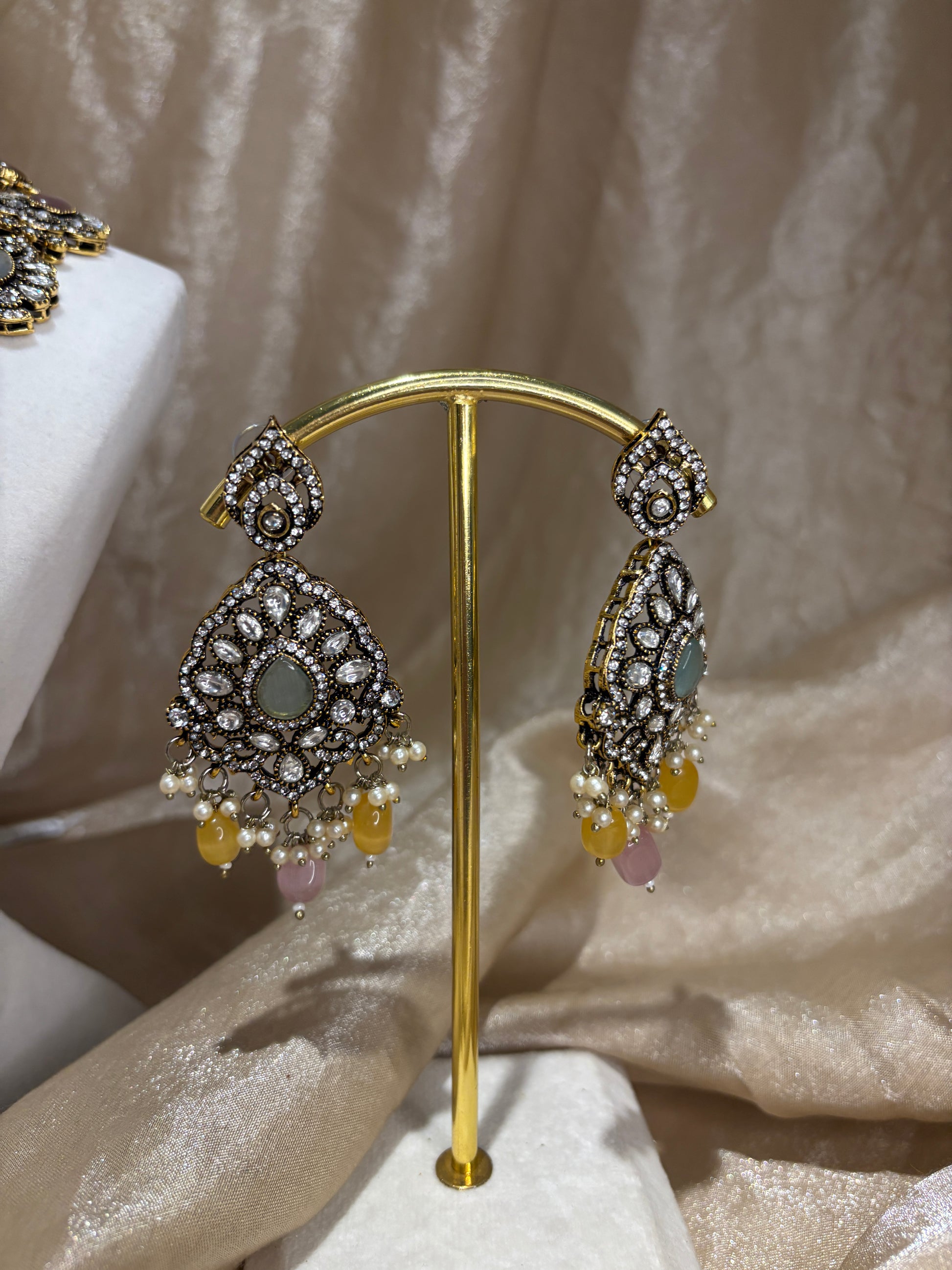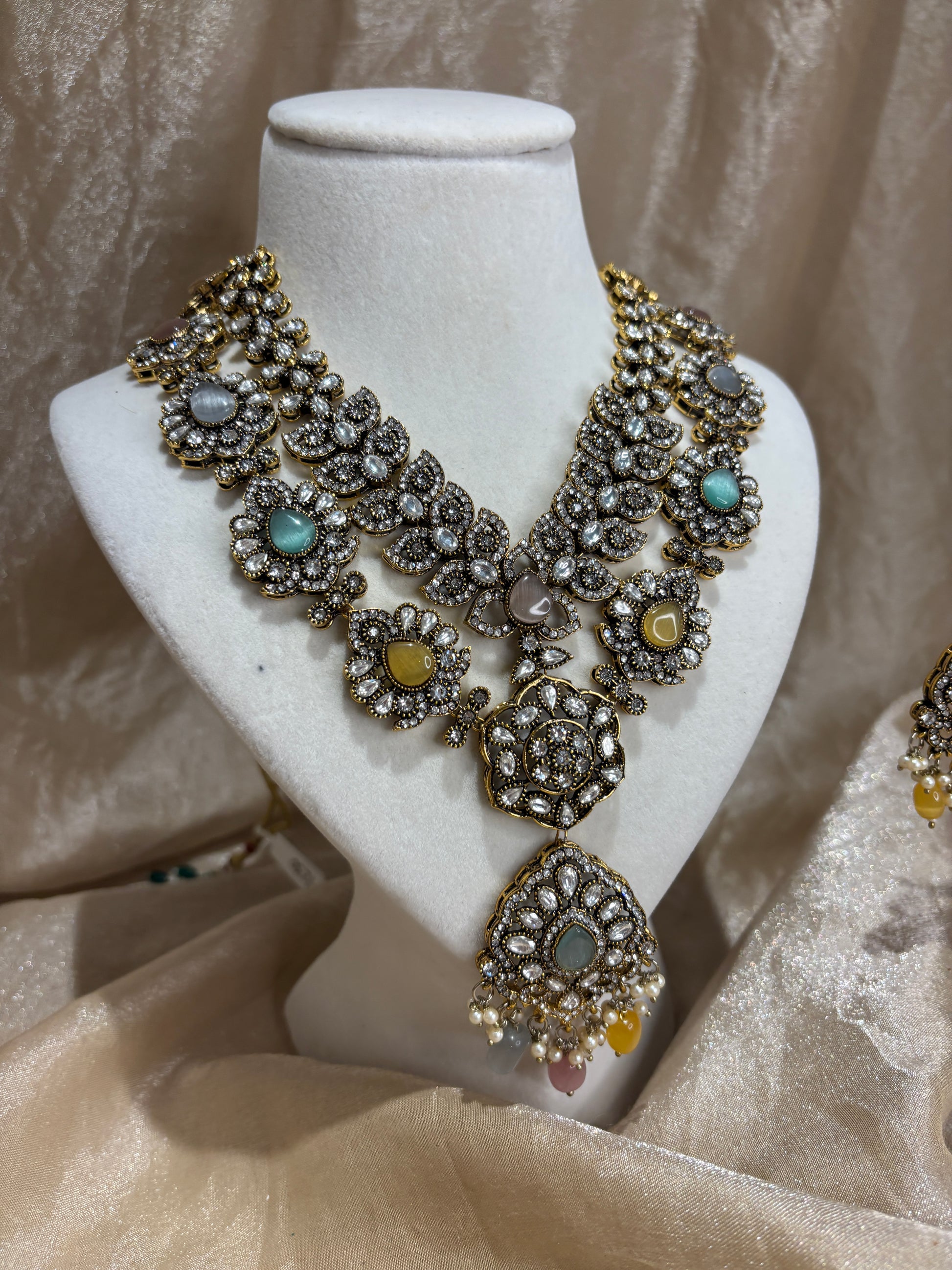 Pastel multi coloured 2 layered moissanite necklace set