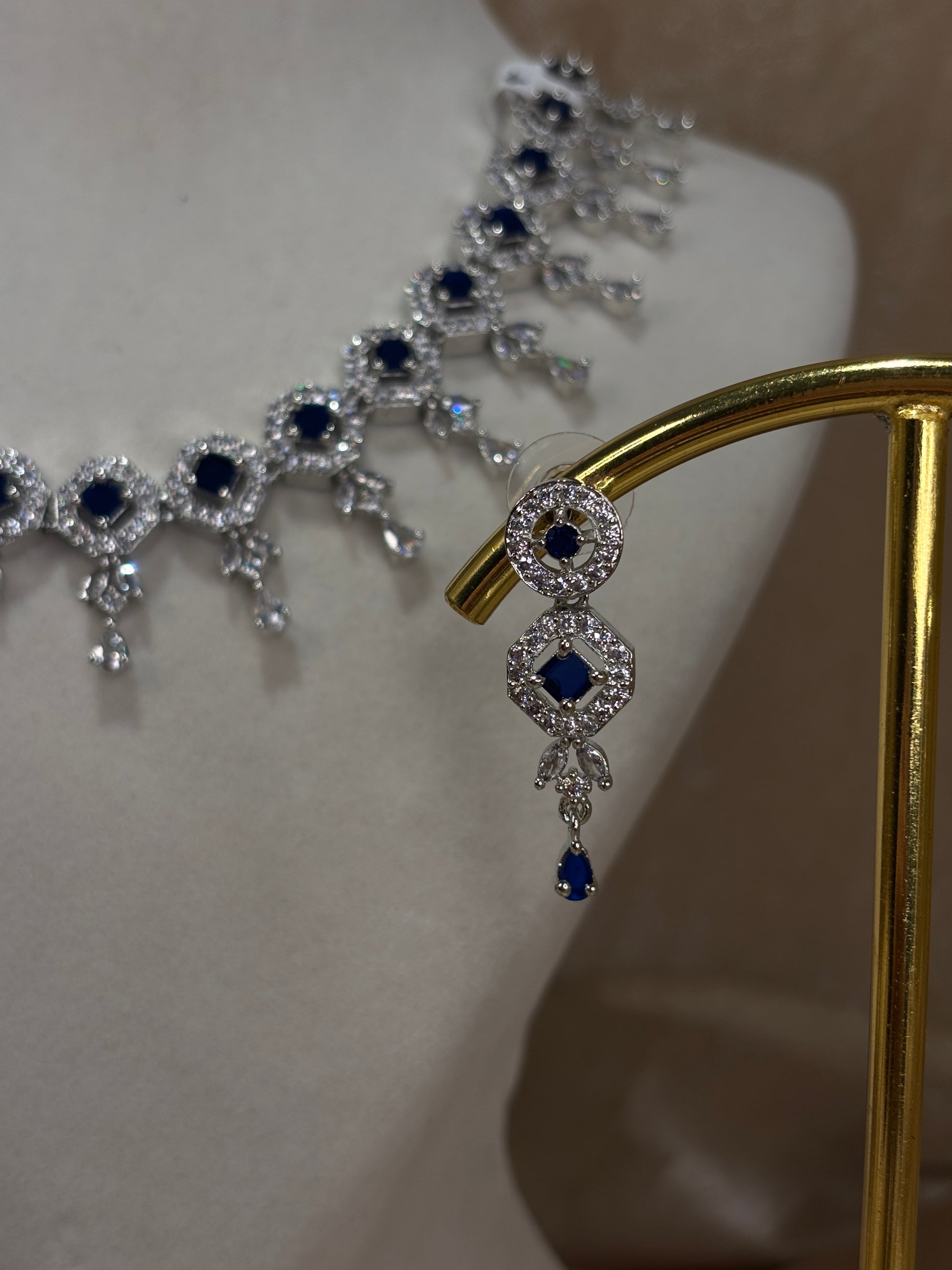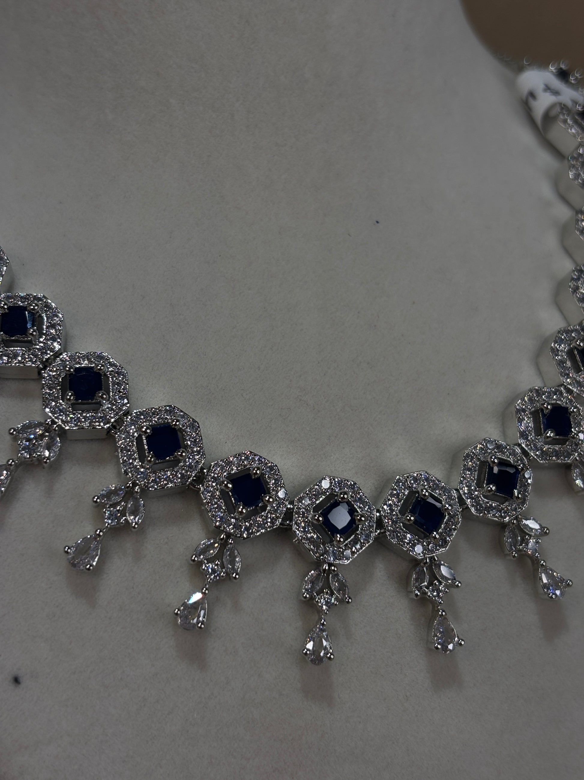 Navy blue American diamond necklace set; comes with earrings